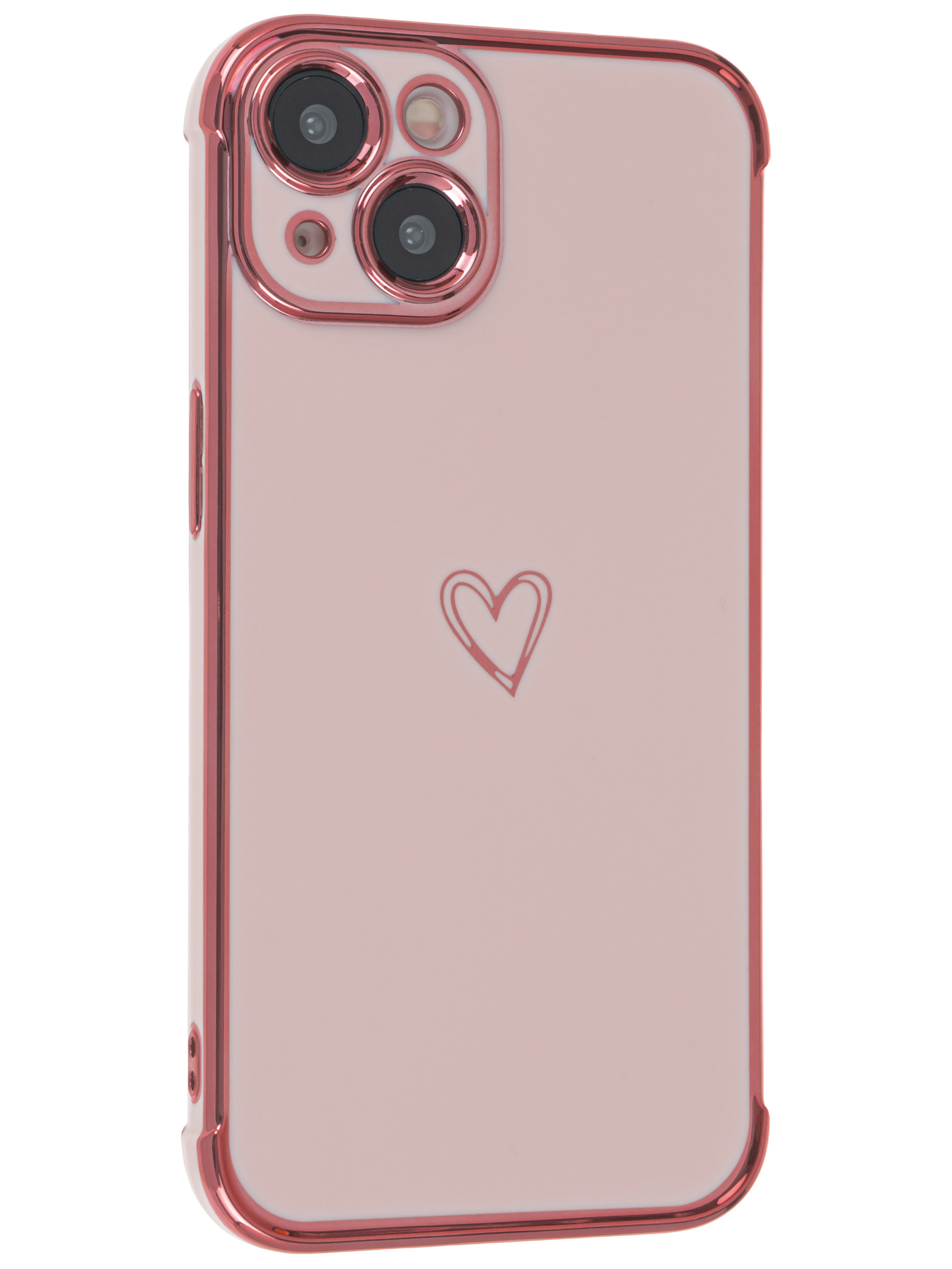 Силиконовый чехол Electroplate hearts для iPhone 14 песочно-розовый