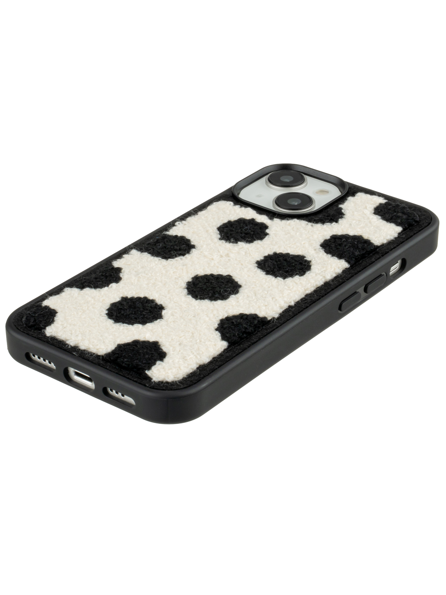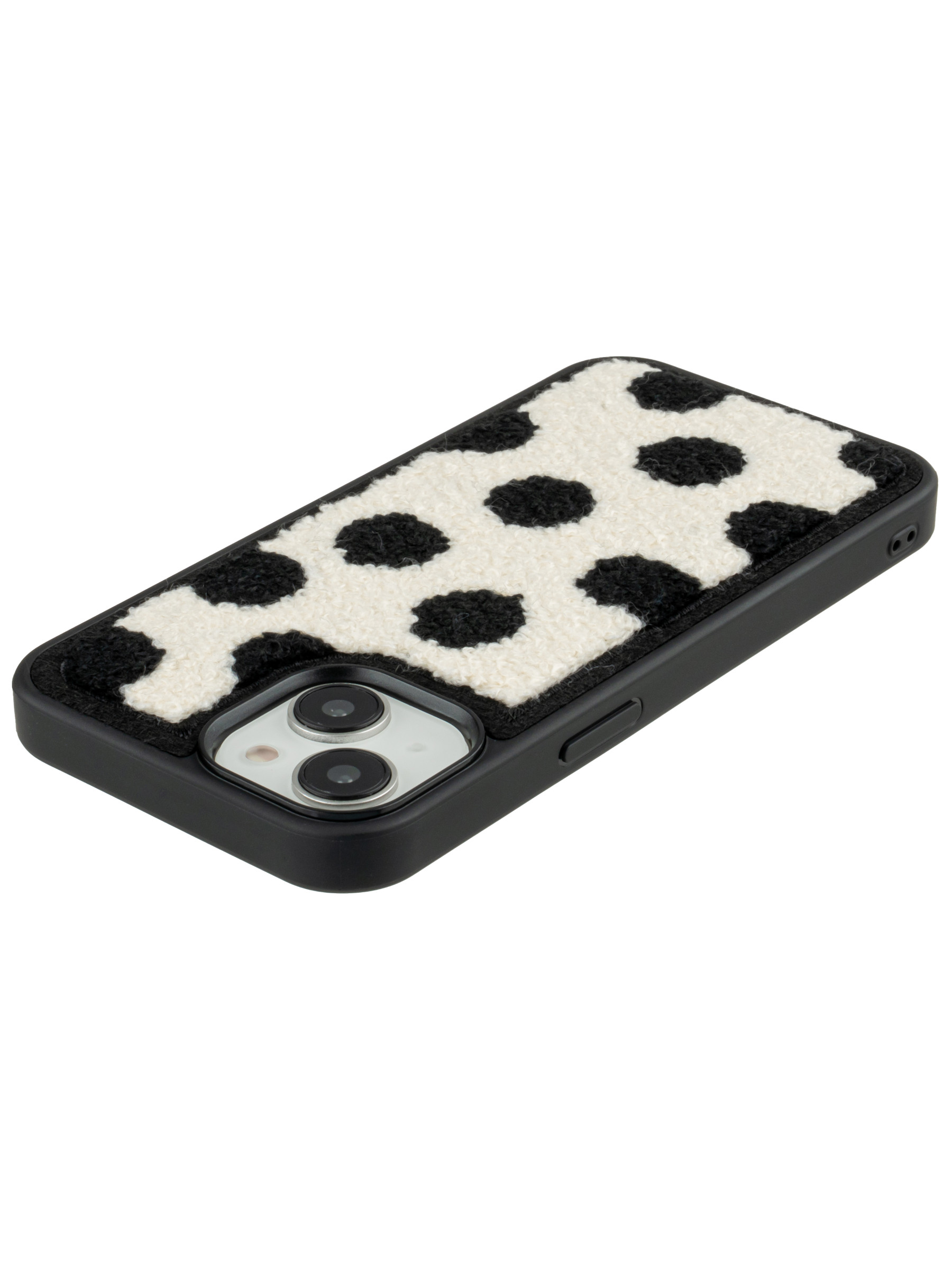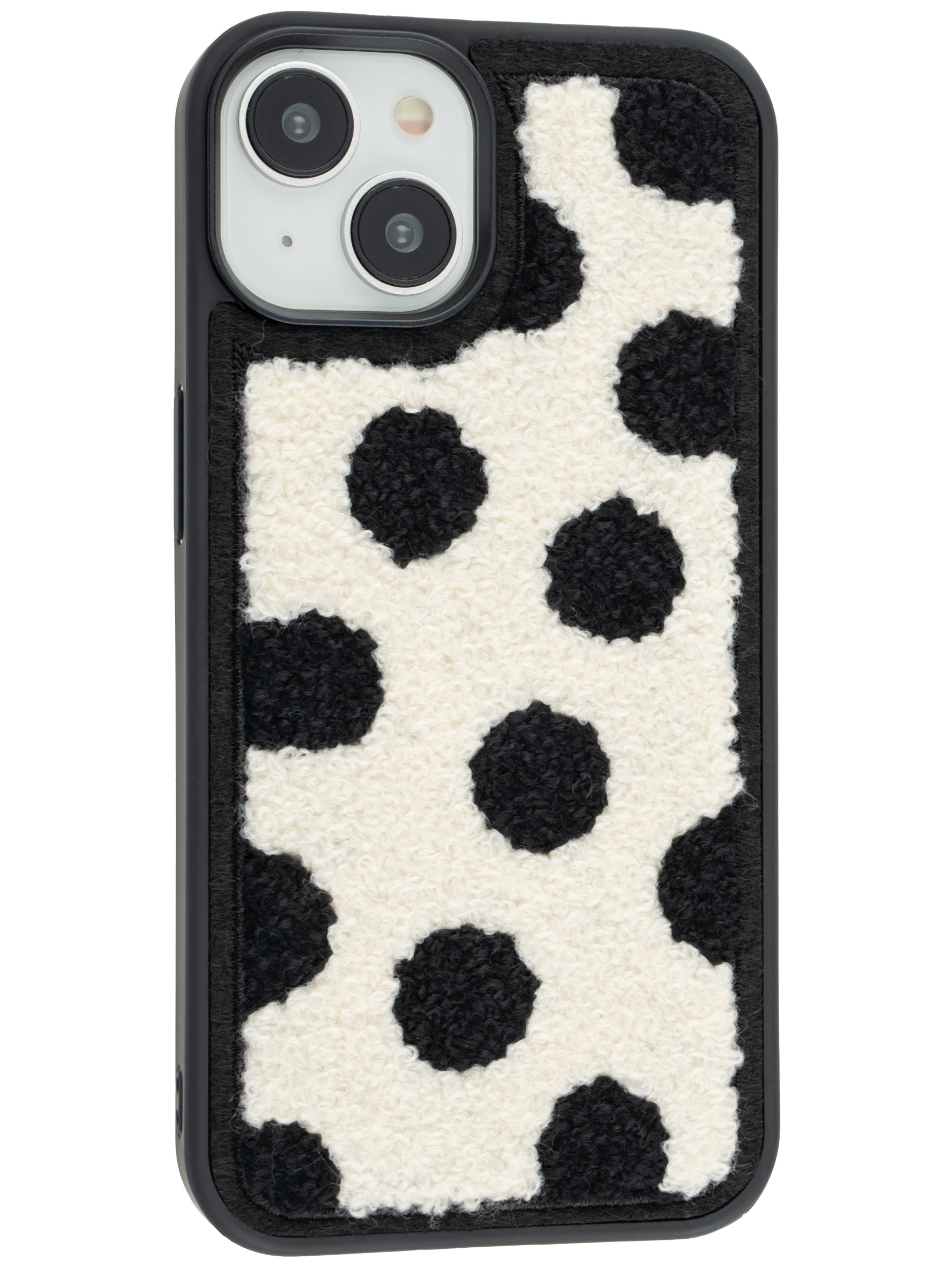 Силиконовый чехол Embroider для iPhone 14 черный горошек на белом