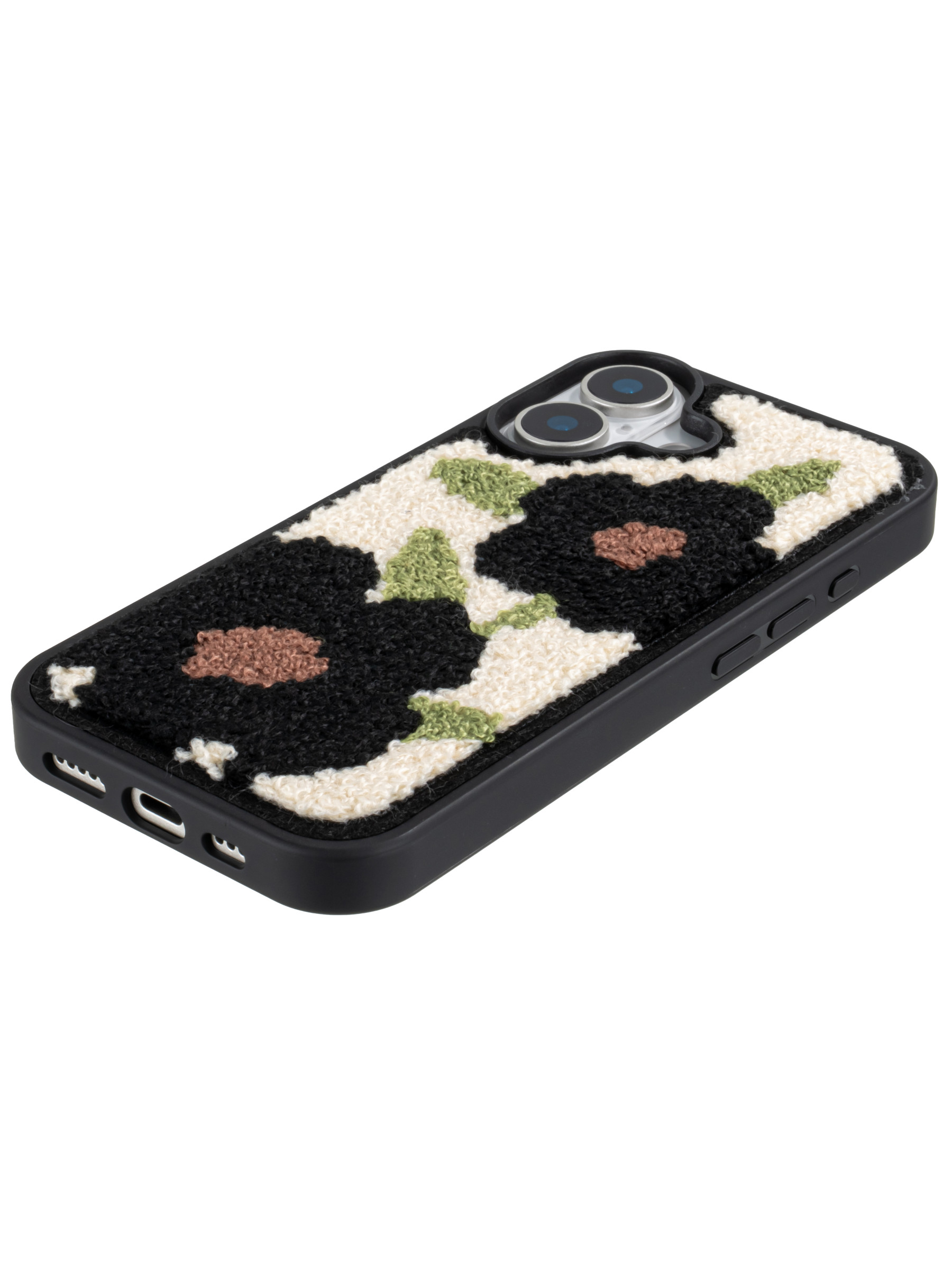 Силиконовый чехол Embroider для iPhone 17 черные цветы с листьями