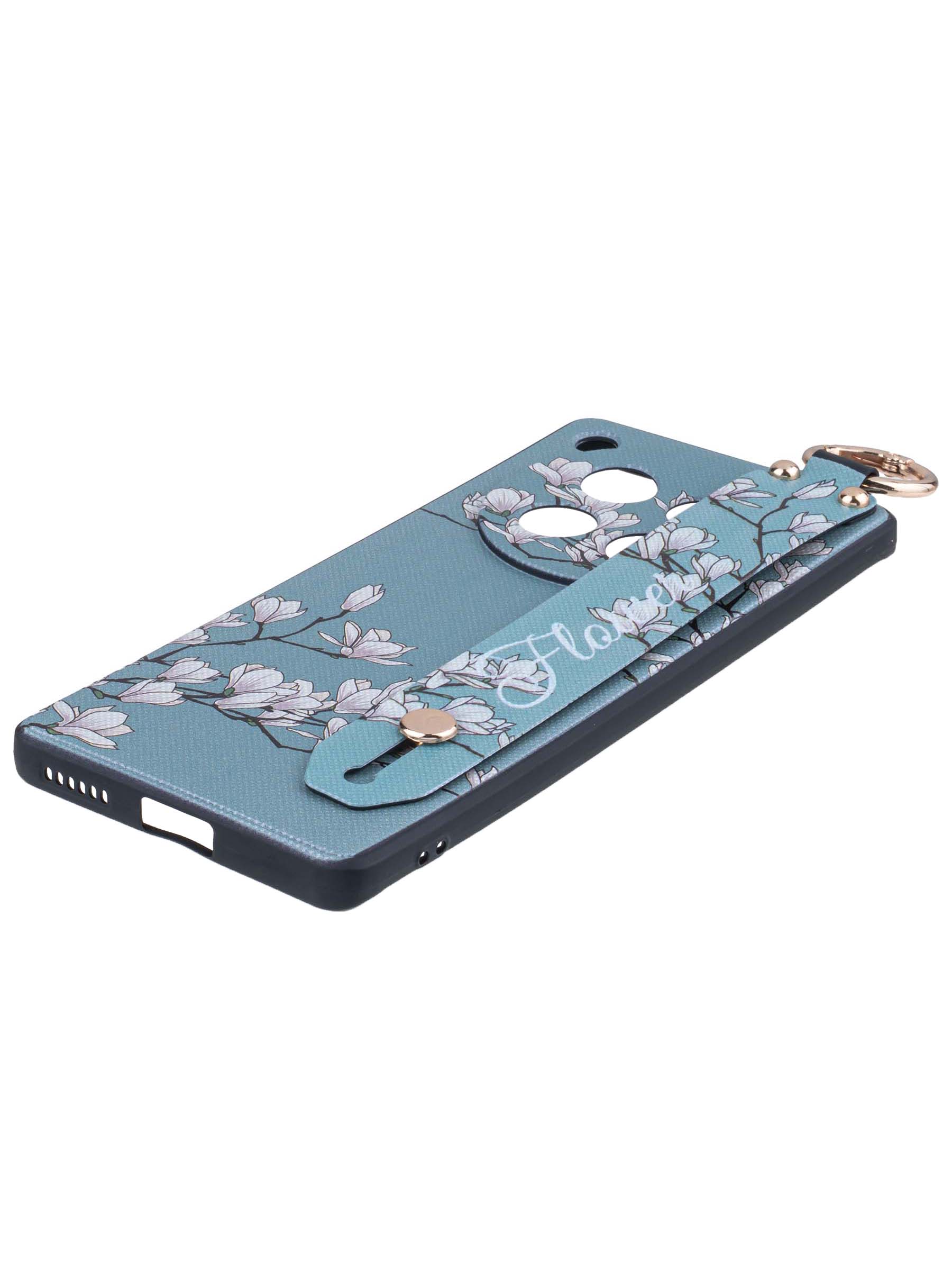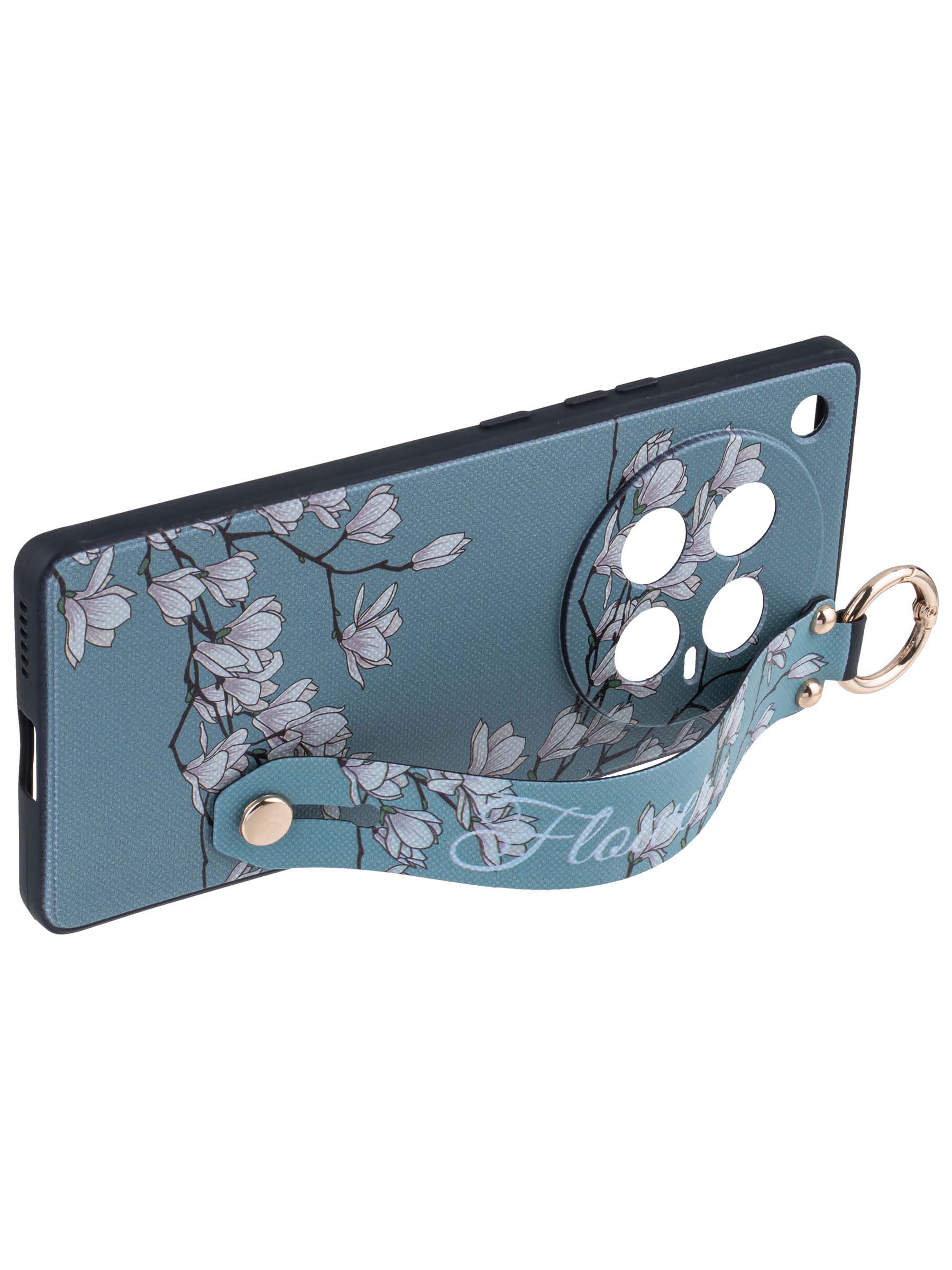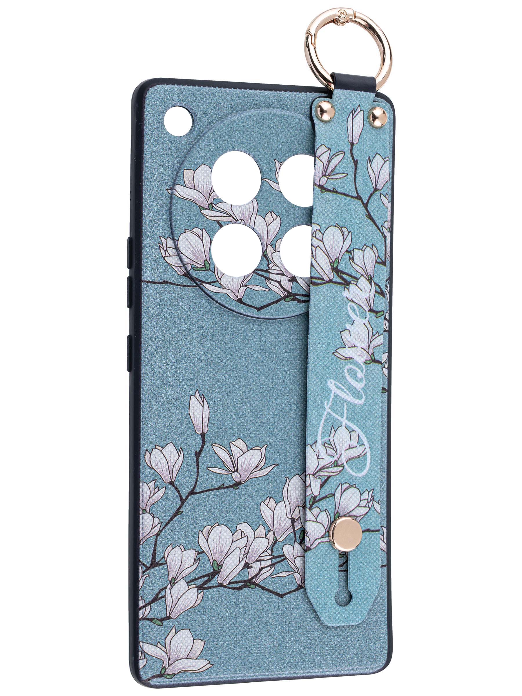 Силиконовый чехол Flower для Infinix Zero 40 5G Цветение магнолии (с ручкой) голубой
