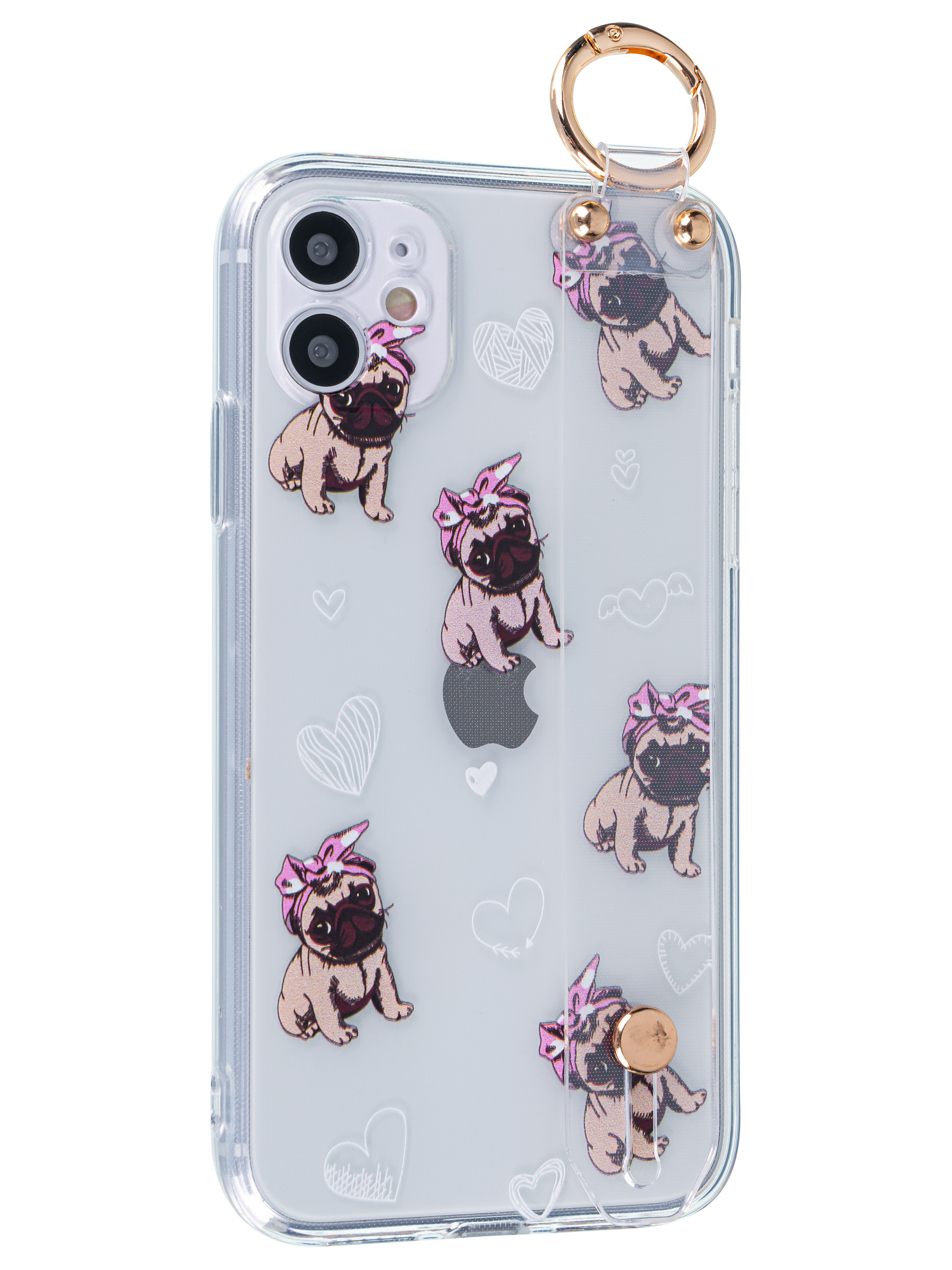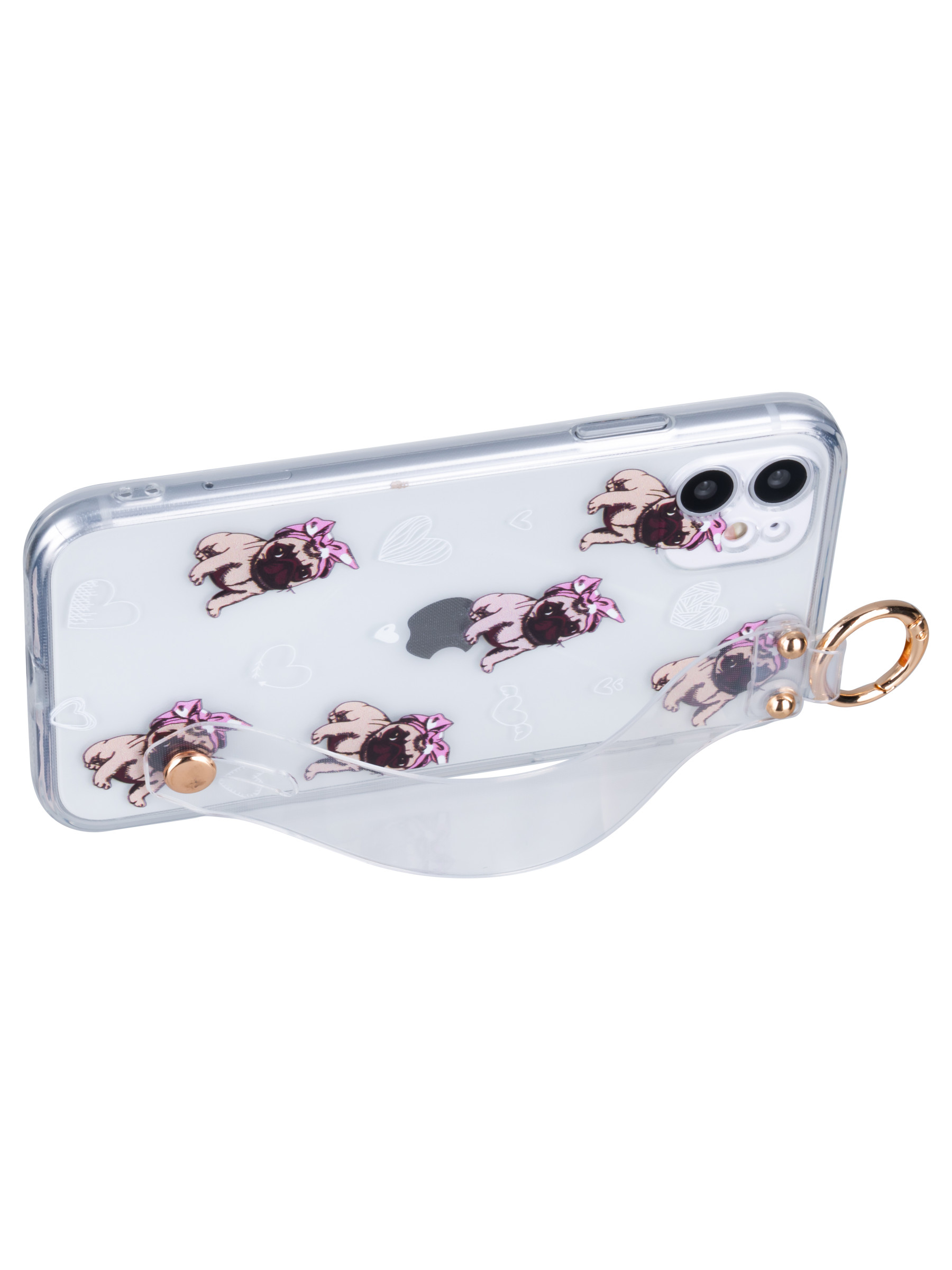 Силиконовый чехол Flower для iPhone 11 Мопсики (с ручкой) прозрачный