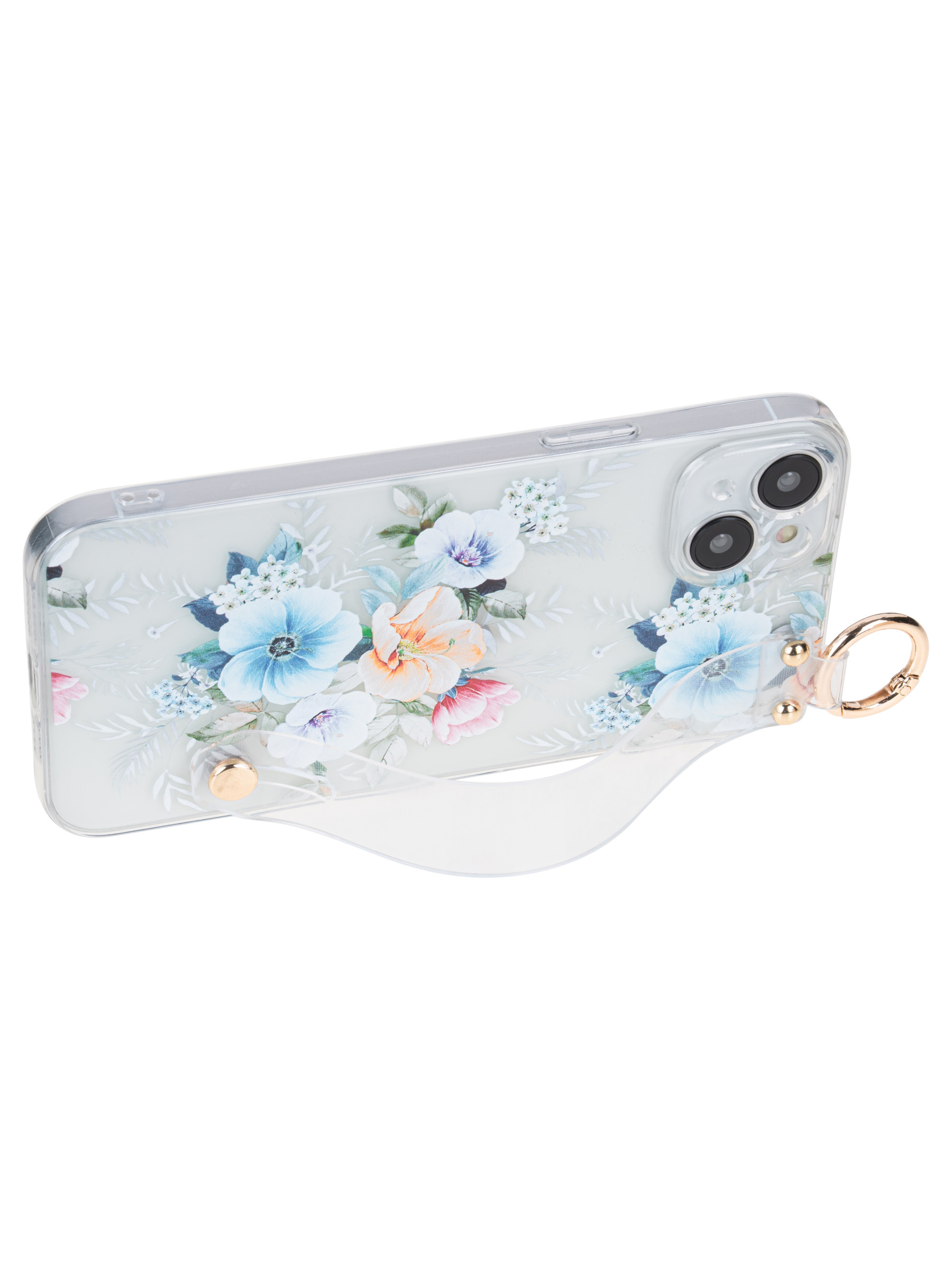 Силиконовый чехол Flower для iPhone 14 Plus / 15 Plus Петуния (с ручкой) прозрачный