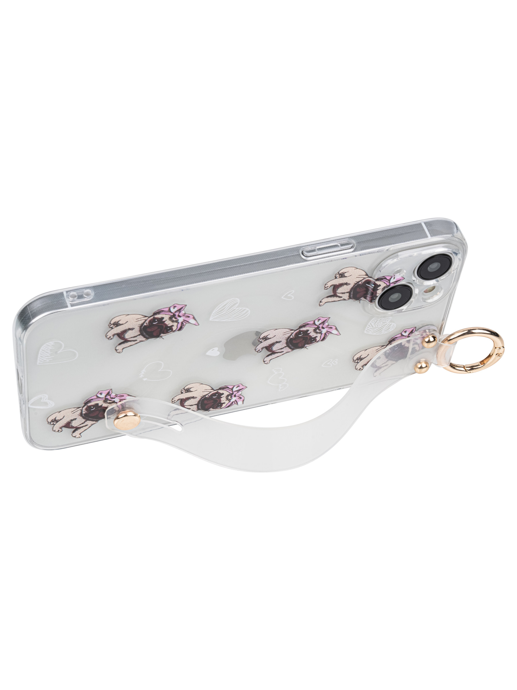 Силиконовый чехол Flower для iPhone 14 Plus Мопсики (с ручкой) прозрачный