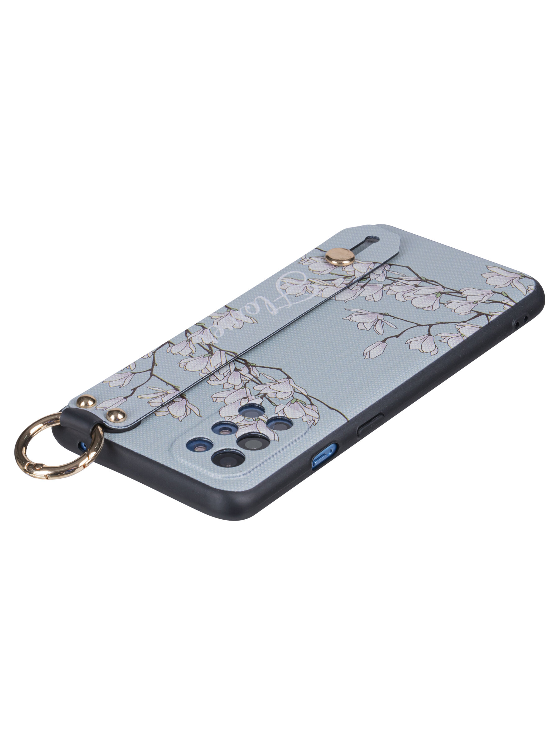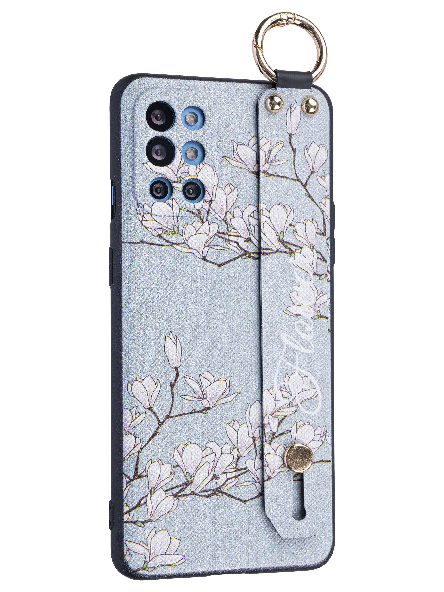 Силиконовый чехол Flower для OnePlus 9R / OnePlus 8T Цветение магнолии (с ручкой) голубой