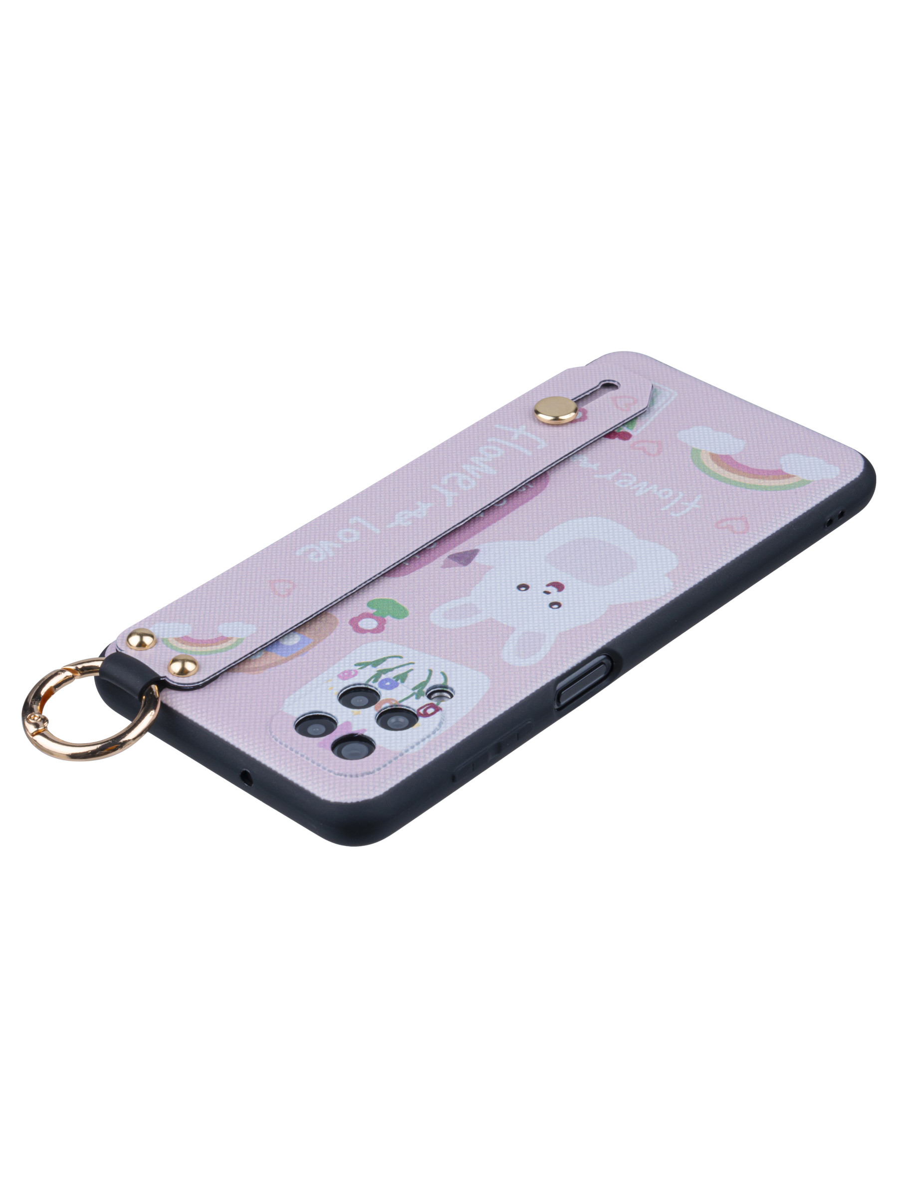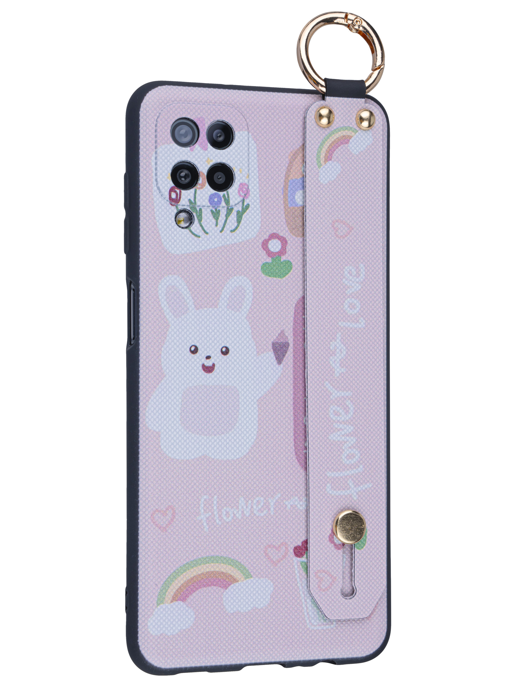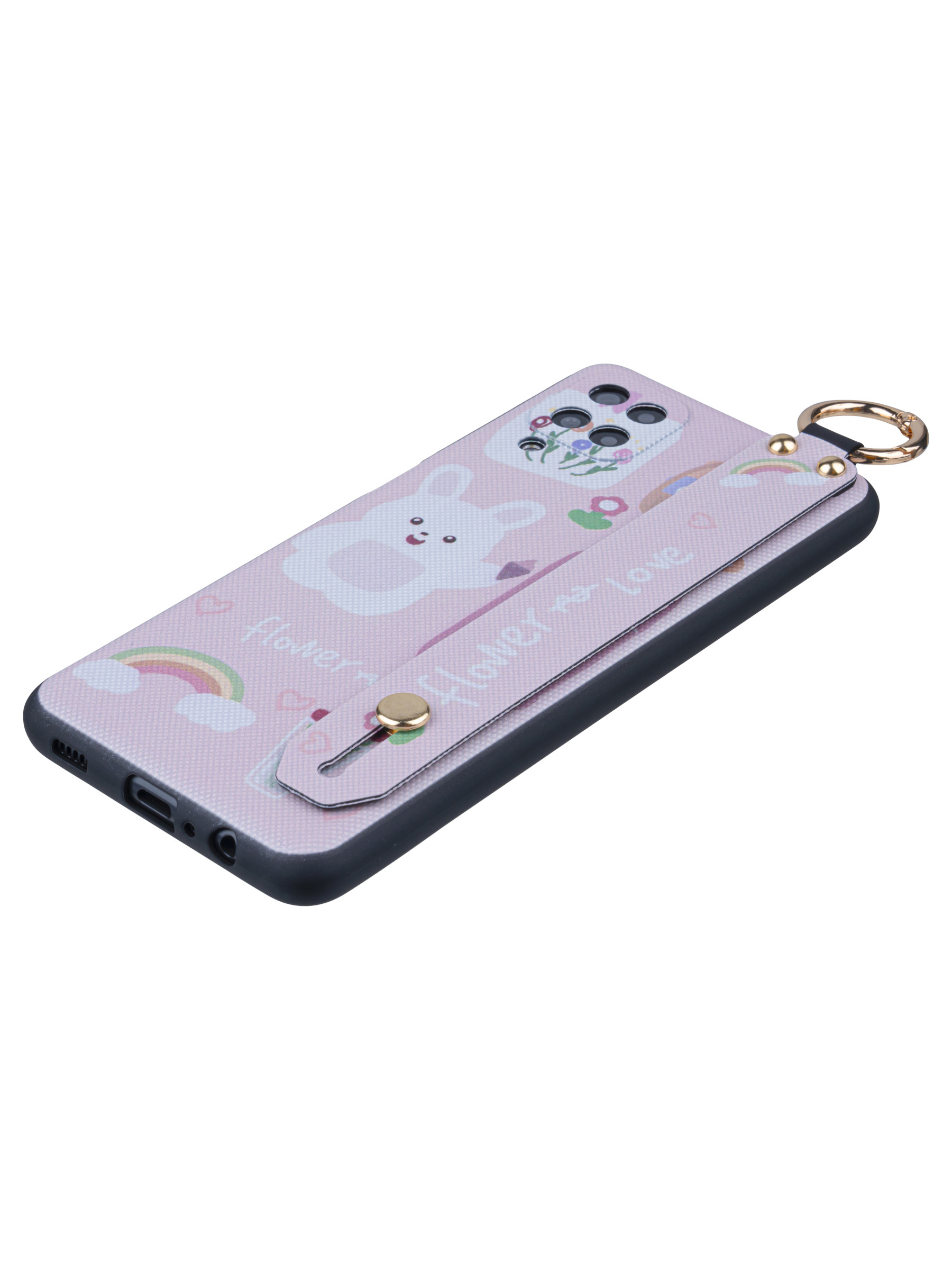 Силиконовый чехол Flower для Samsung Galaxy A12 Зайка (с ручкой) розовый