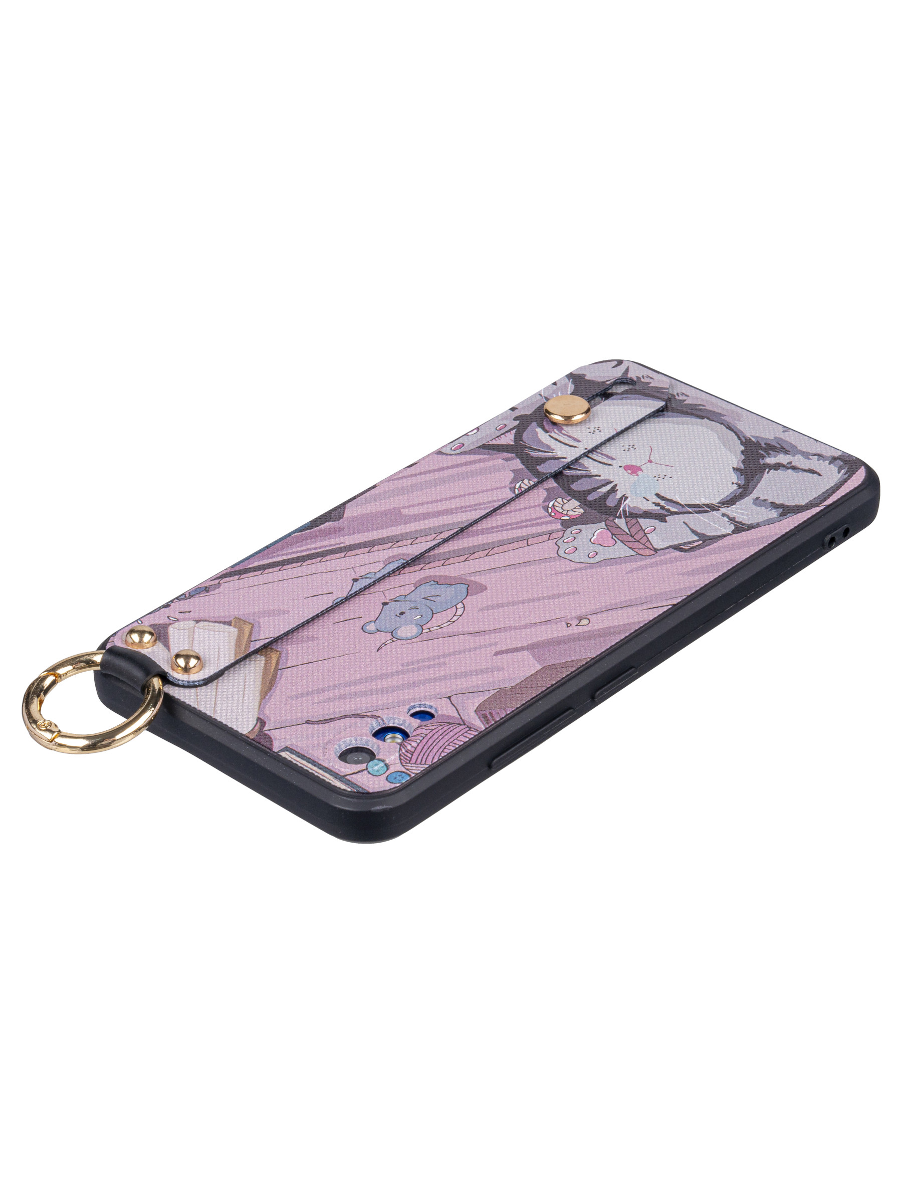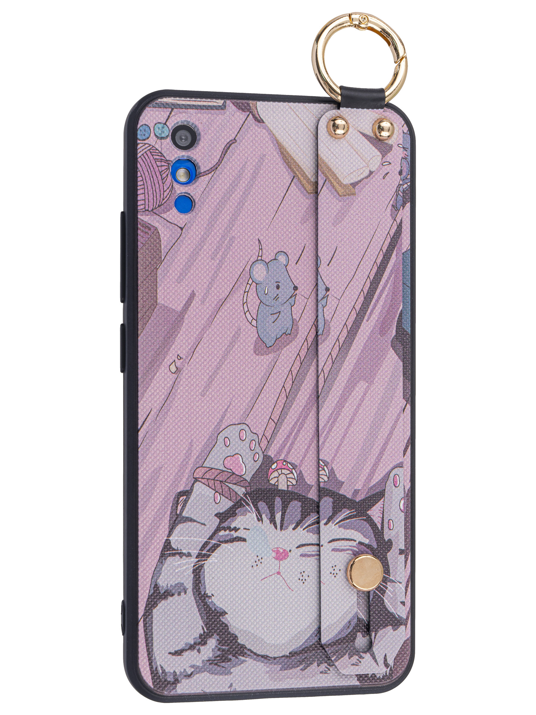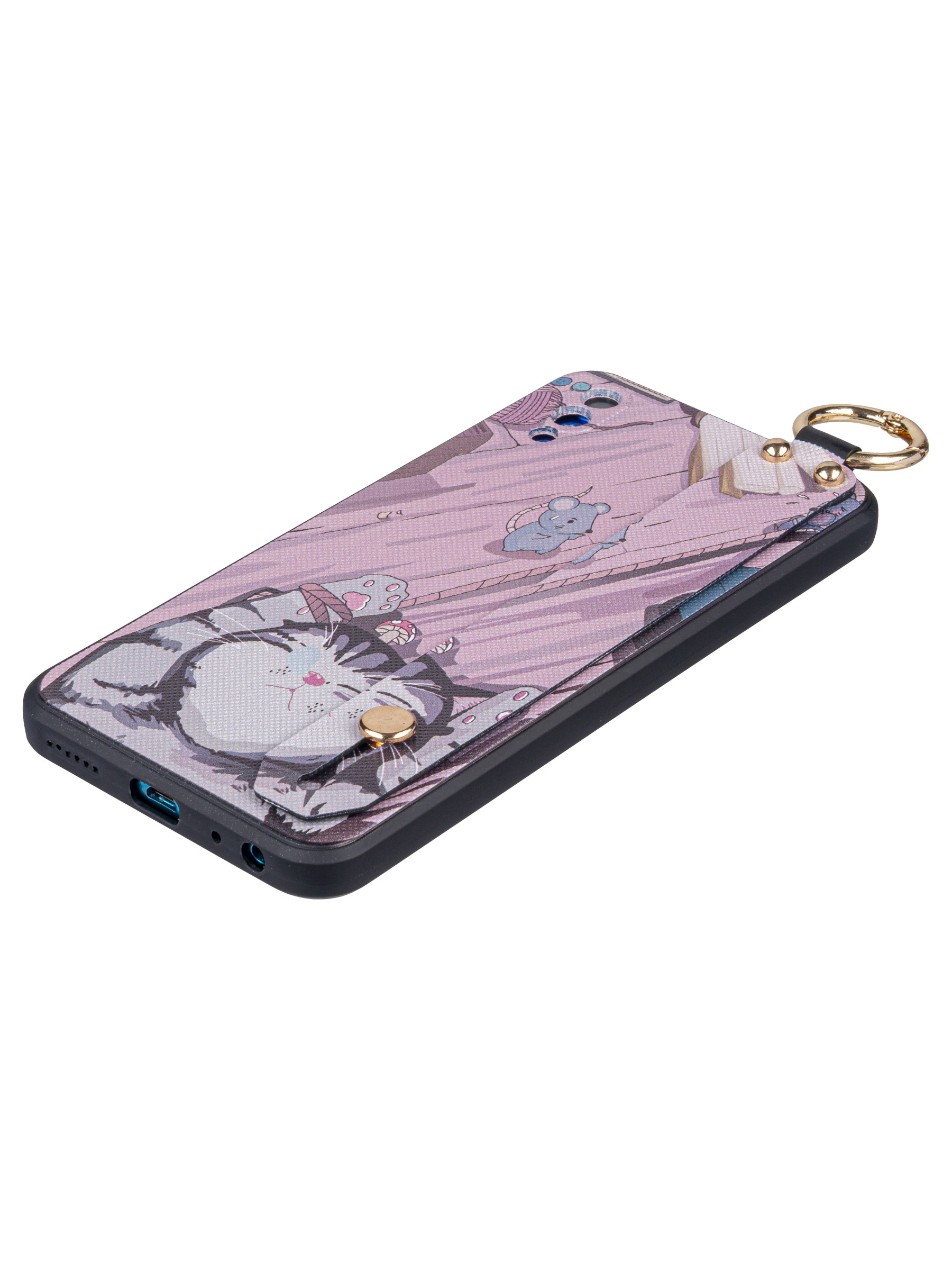 Силиконовый чехол Flower для Vivo Y91c Котик (с ручкой) бежево-розовый