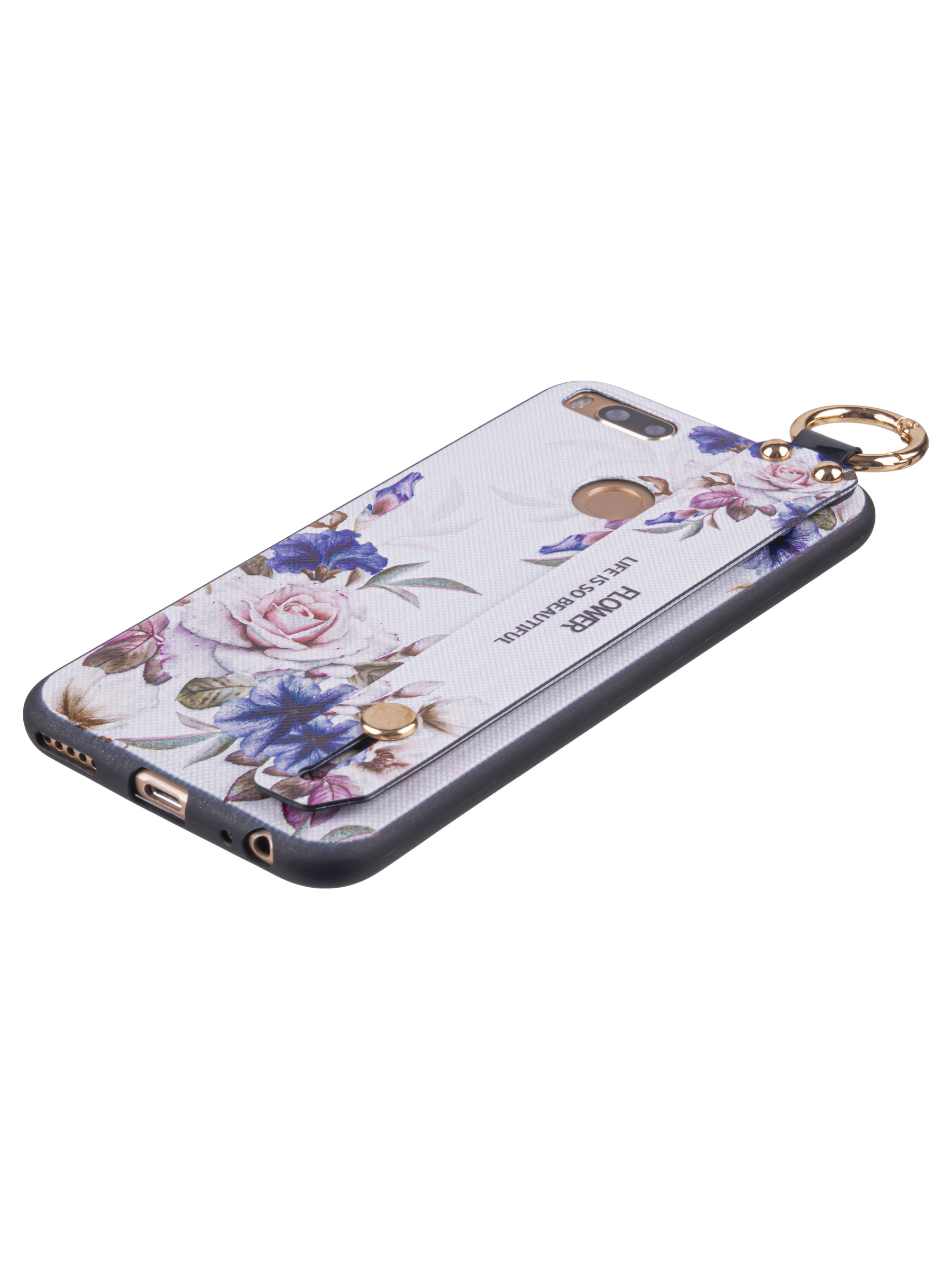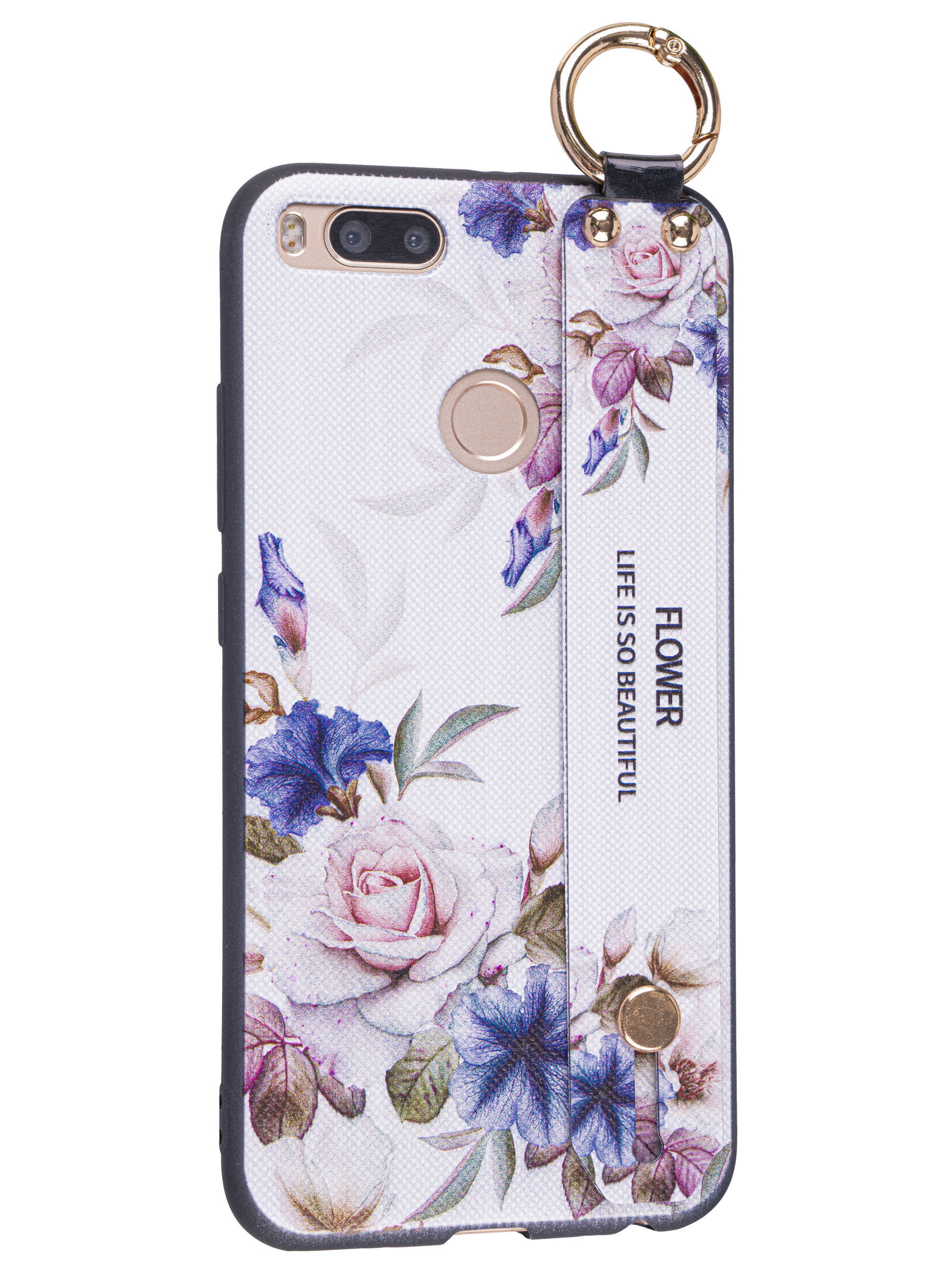 Силиконовый чехол Flower для Xiaomi Mi A1 Цветущая роза (с ручкой) белый