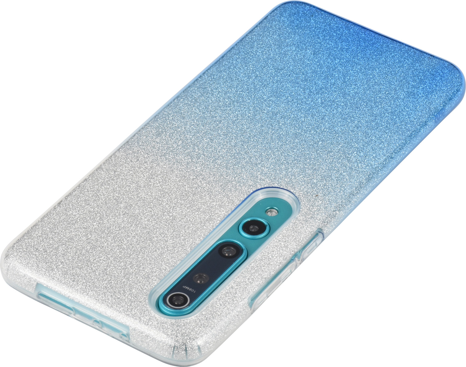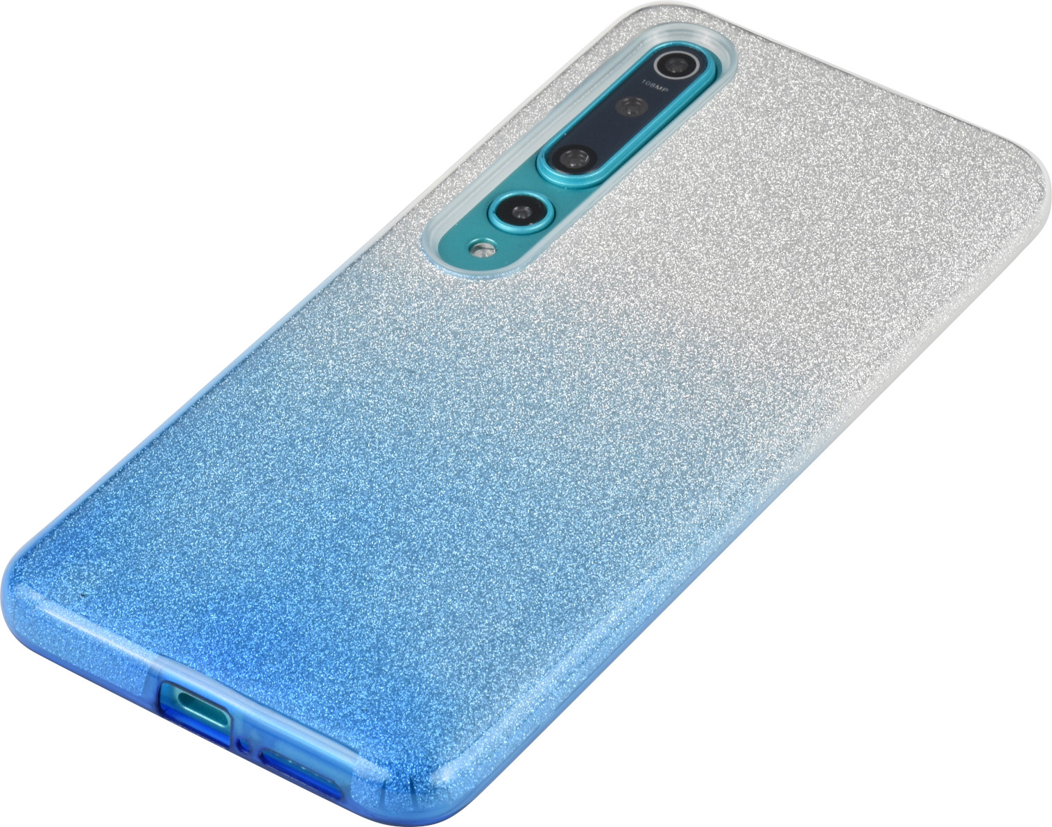 Силиконовый чехол Glitter Colors для Xiaomi Mi 10 градиент серебро-голубой