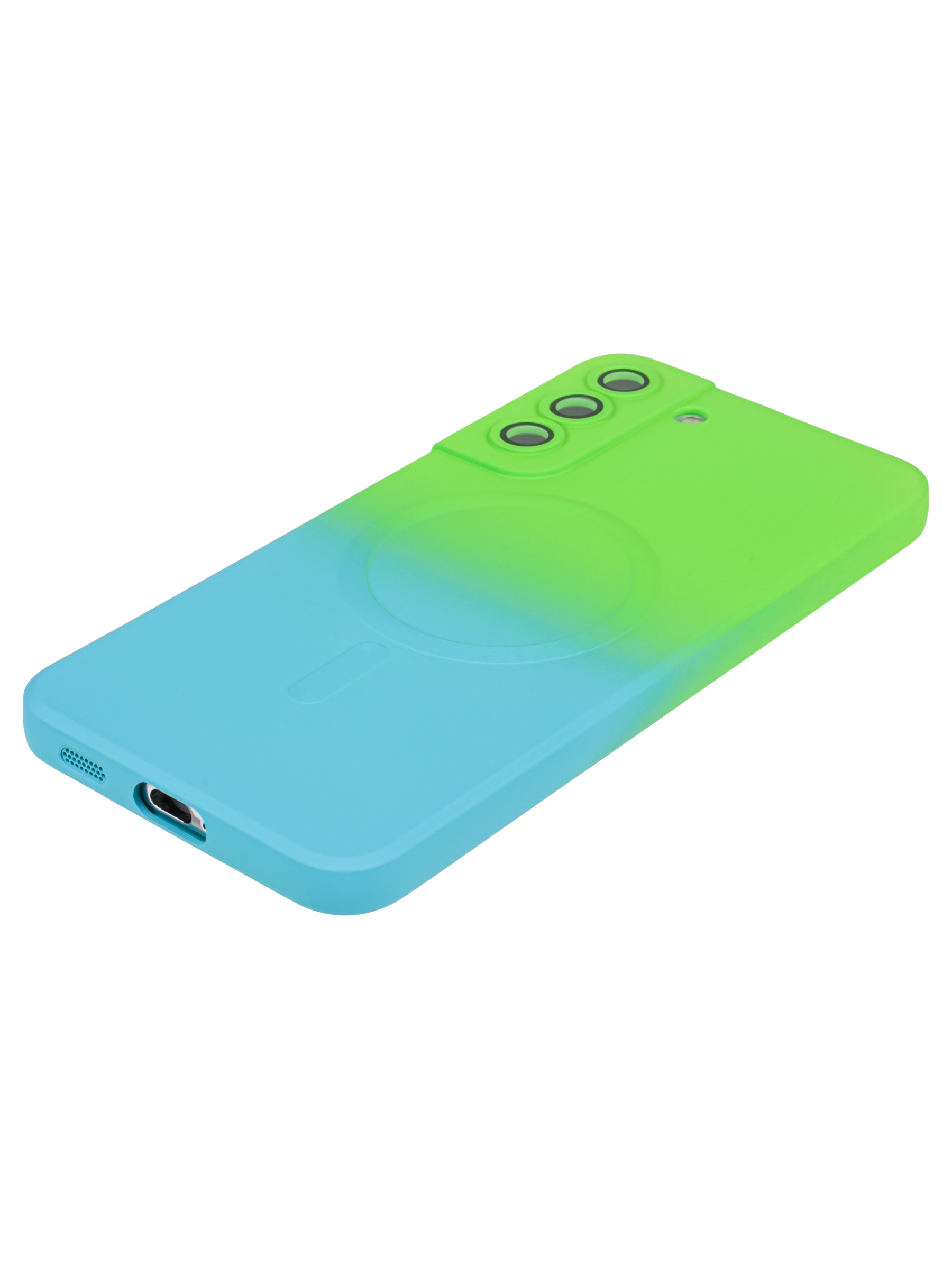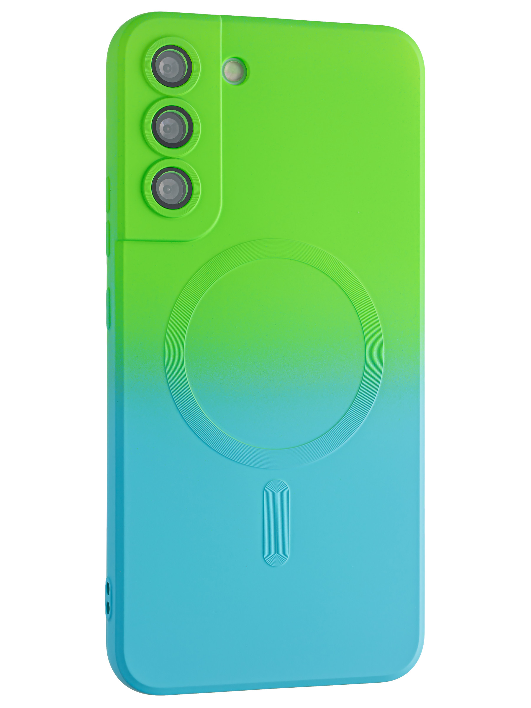 Силиконовый чехол Gradient для Samsung Galaxy S22 Plus зелено-голубой (для Magsafe)