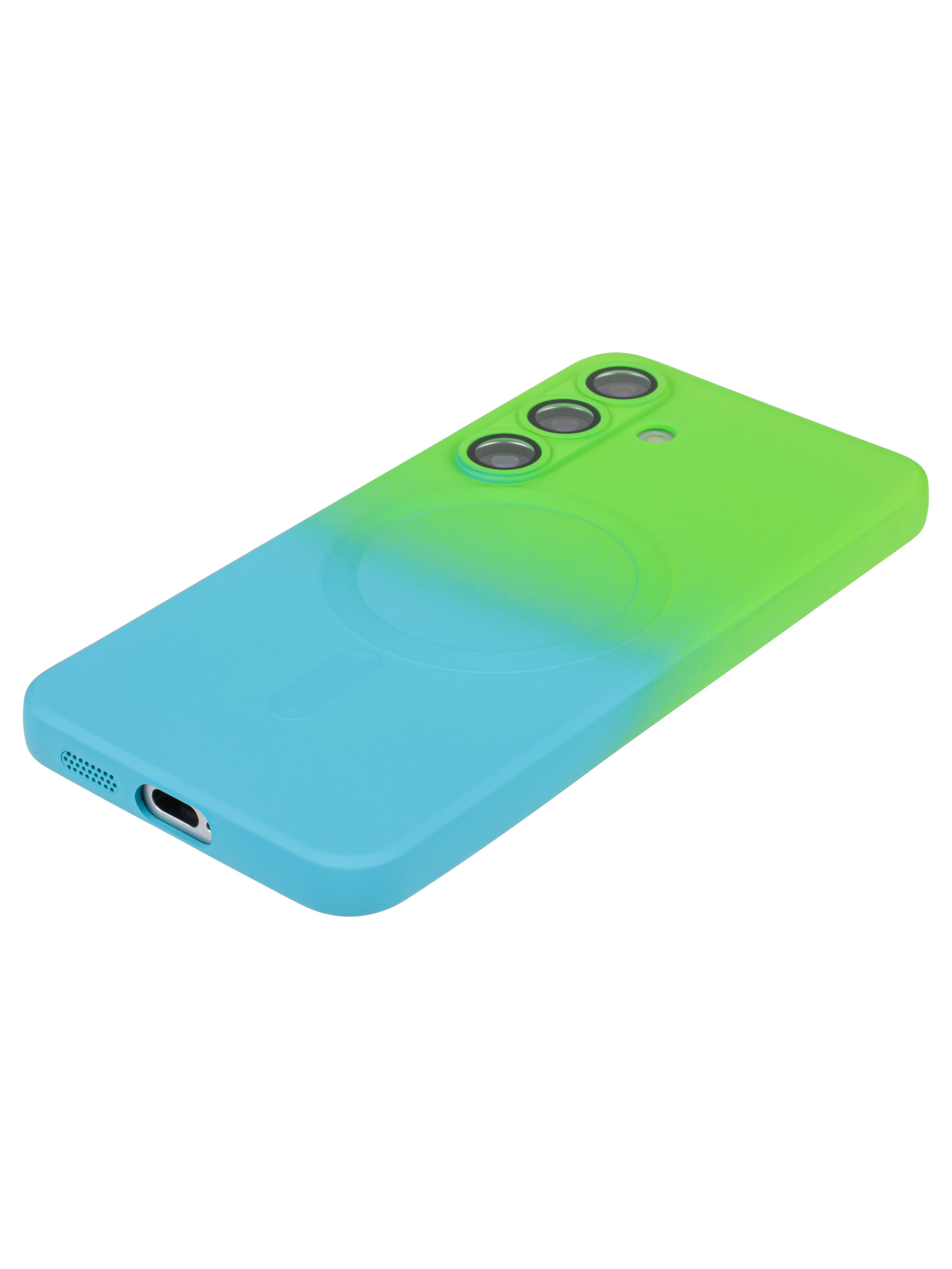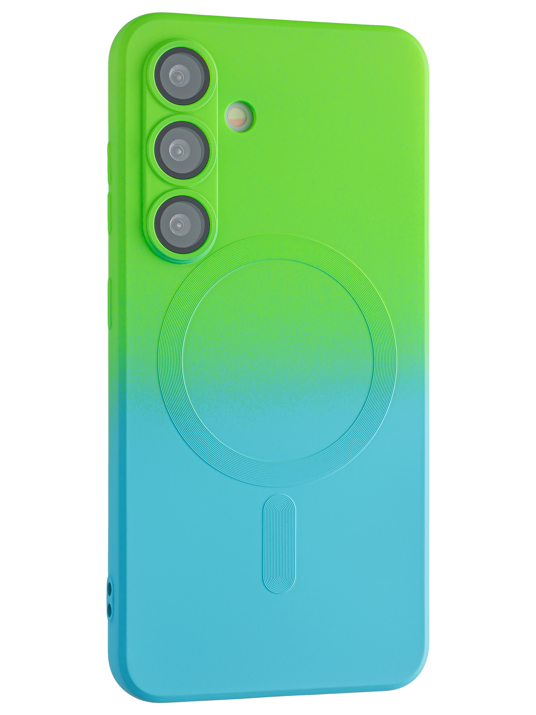 Силиконовый чехол Gradient для Samsung Galaxy S24 зелено-голубой (для Magsafe)