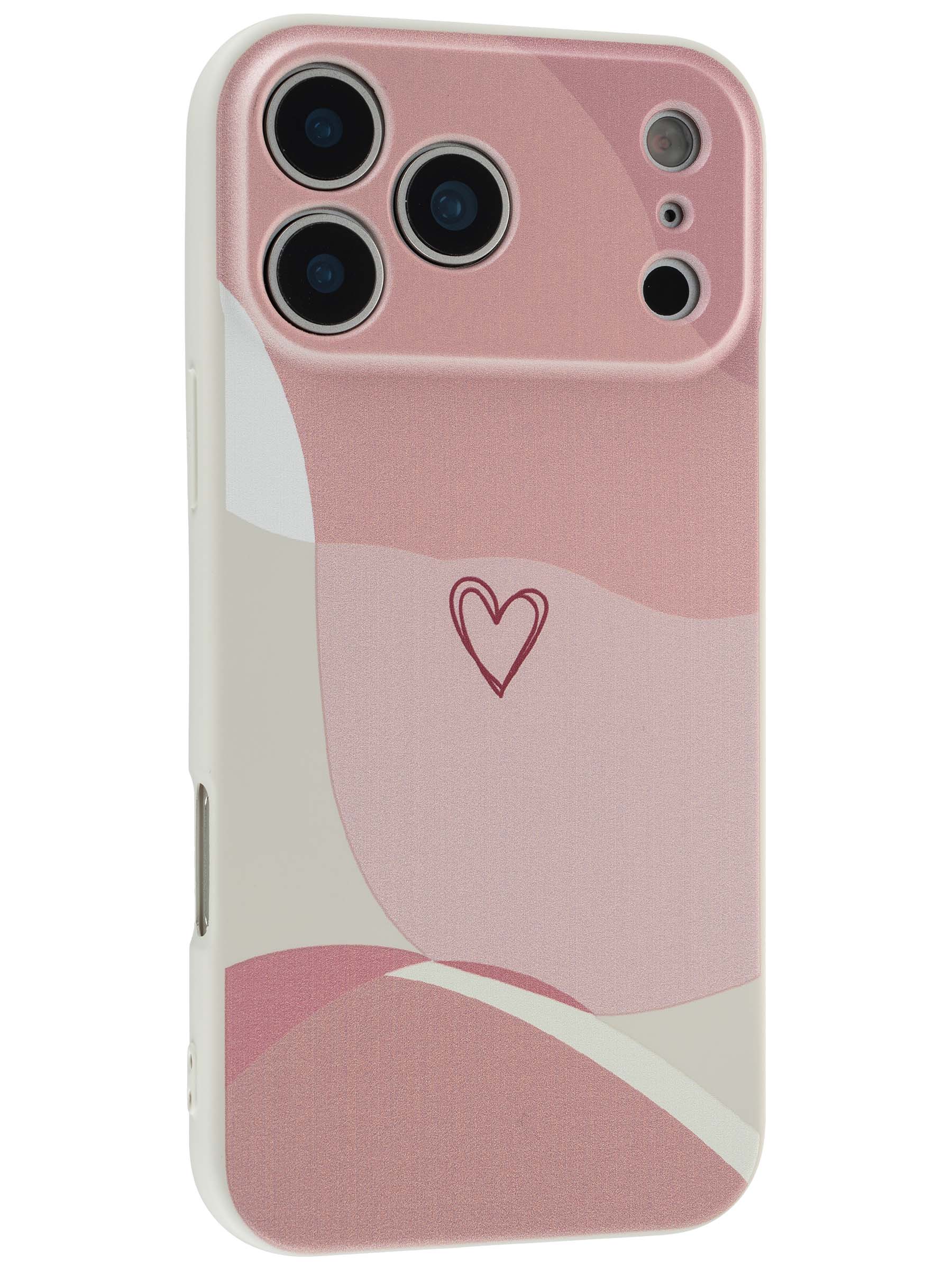 Силиконовый чехол Heart square для iPhone 17 Pro Max пудровый с розовым