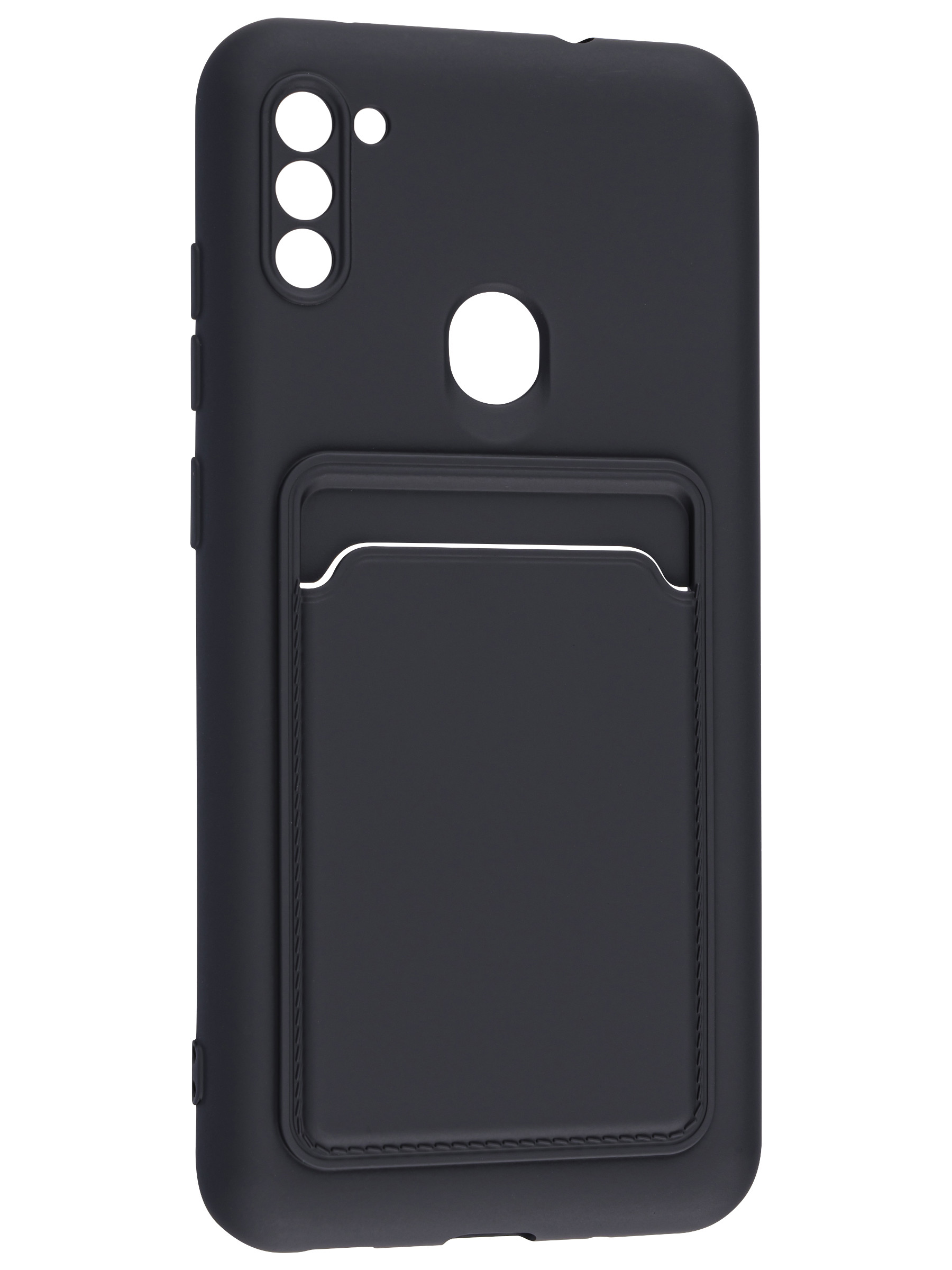Силиконовый чехол Hole для Samsung Galaxy M11 черный (с вырезом для карт)
