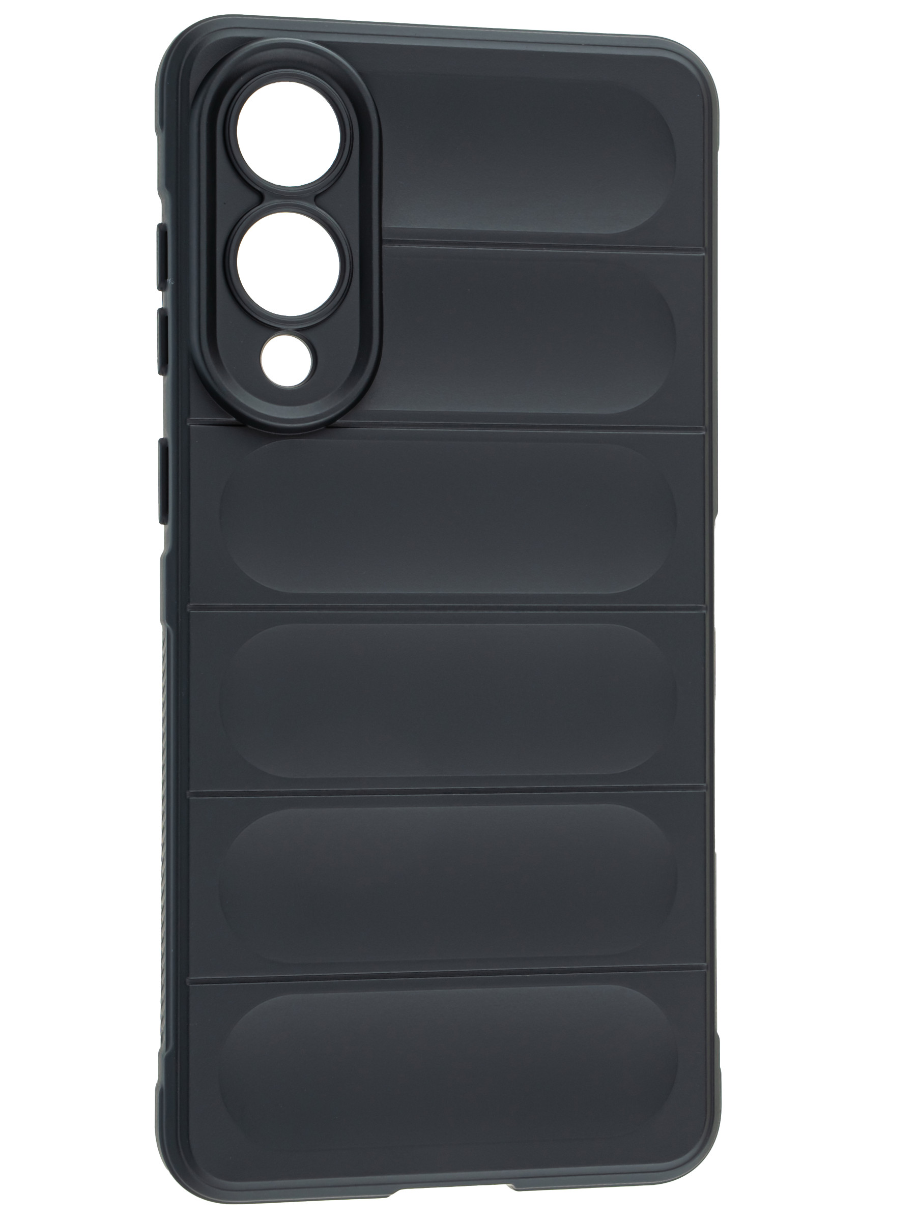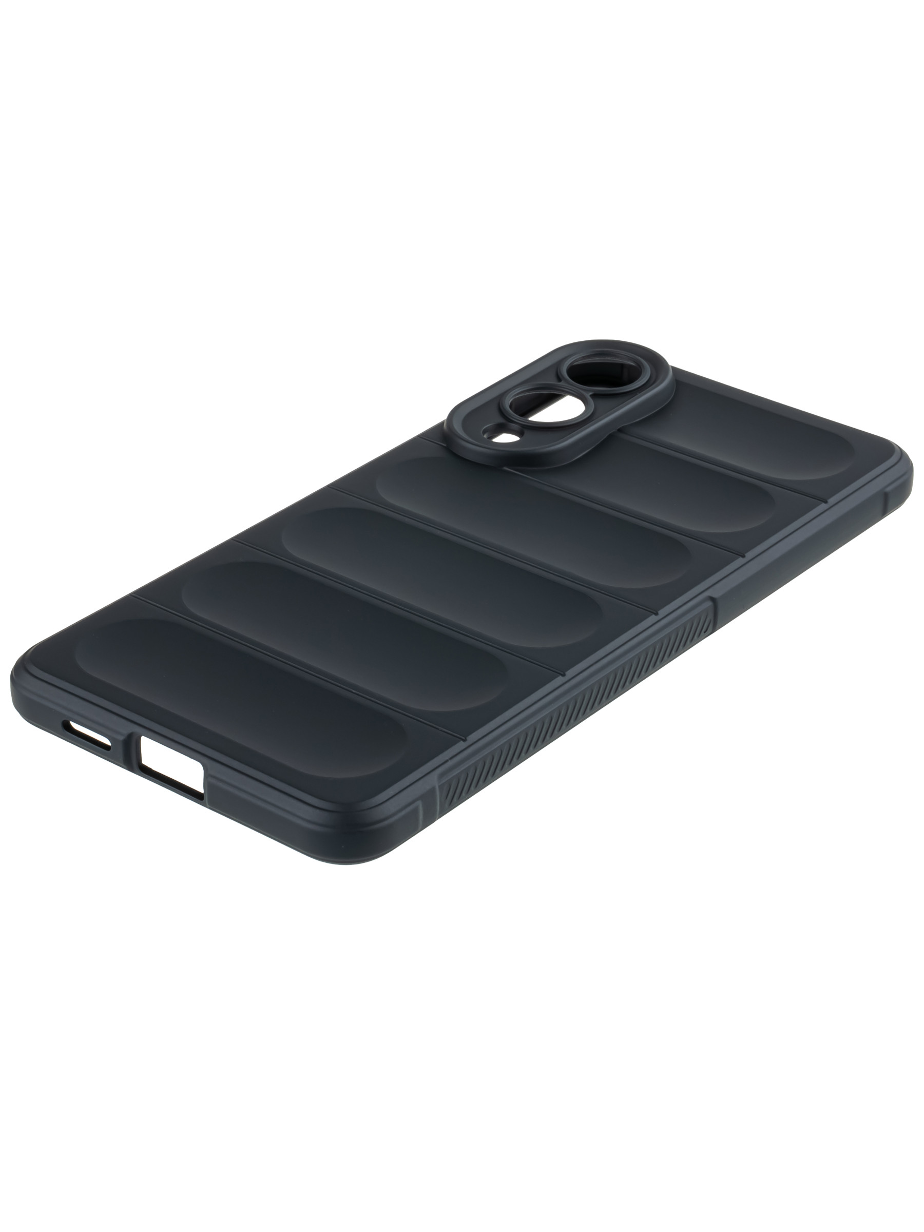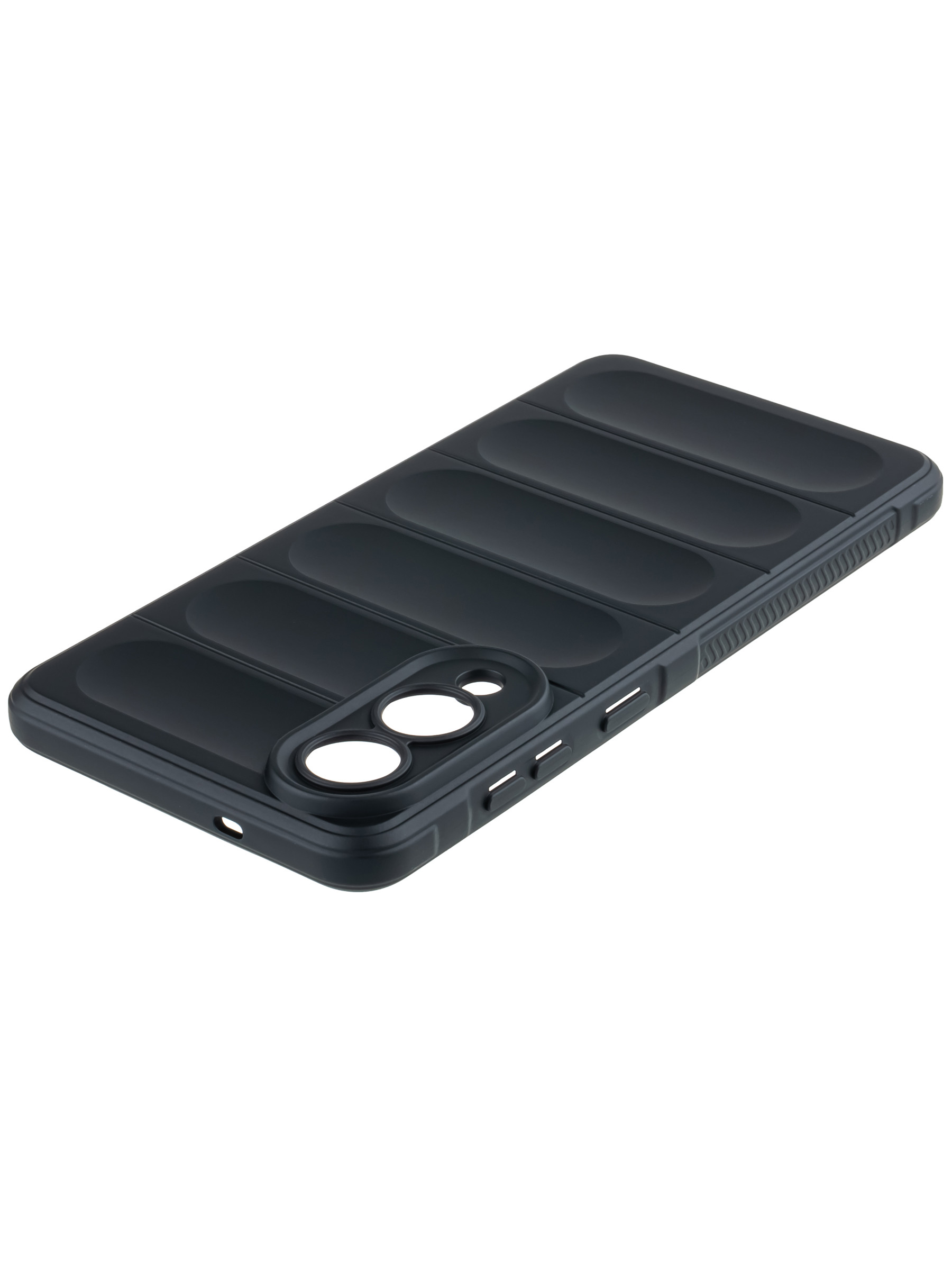 Плотный силиконовый чехол. Внутри чехол бархатный и мягкий, внешняя сторона гладкая и приятная на ощупь.