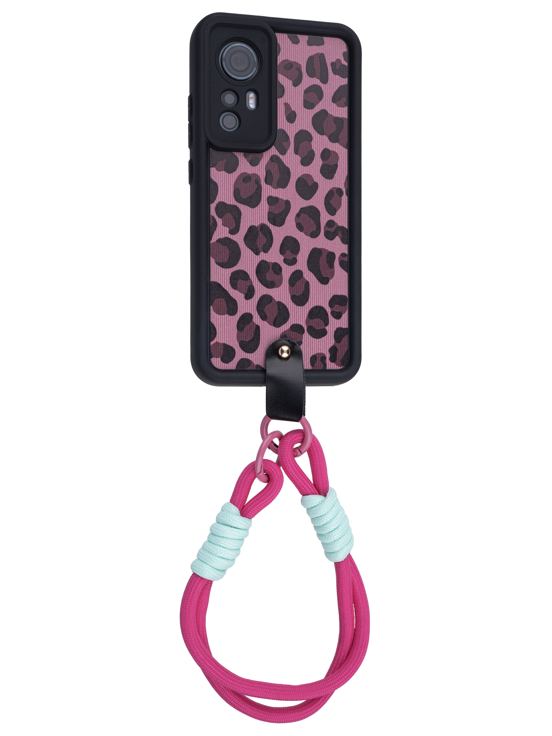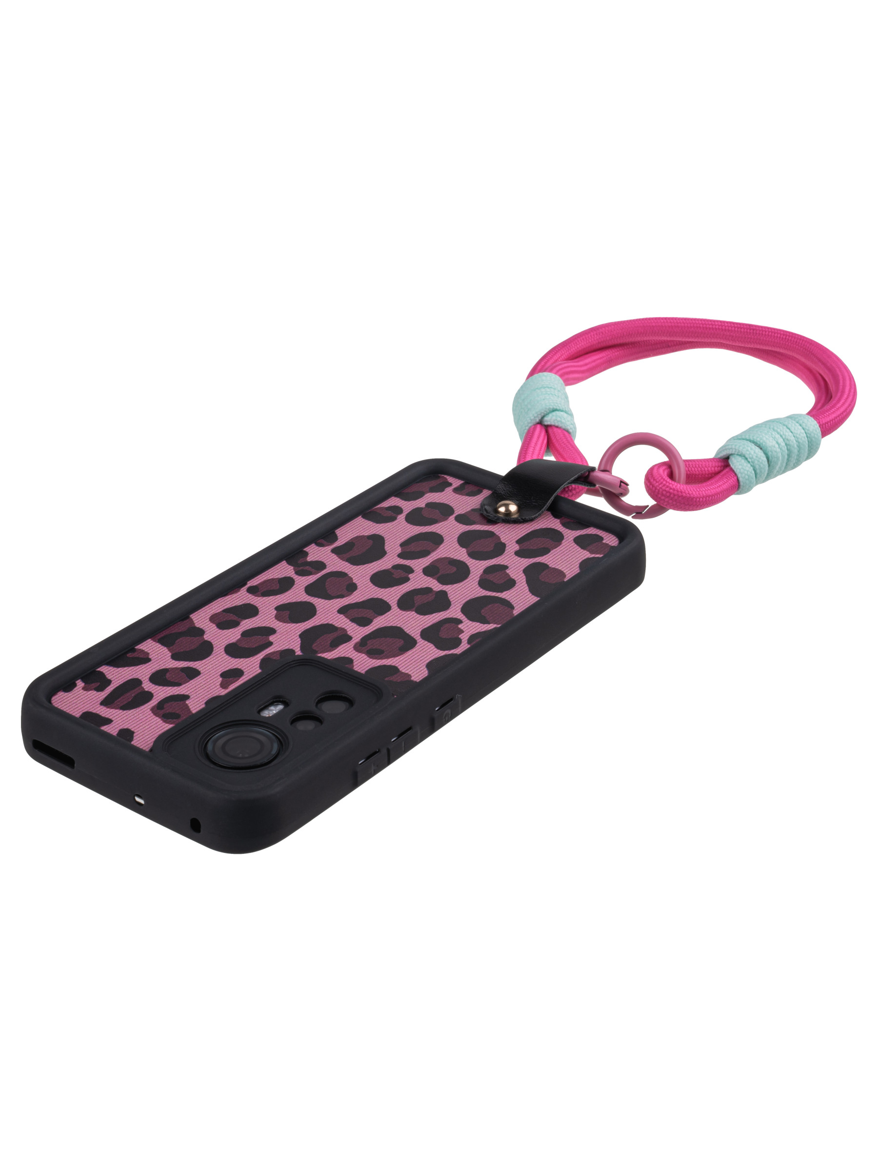 Силиконовый чехол Leopard print для Xiaomi 12 / 12x / 12s розовый с ручкой