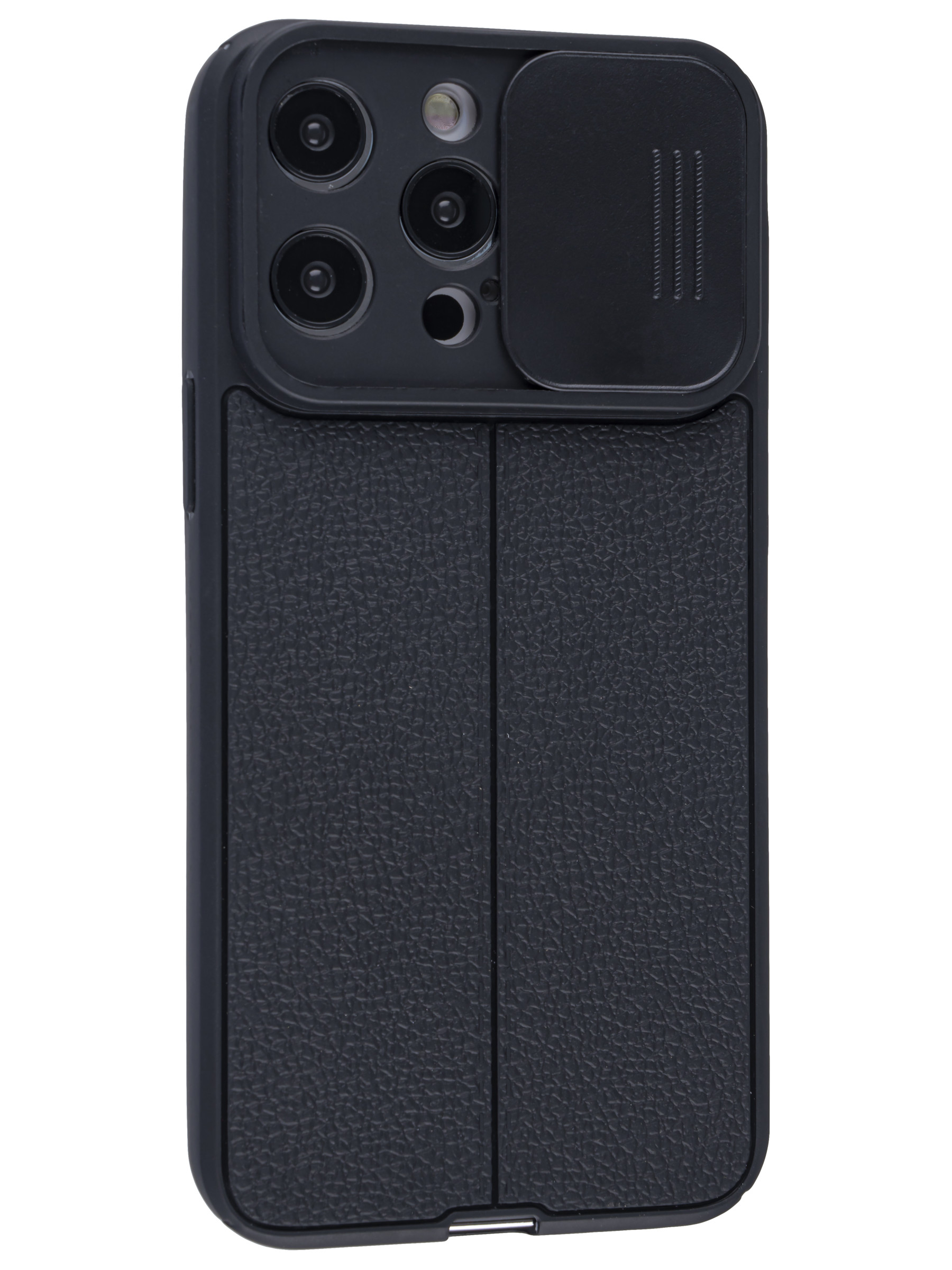 Силиконовый чехол Litchi для iPhone 14 Pro Max с защитой камеры черный
