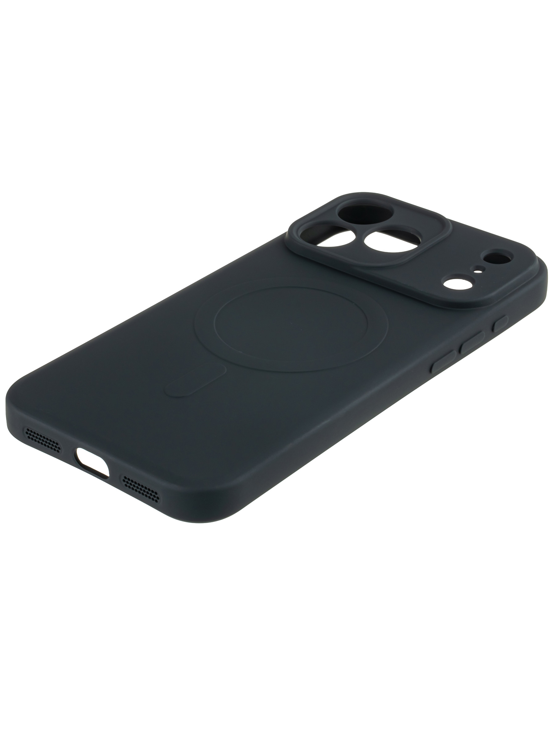 Силиконовый чехол с технологией MagSafe с закрытым низом и с защитой камеры. Встроенные в чехол магниты созданы специально для полного совпадения c магнитом для зарядки на задней панели. Они не только удерживают чехол в надежном положении, но и позволяют с легкостью его снимать. Из-за того, что чехол с магсейф магнитами на панели и чехле полностью совпадают, беспроводная зарядка происходит более удобно и быстро. К тому же, не нужно беспокоиться и снимать чехол во время беспроводной зарядки, ведь стоит только подсоединить MagSafe или поставить смартфон на любое зарядное устройство технологии Qi. Чехол накладка с магнитом magsafe имеет очень удобные, легко нажимаемые кнопки управления, полностью соответствует оригинальным вырезам и выступам вашей модели телефона. Также чехол идет с защитой экрана, его бортики немного выступают над дисплеем телефона, что позволяет класть его на стол экраном вниз не боясь поцарапать или повредить его. Однотонный чехол с максейф подойдет и для мужчин и для девушек.