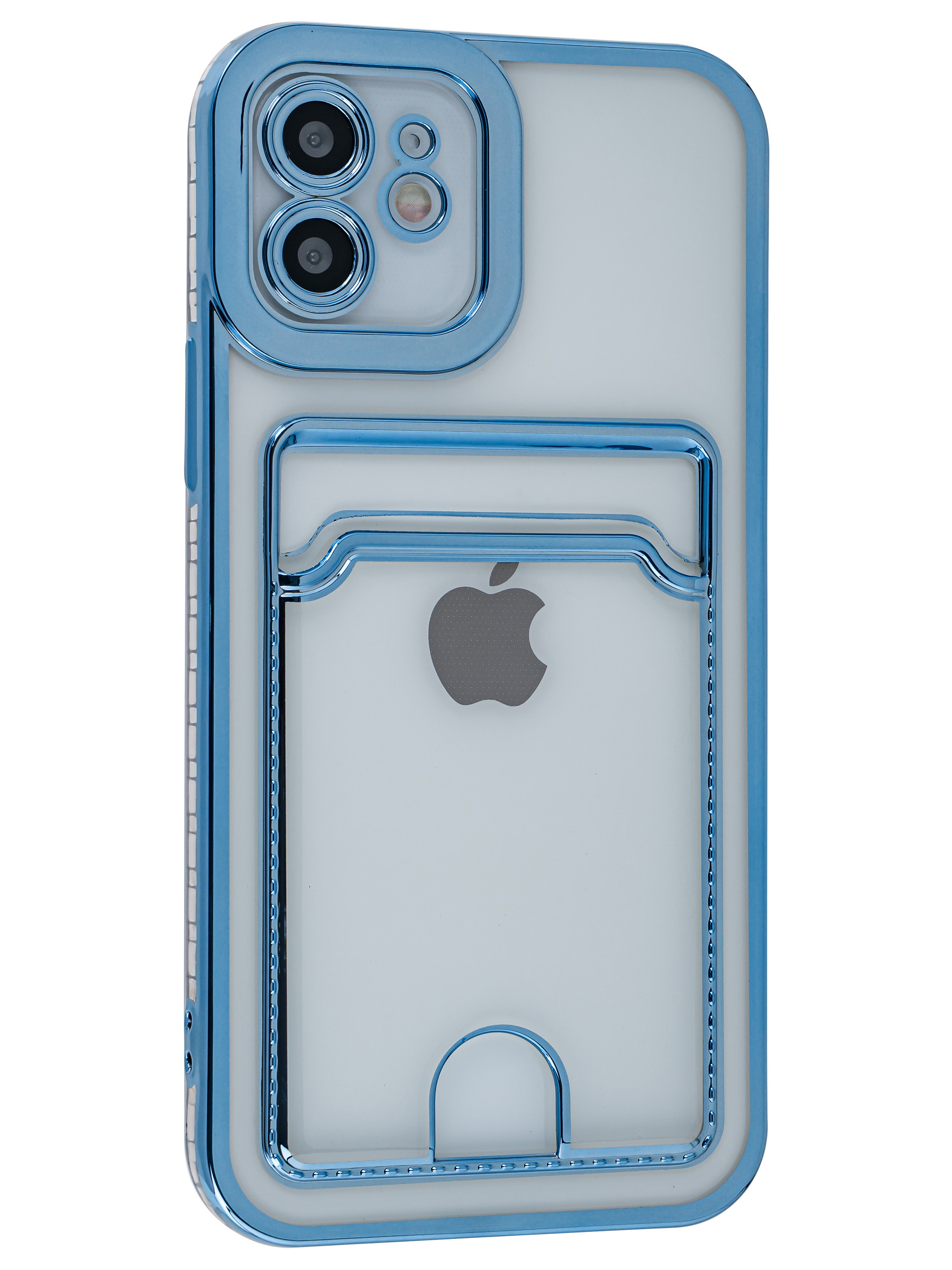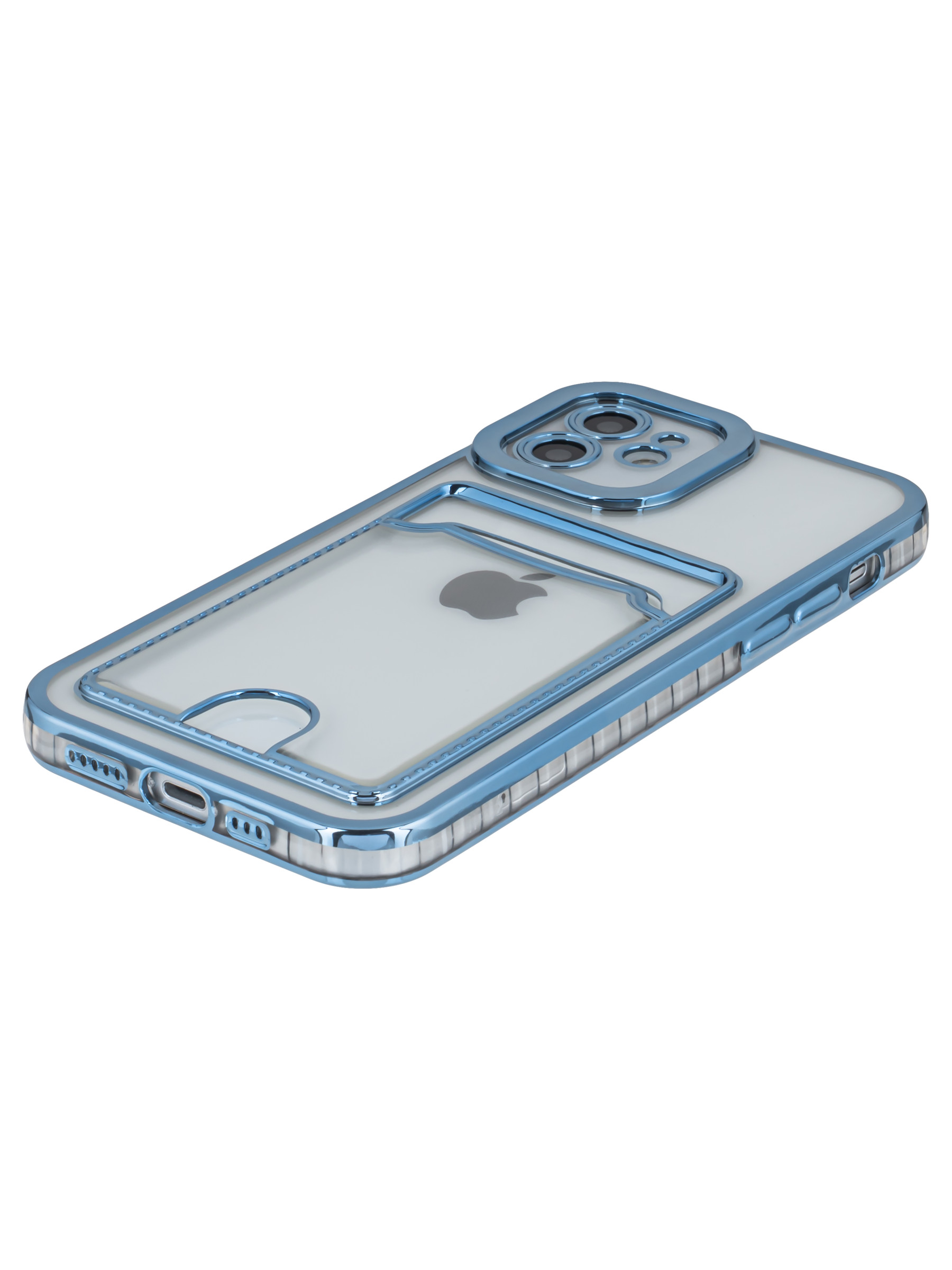 Силиконовый чехол Metallic rim для iPhone 12 голубой (с вырезом для карт)