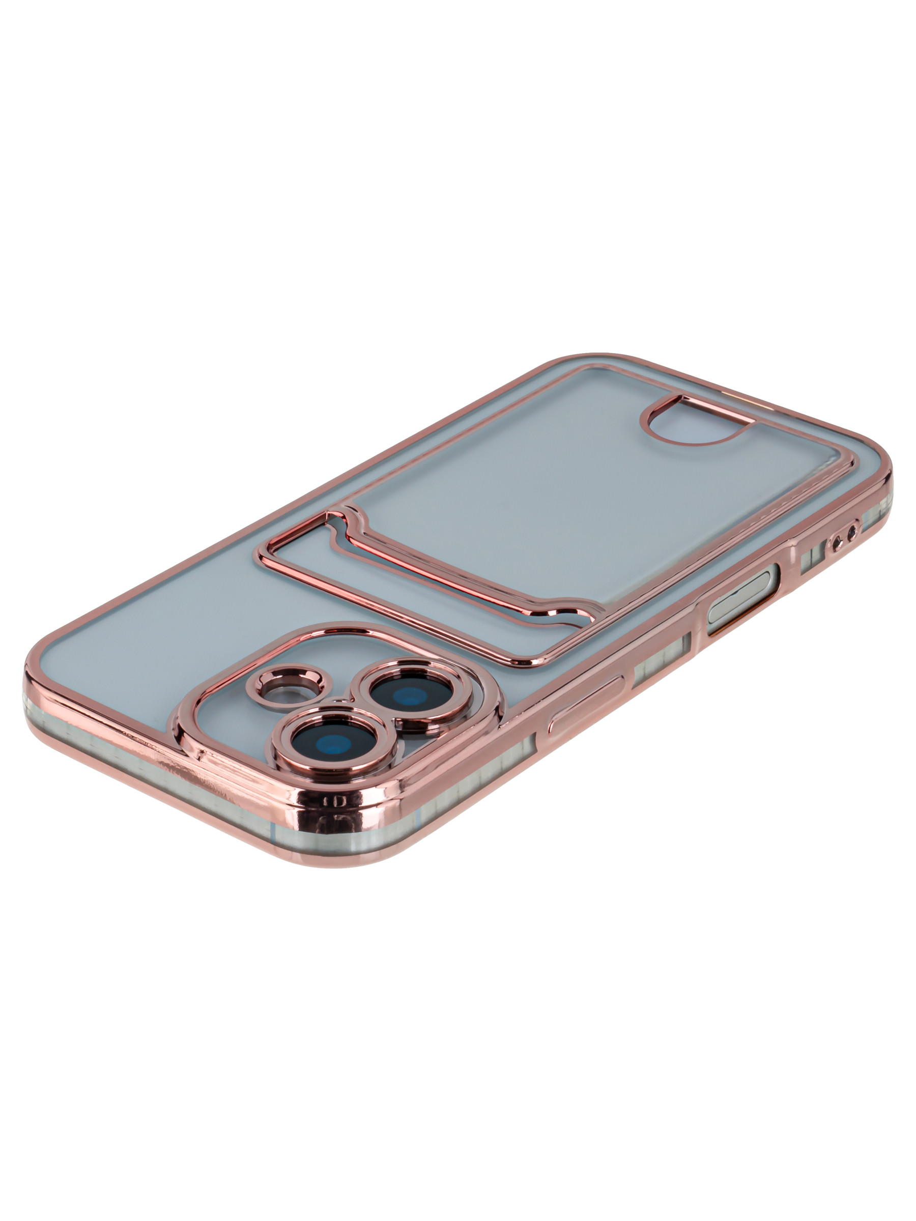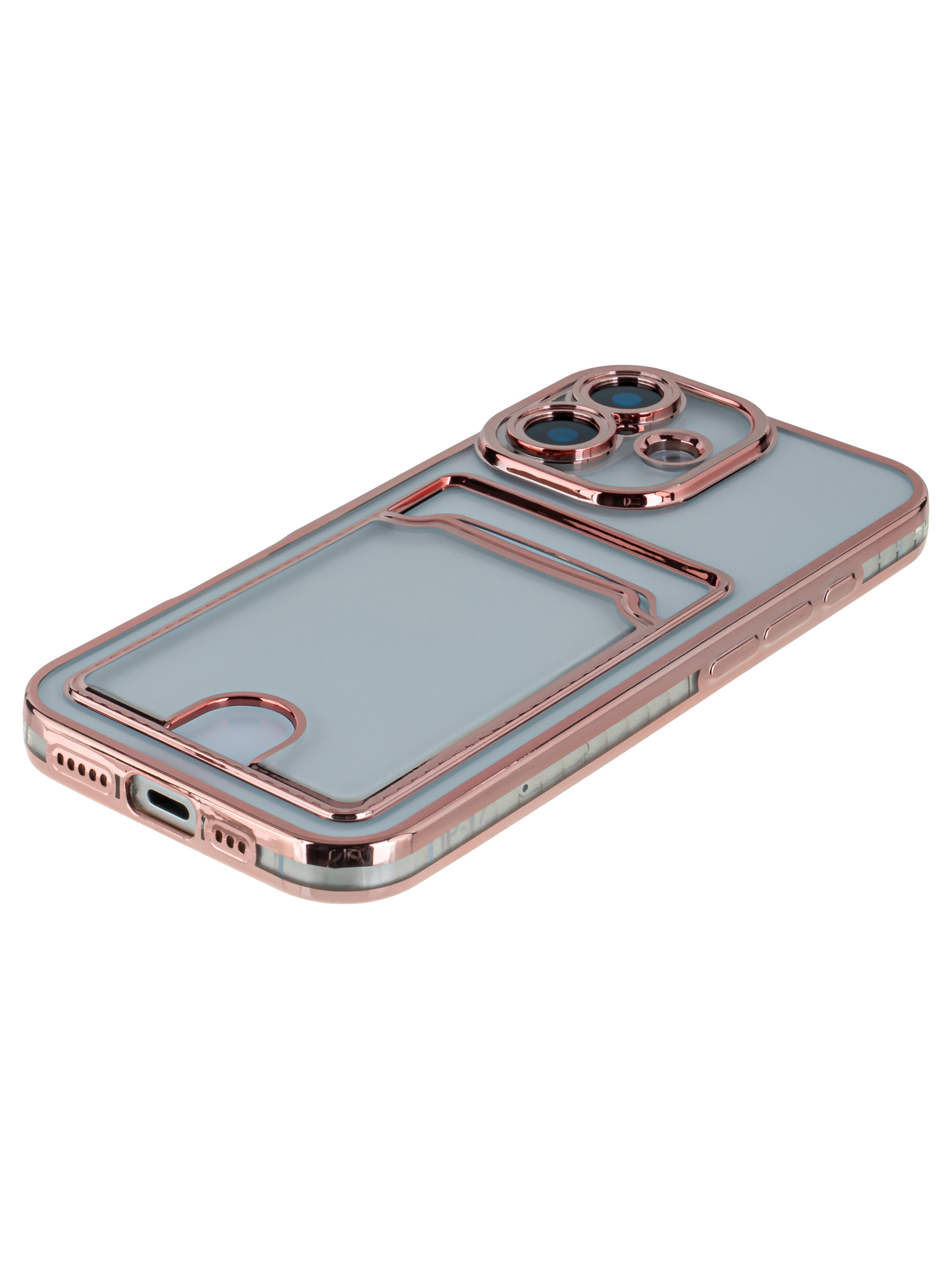 Силиконовый чехол Metallic rim для iPhone 17 розовый (с вырезом для карт)