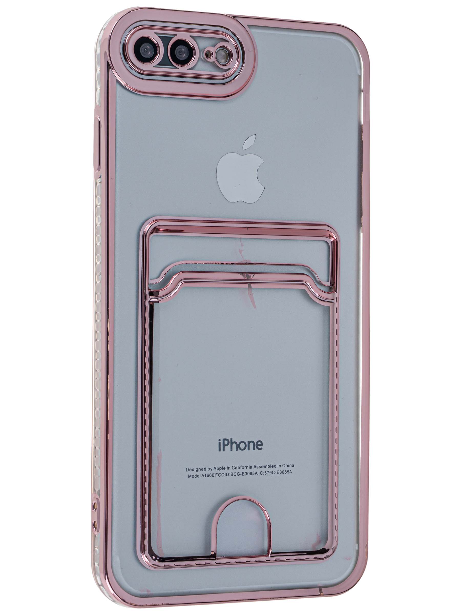 Силиконовый чехол Metallic rim для iPhone 7 Plus, 8 Plus розовый (с вырезом для карт)