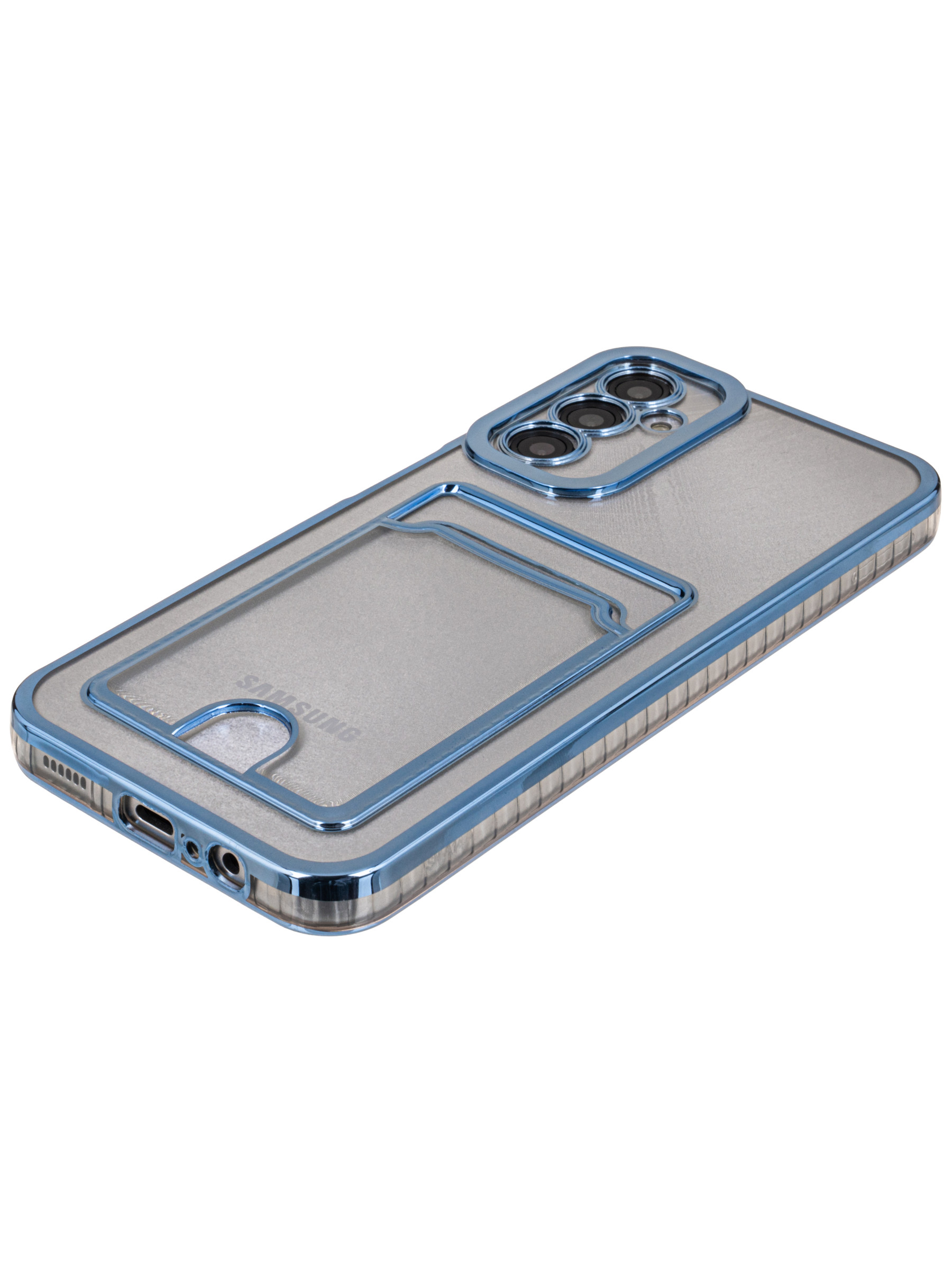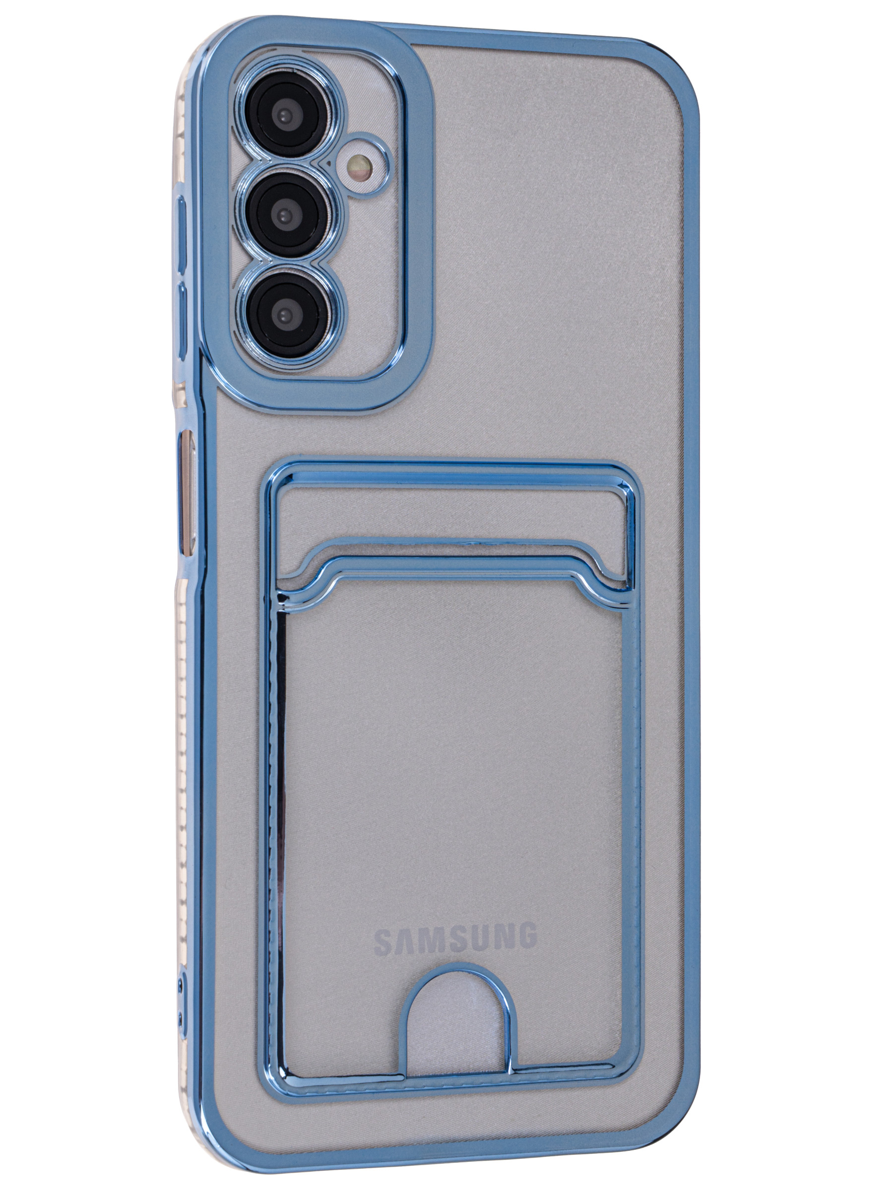 Силиконовый чехол Metallic rim для Samsung Galaxy A14 голубой (с вырезом для карт)