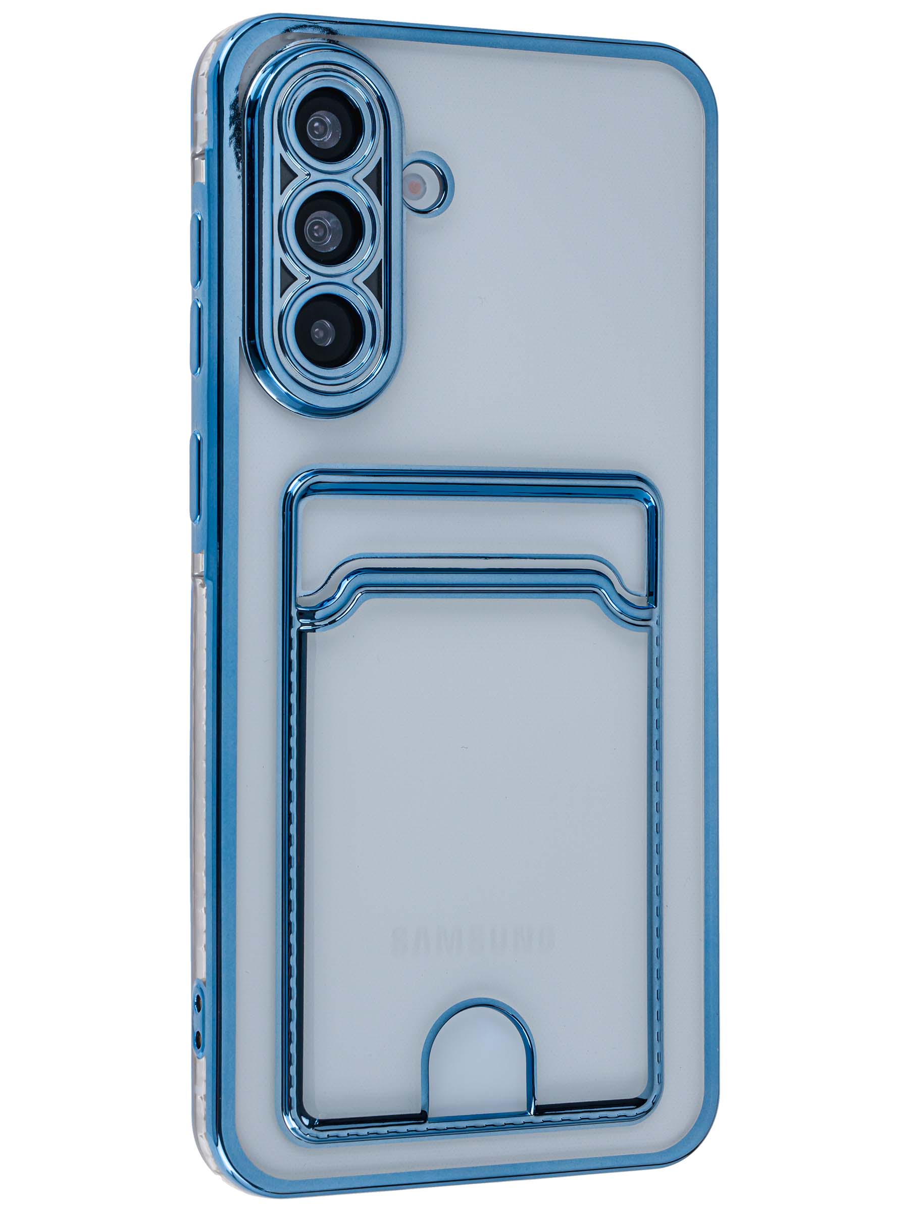Силиконовый чехол Metallic rim для Samsung Galaxy A56 голубой (с вырезом для карт)