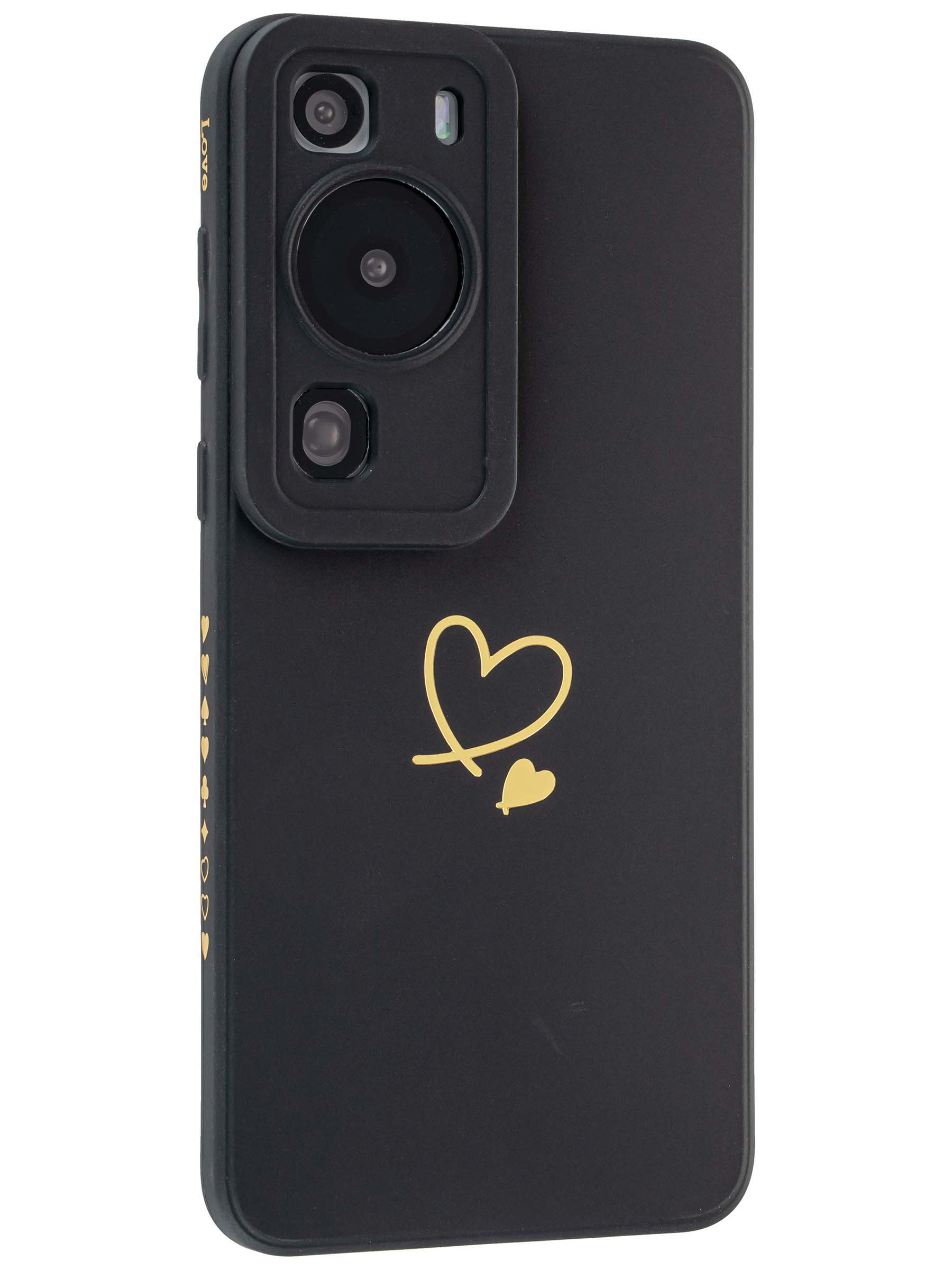 Силиконовый чехол Picture для Huawei P60 Pro Сердце черный