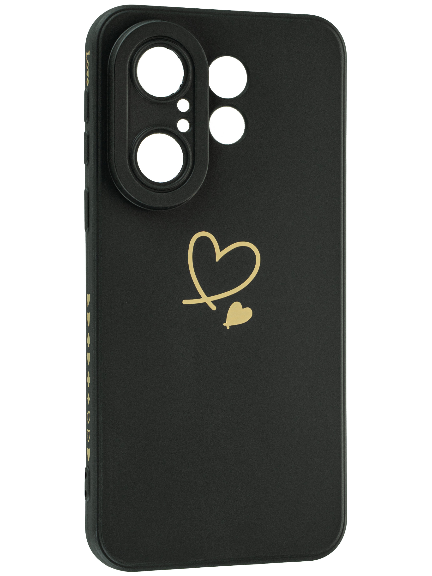Матовый силиконовый чехол с прямыми гранями. Модуль камер максимально защищен. Благодаря использованию гибкого материала, чехол накладка плотно садится на корпус телефона. Кнопки телефона в чехле нажимаются легко и не создают дополнительного сопротивления. Все технические отверстия соответствуют оригинальному расположению и размерам смартфона. Чехол силиконовый не только отлично выглядит, но и превосходно защищает телефон от царапин и повреждений при падении,так как идет с закрытым низом и верхом, с защитой камеры, она полностью закрыта и усилена дополнительным выступом, а так же с защитой экрана, по периметру которого есть небольшой бортик. На однотонный чехол нанесен качественный принт с сердечками, который не выцветает и не выгорает, а также не боится воды. Данный бампер идеально подойдёт для девочки и девушки.