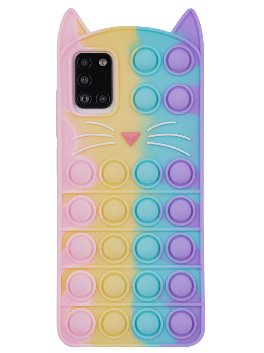 Силиконовый чехол Pop it для Samsung Galaxy A31 Кот радужный