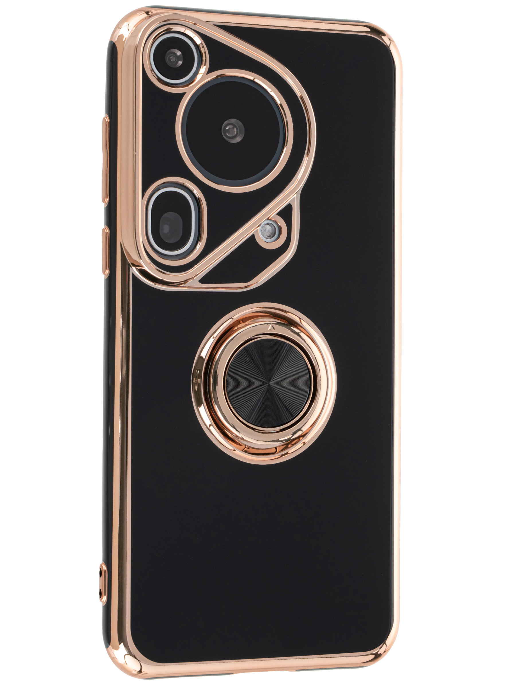 Силиконовый чехол Ring case для Huawei Pura 70 Ultra черный с кольцом