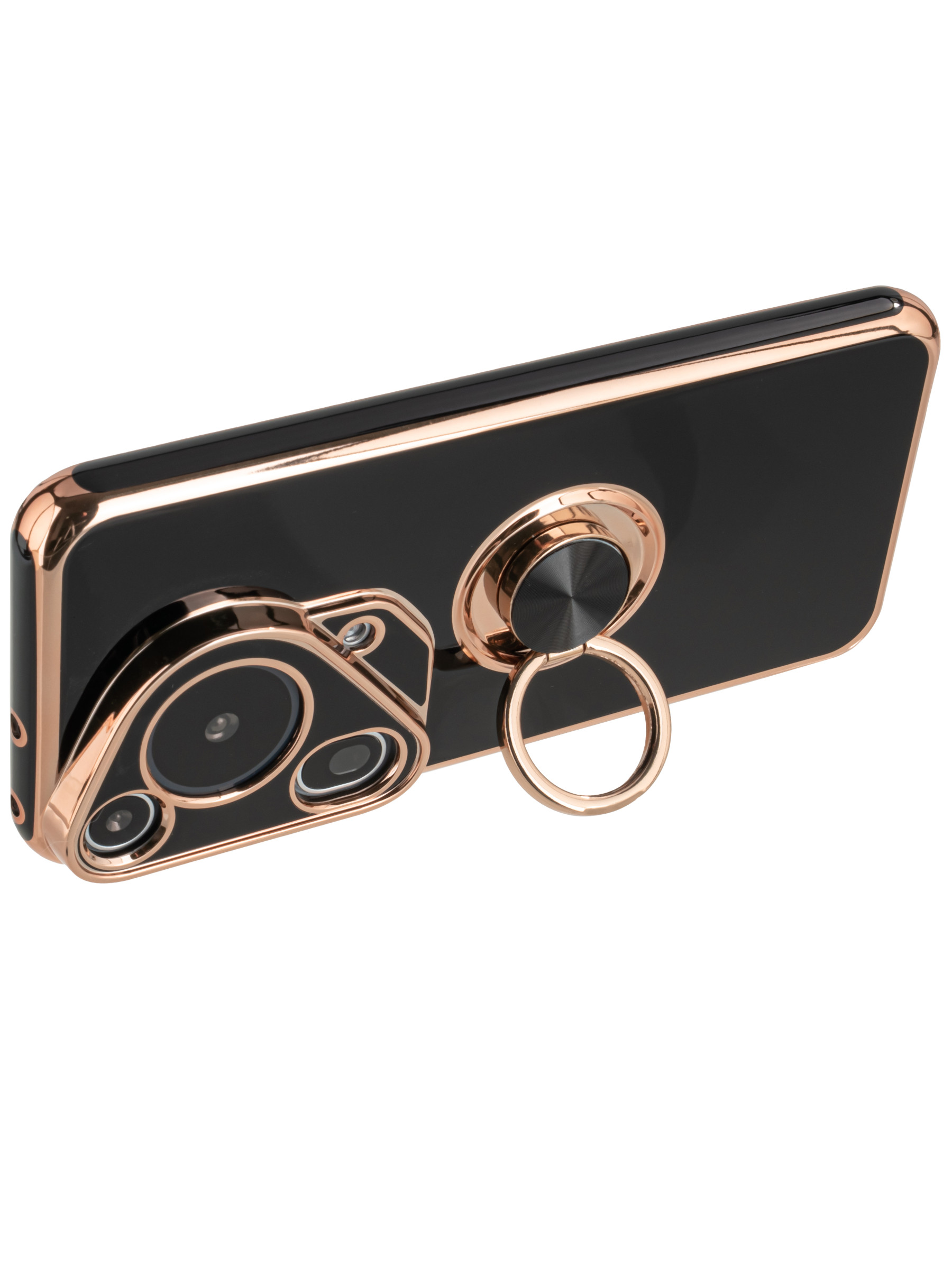 Чехол с кольцом на металлическом основании, который так же можно использовать к магнитному держателю, а также помогает Вам не потерять телефон из рук при его использовании. Кольцо можно также использовать в качестве подставки для удобного просмотра контента. Этот чехол обладает не только стильным и оригинальным дизайном, но и функциональностью. Внутренний слой чехла изготовлен из микроволокна "велюр", защищая его от царапин и потертостей. Чехол имеет прямые и квадратные грани, закрытую камеру, добавляя дополнительную защиту. Боковые грани устройства также защищены, использование силикона обеспечивает защиту от механических повреждений. Этот модный и прикольный чехол накладка станет прекрасным выбором для защиты вашего смартфона.