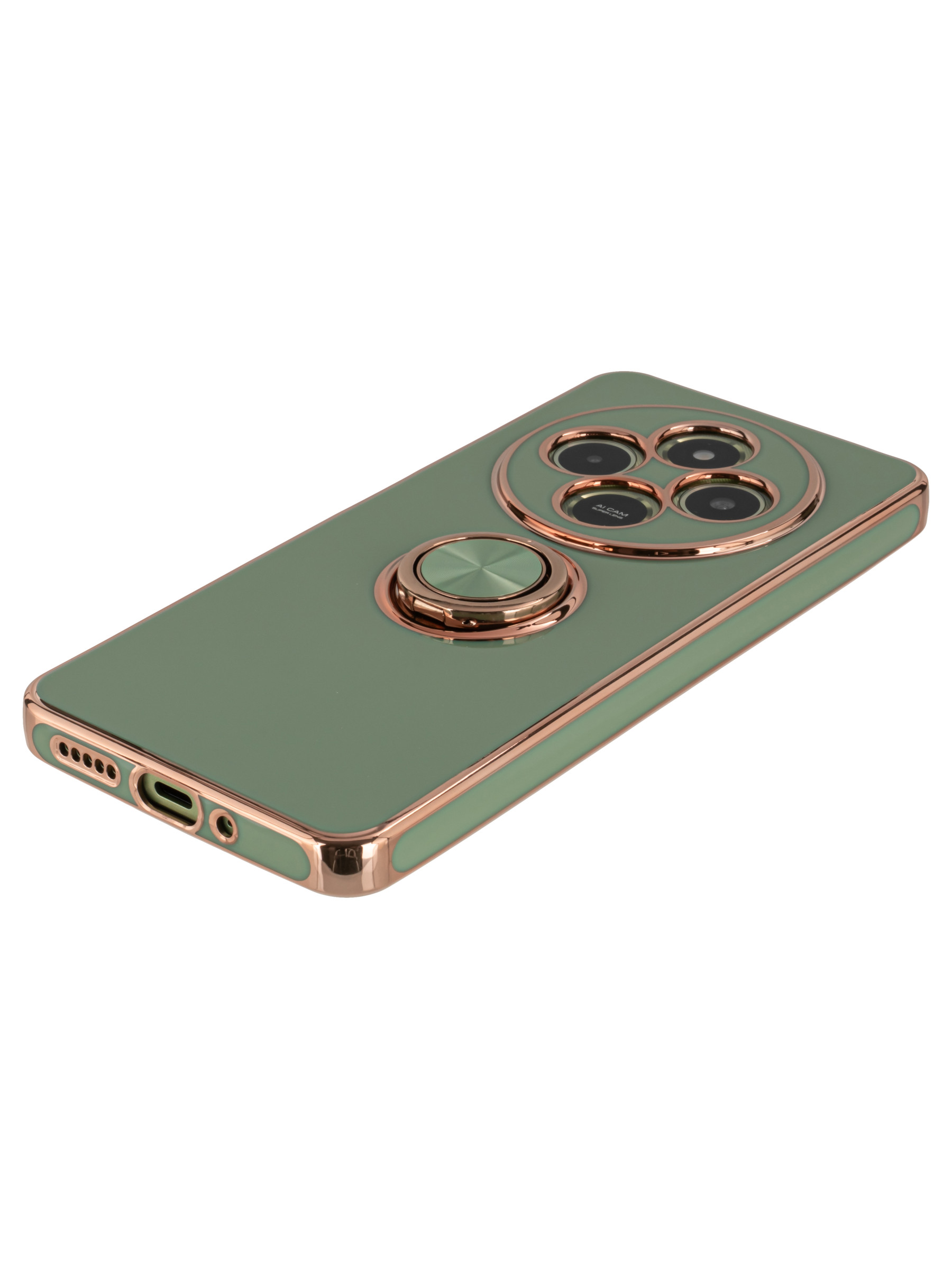 Силиконовый чехол Ring case для Xiaomi Redmi 14C / Poco C75 оливковый с кольцом