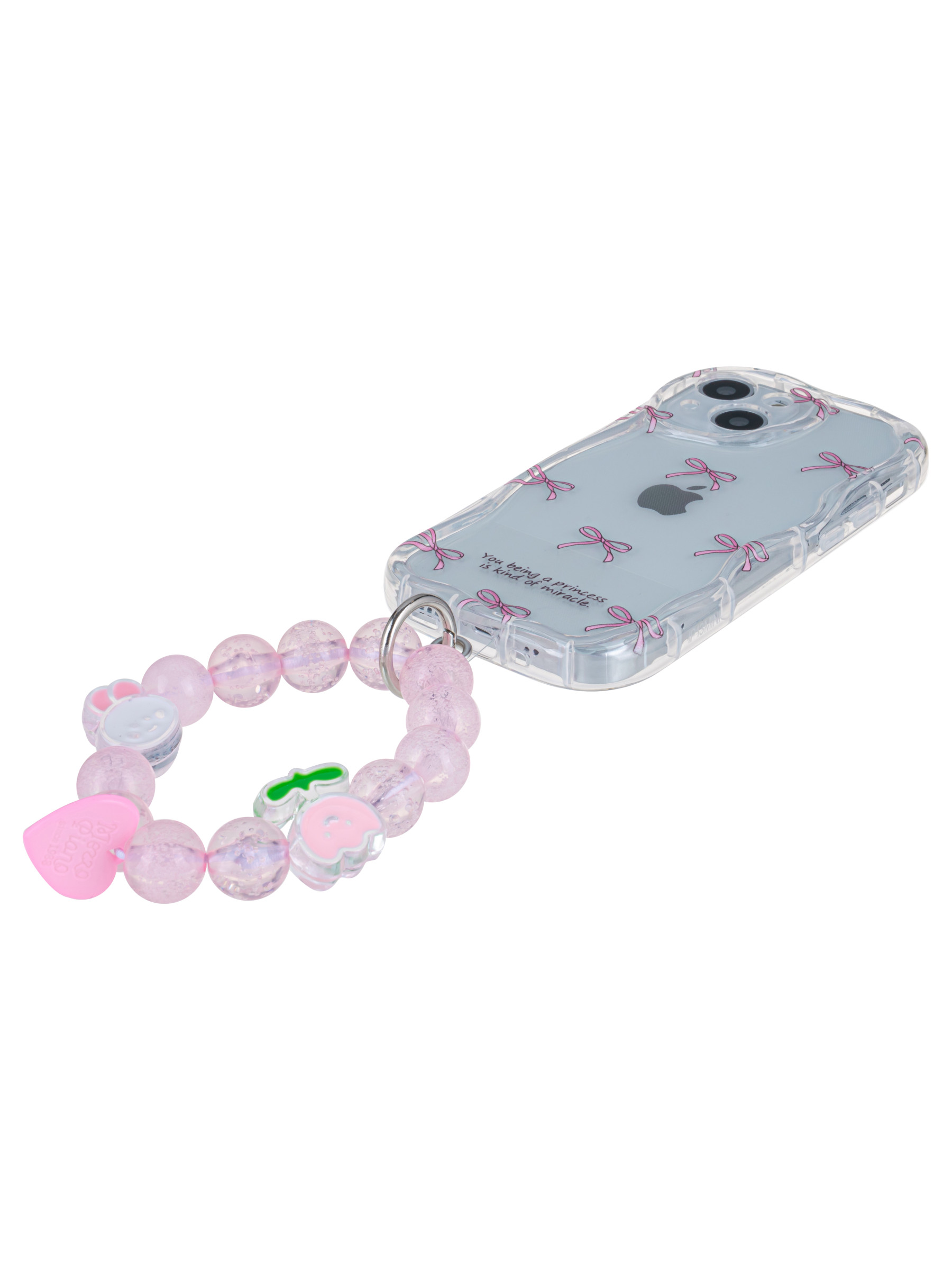 Силиконовый чехол Small bows для iPhone 13 Mini прозрачный с браслетом