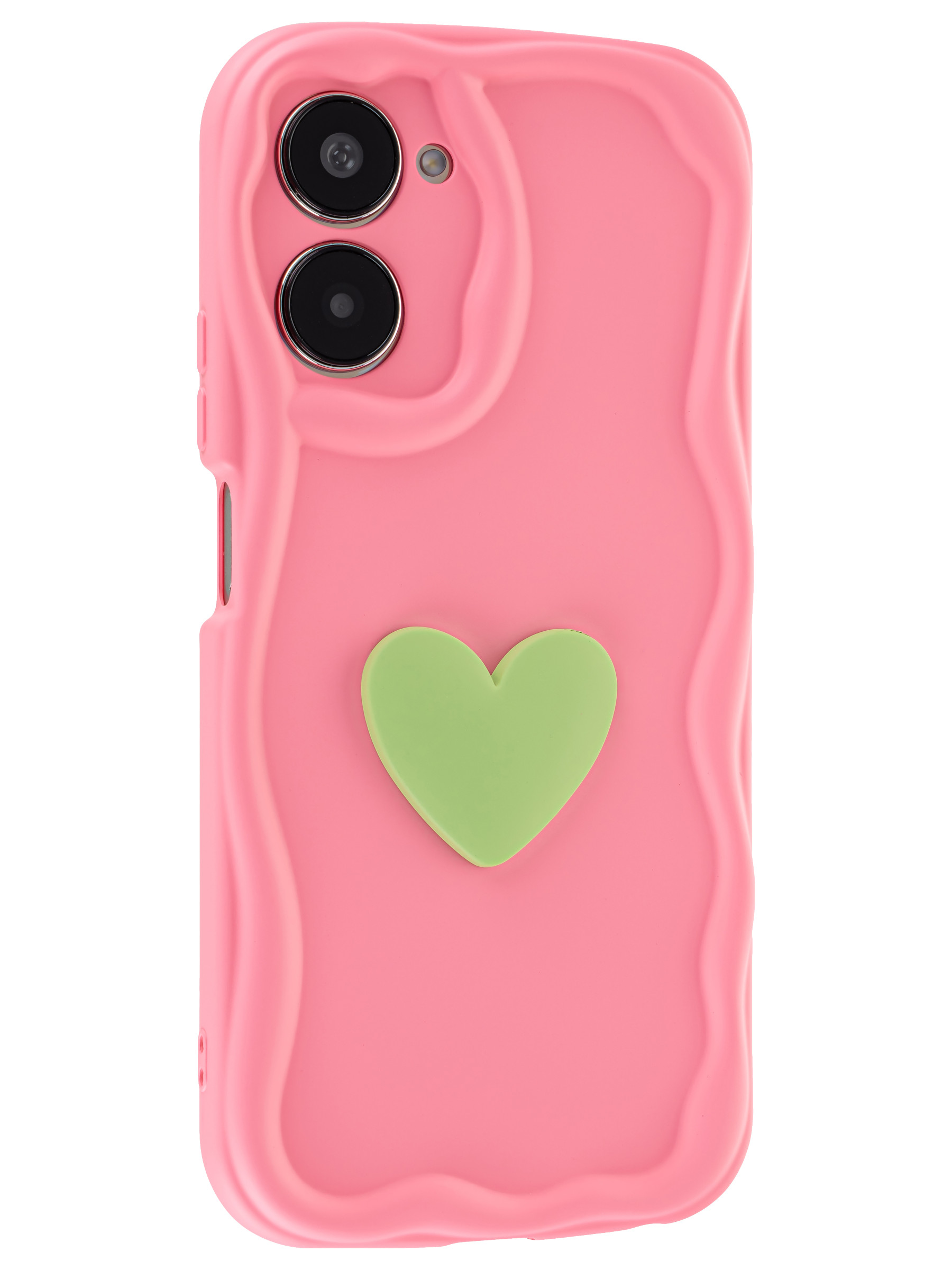 Матовый силиконовый чехол для телефона с объемным сердечком — это превосходное сочетание стиля и надежной защиты! Изготовленный из высококачественного силикона, он обеспечивает вашему телефону защиту от различных повреждений, царапин и пыли. Его уникальная волнистая текстура придает чехлу современный и необычный дизайн, а матовая поверхность делает его приятным на ощупь и предотвращает случайное скольжение в руках. Чехол обеспечивает удобный доступ ко всем кнопкам, разъемам и камере.
