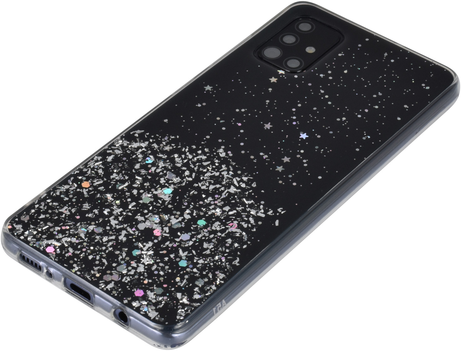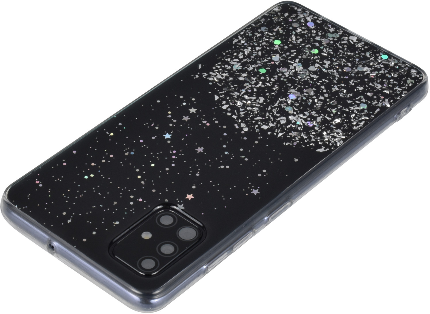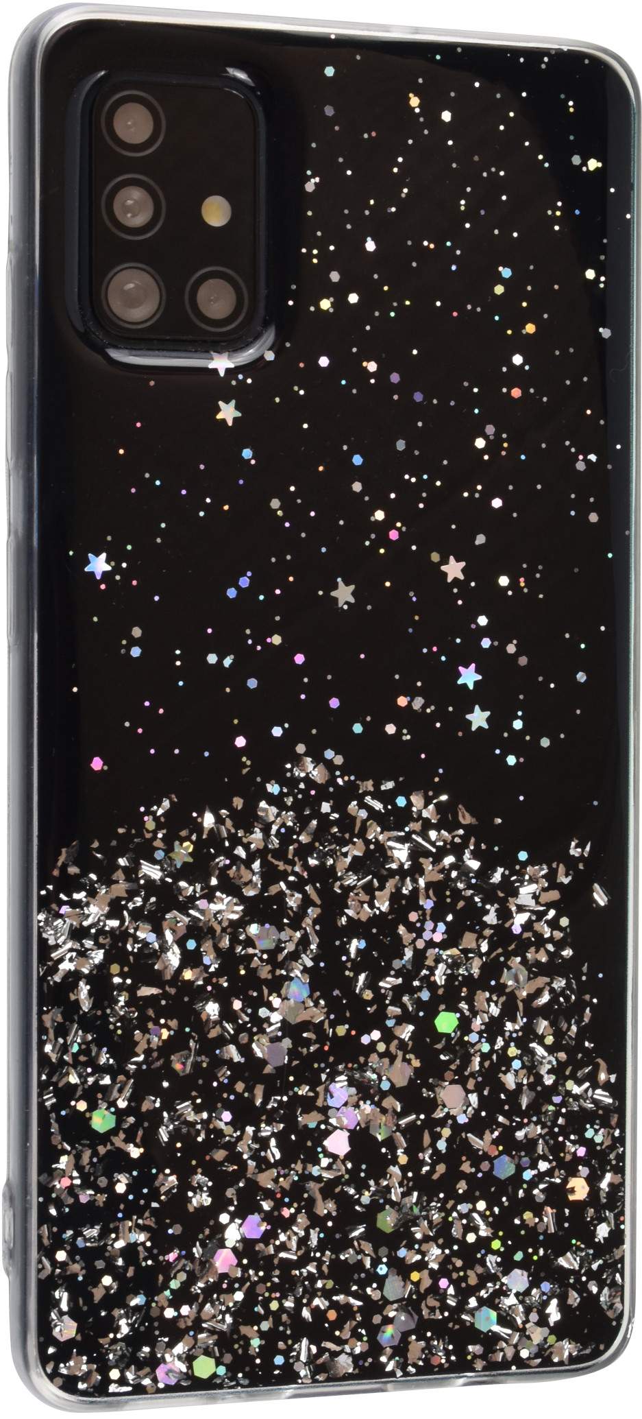 Силиконовый чехол Star для Samsung Galaxy A51 черный с блестками