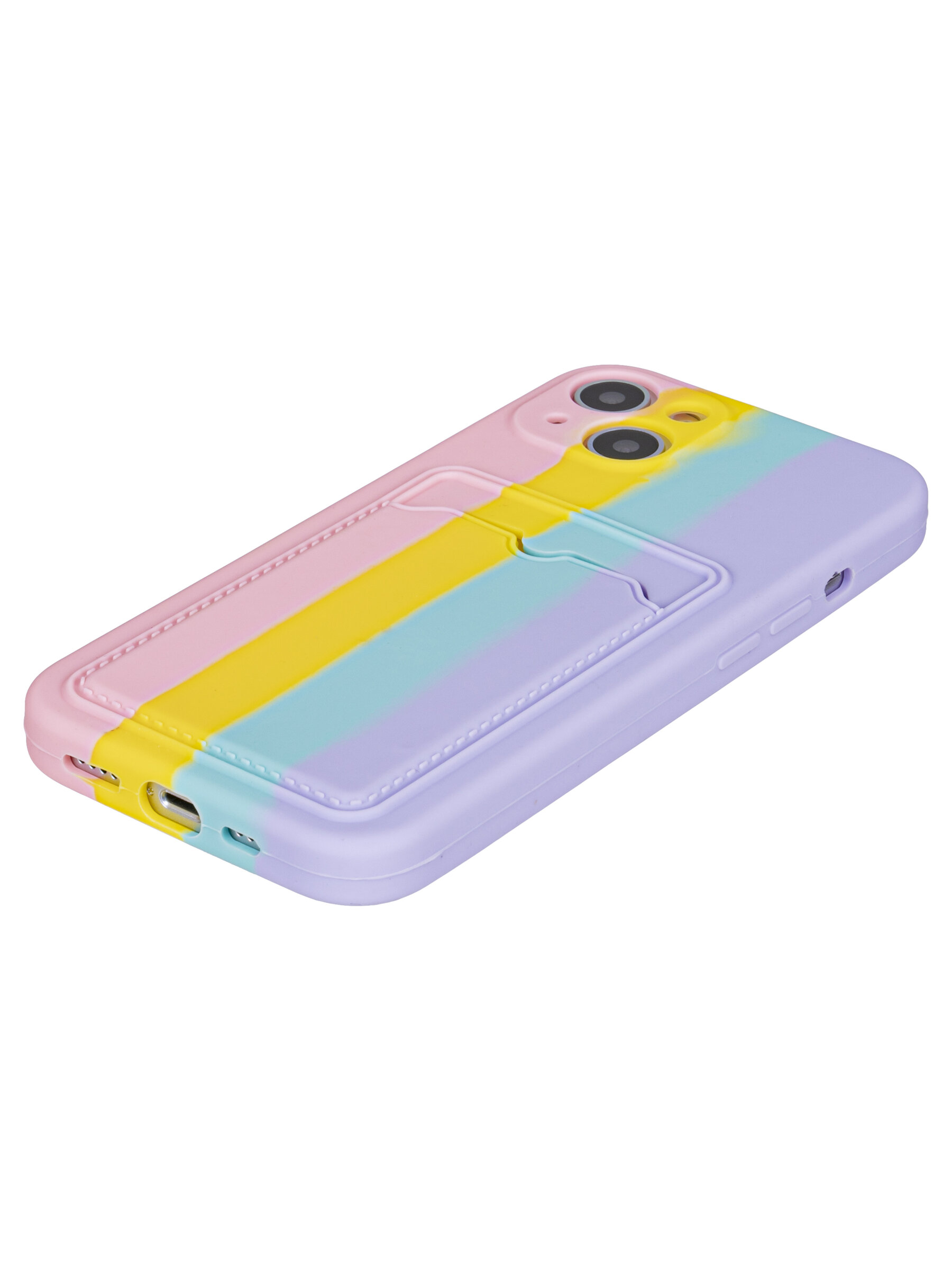 Силиконовый чехол Striped для iPhone 13 яркий перелив (вырез под карту)