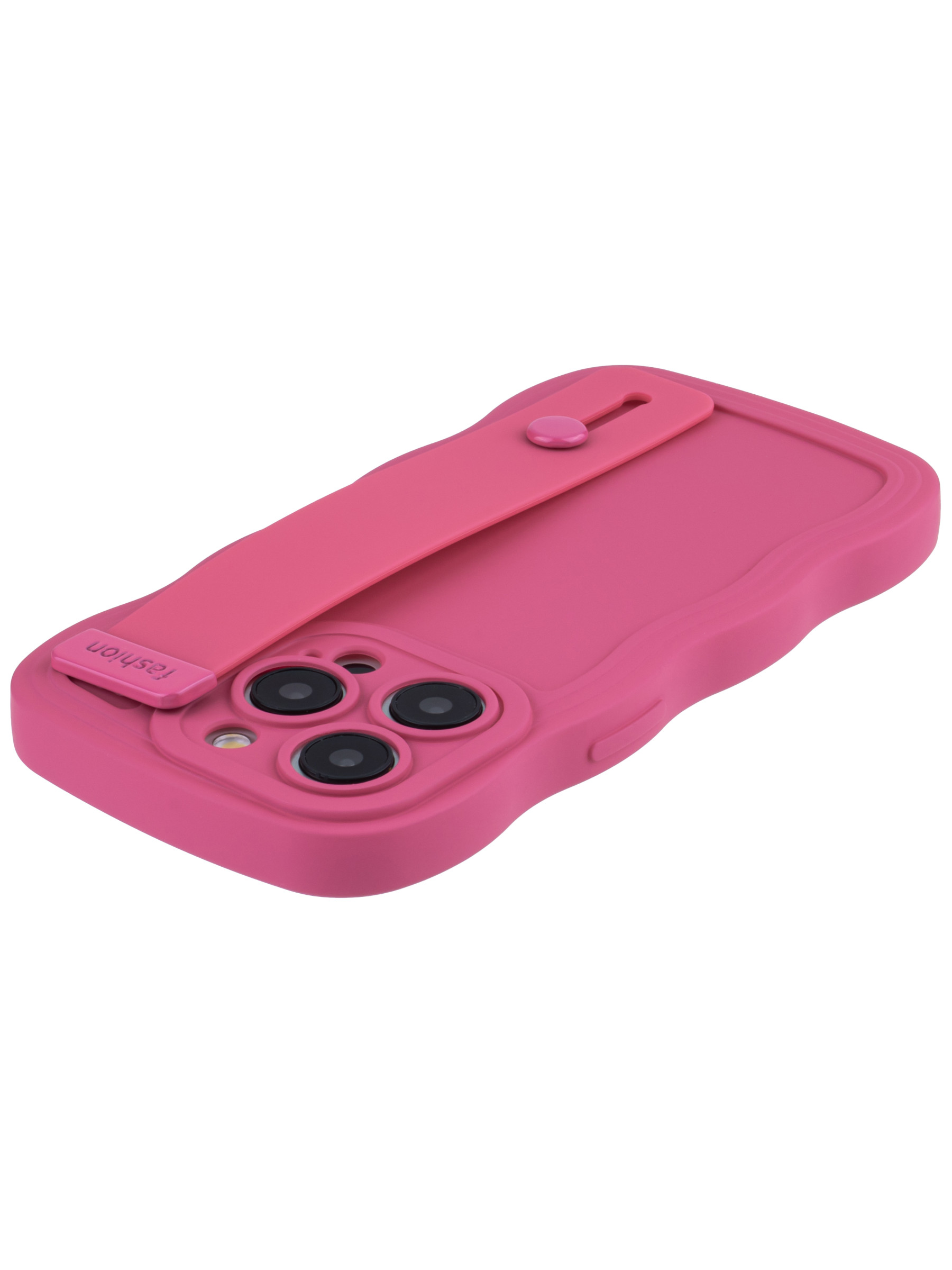 Силиконовый чехол Style для iPhone 15 Pro розово-красный с ручкой
