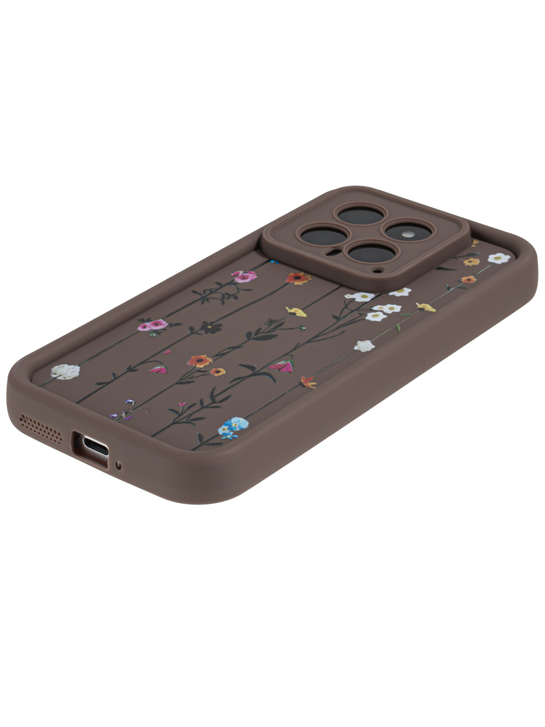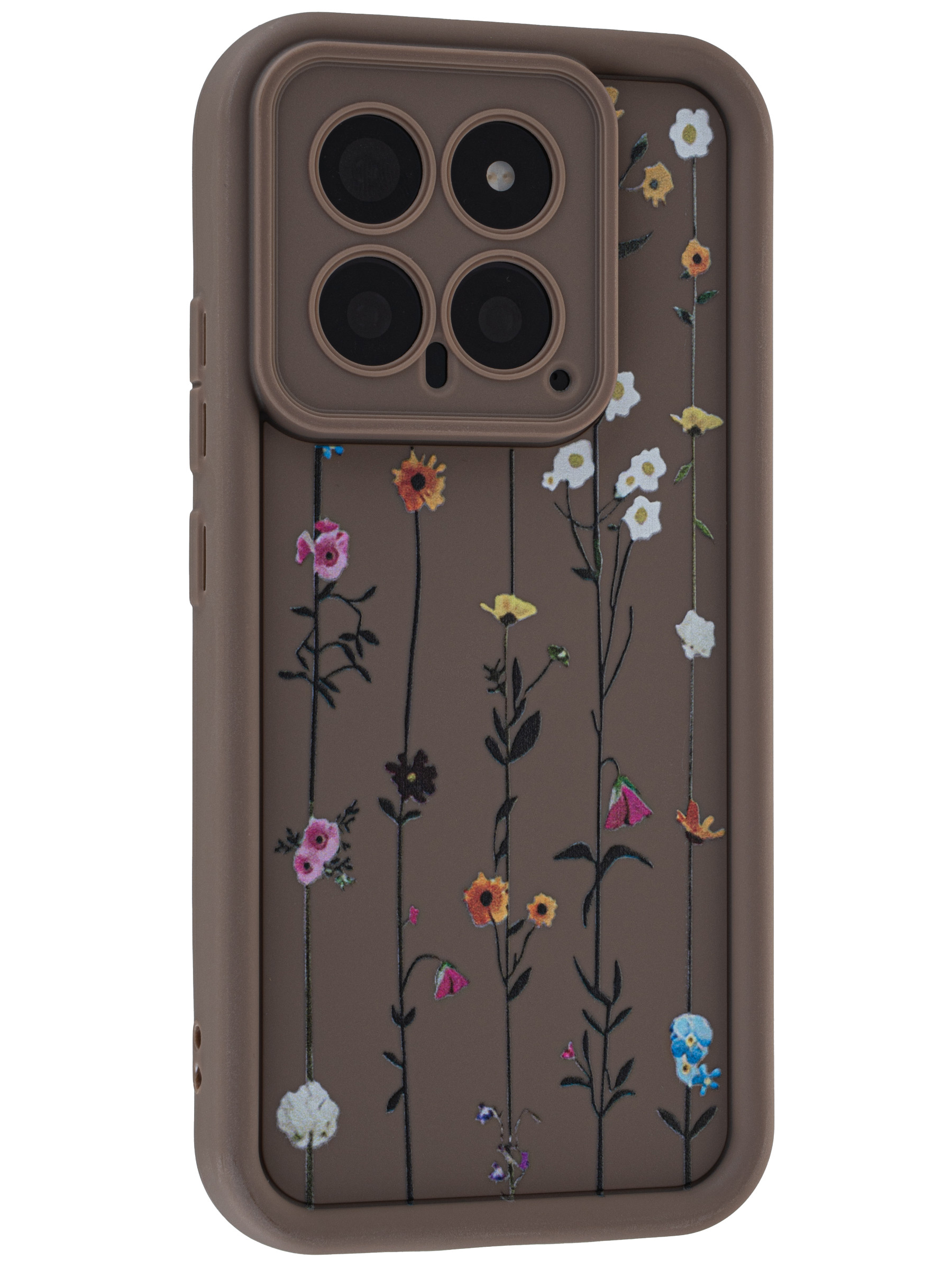 Силиконовый чехол Thick для Xiaomi 14 Flower vine коричневый