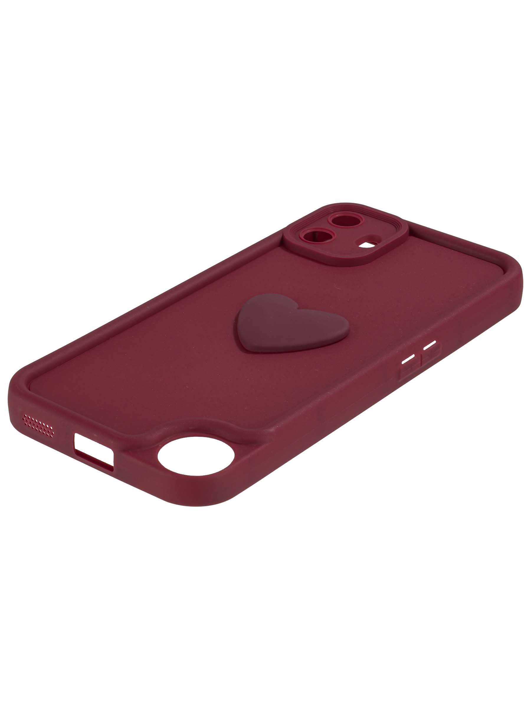 Силиконовый чехол с объемным сердцем от КейсБерри. Модуль камер максимально защищен. Все вырезы идеально подогнаны.