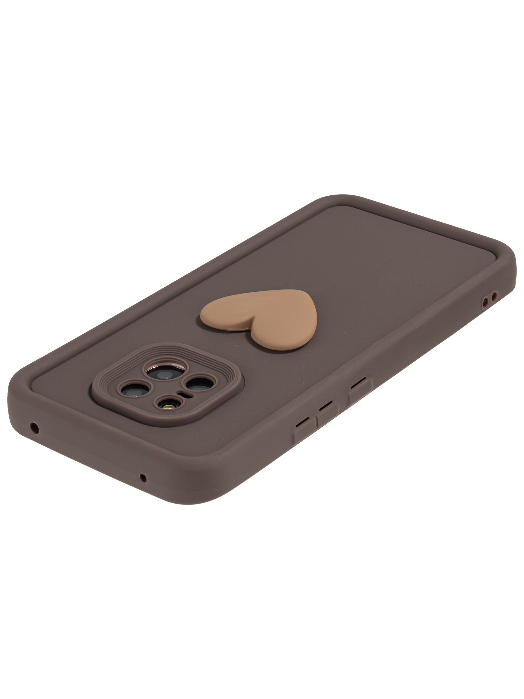 Силиконовый чехол с объемным сердцем от КейсБерри. Модуль камер максимально защищен. Все вырезы идеально подогнаны.