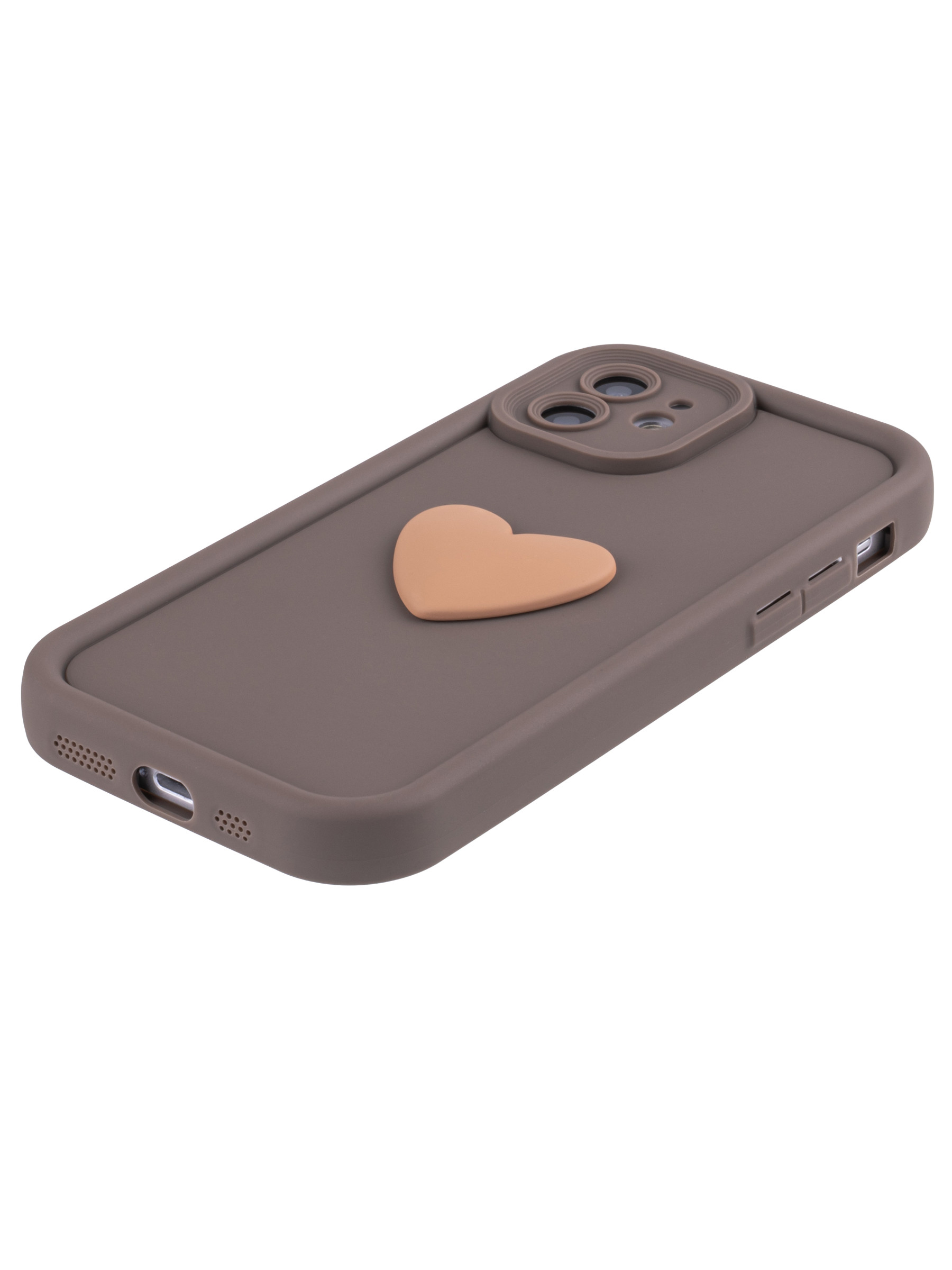 Силиконовый чехол с объемным сердцем от КейсБерри. Модуль камер максимально защищен. Все вырезы идеально подогнаны.