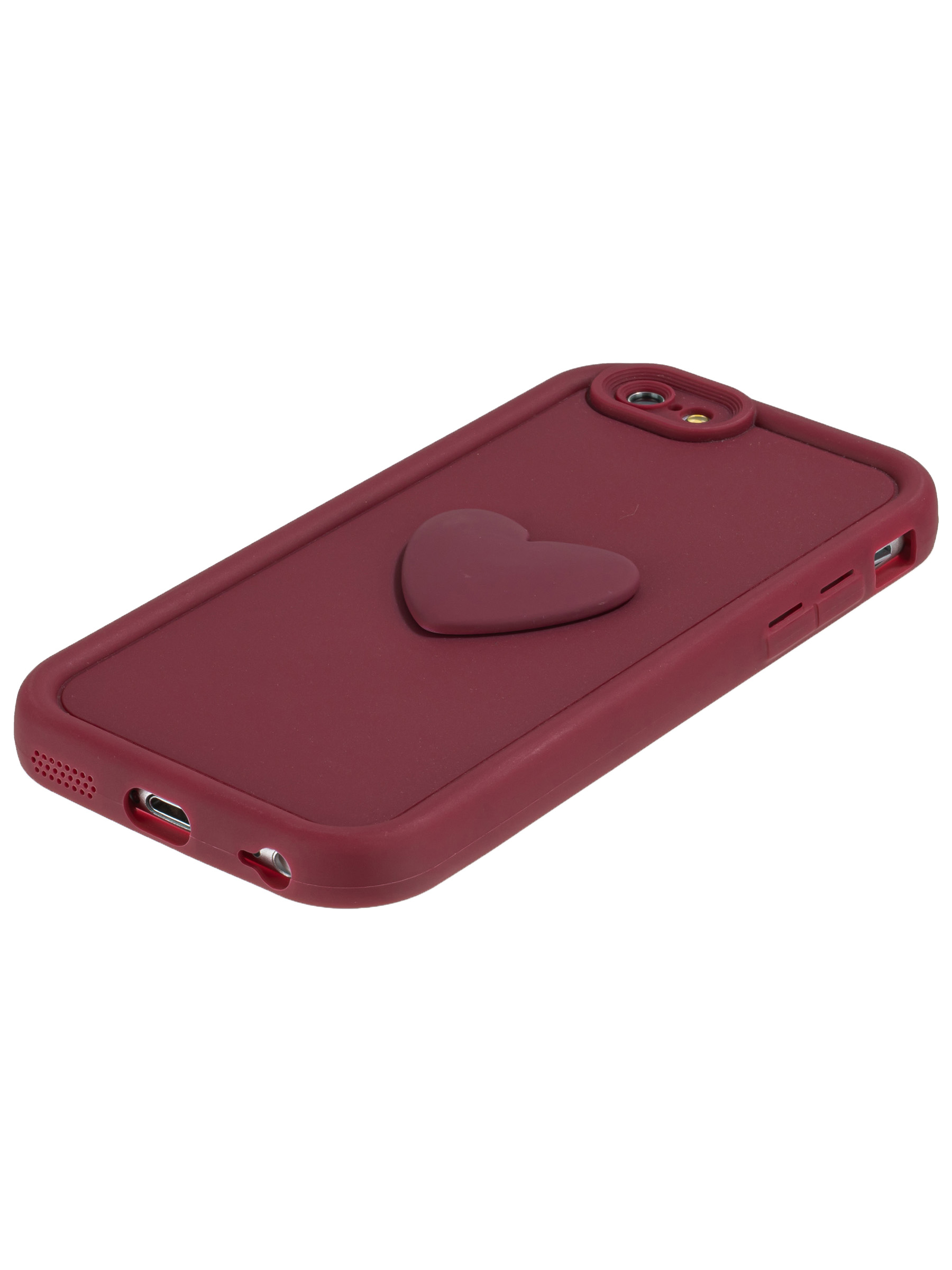 Силиконовый чехол с объемным сердцем от КейсБерри. Модуль камер максимально защищен. Все вырезы идеально подогнаны.