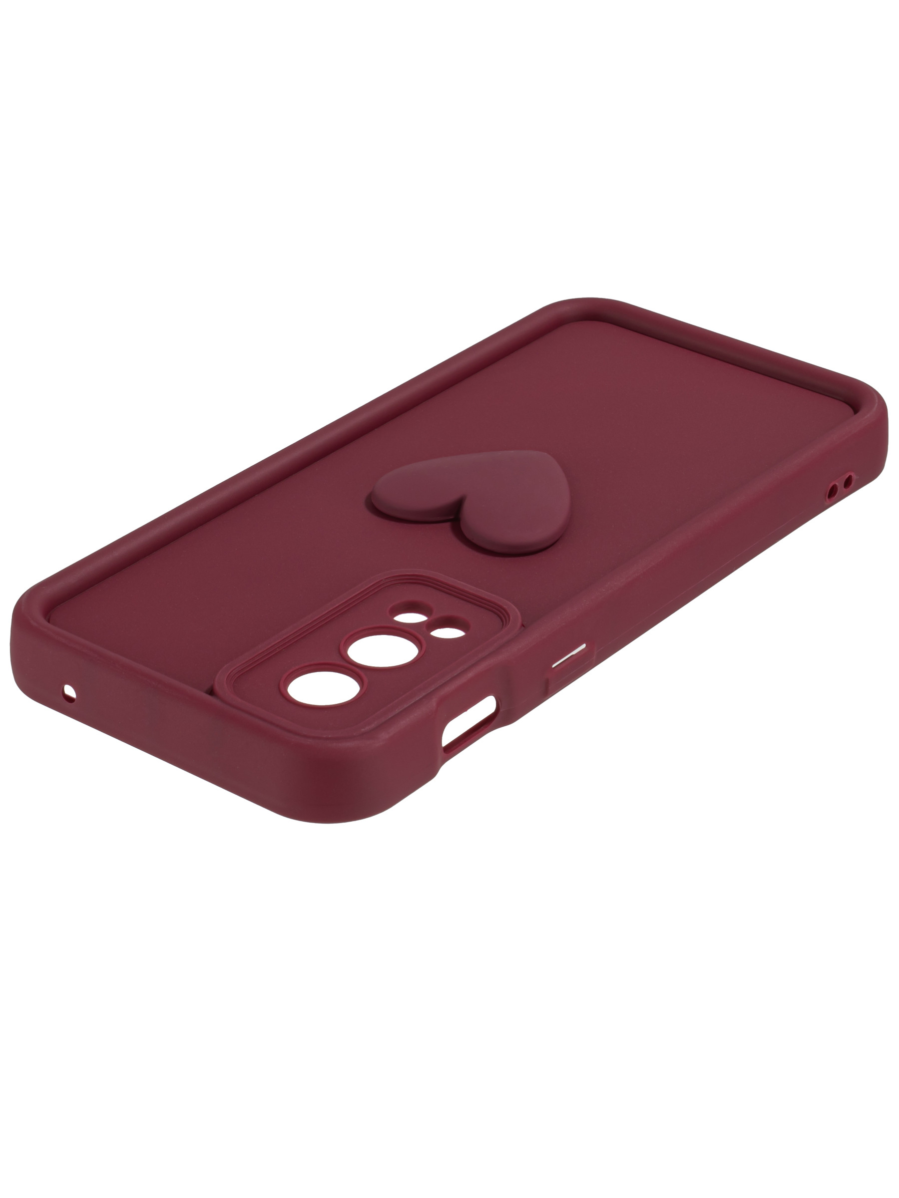 Силиконовый чехол с объемным сердцем от КейсБерри. Модуль камер максимально защищен. Все вырезы идеально подогнаны.