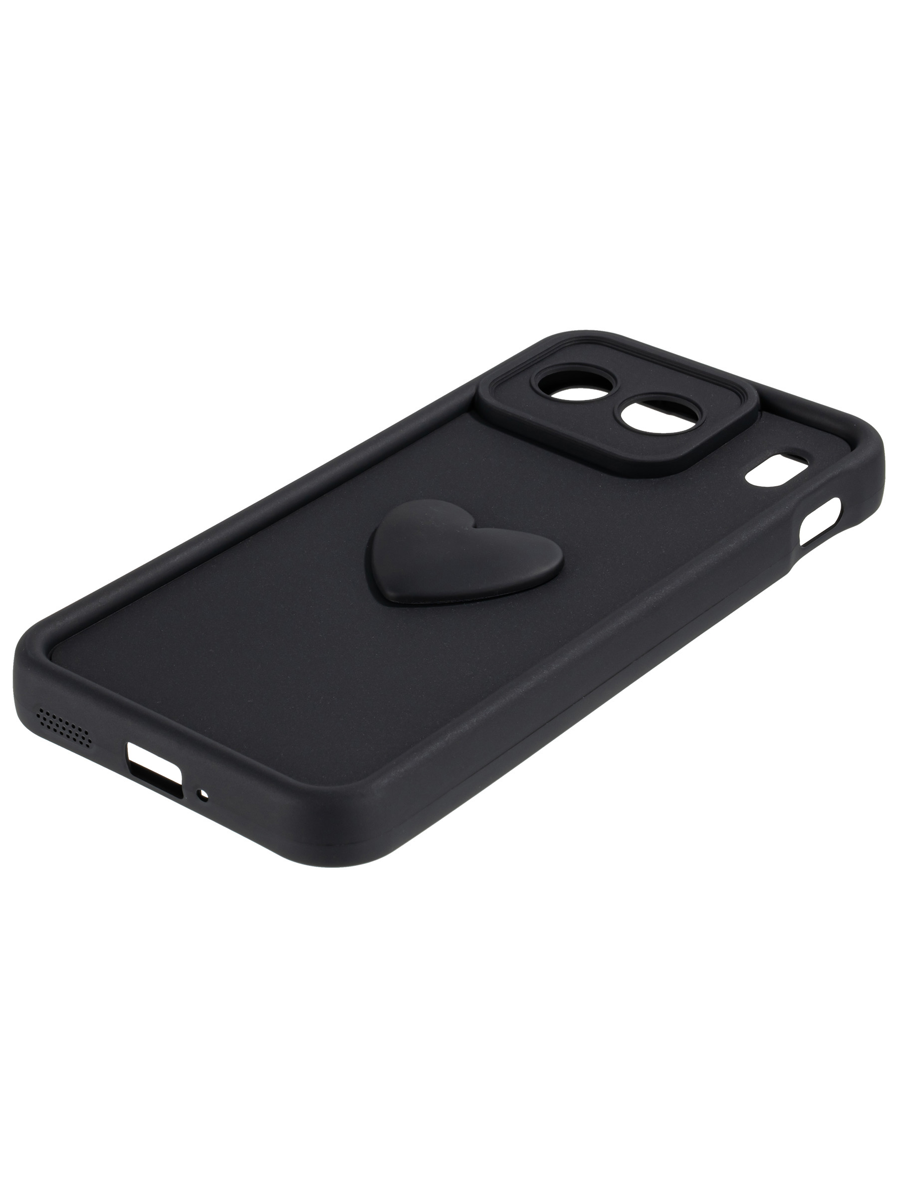 Силиконовый чехол с объемным сердцем от КейсБерри. Модуль камер максимально защищен. Все вырезы идеально подогнаны.
