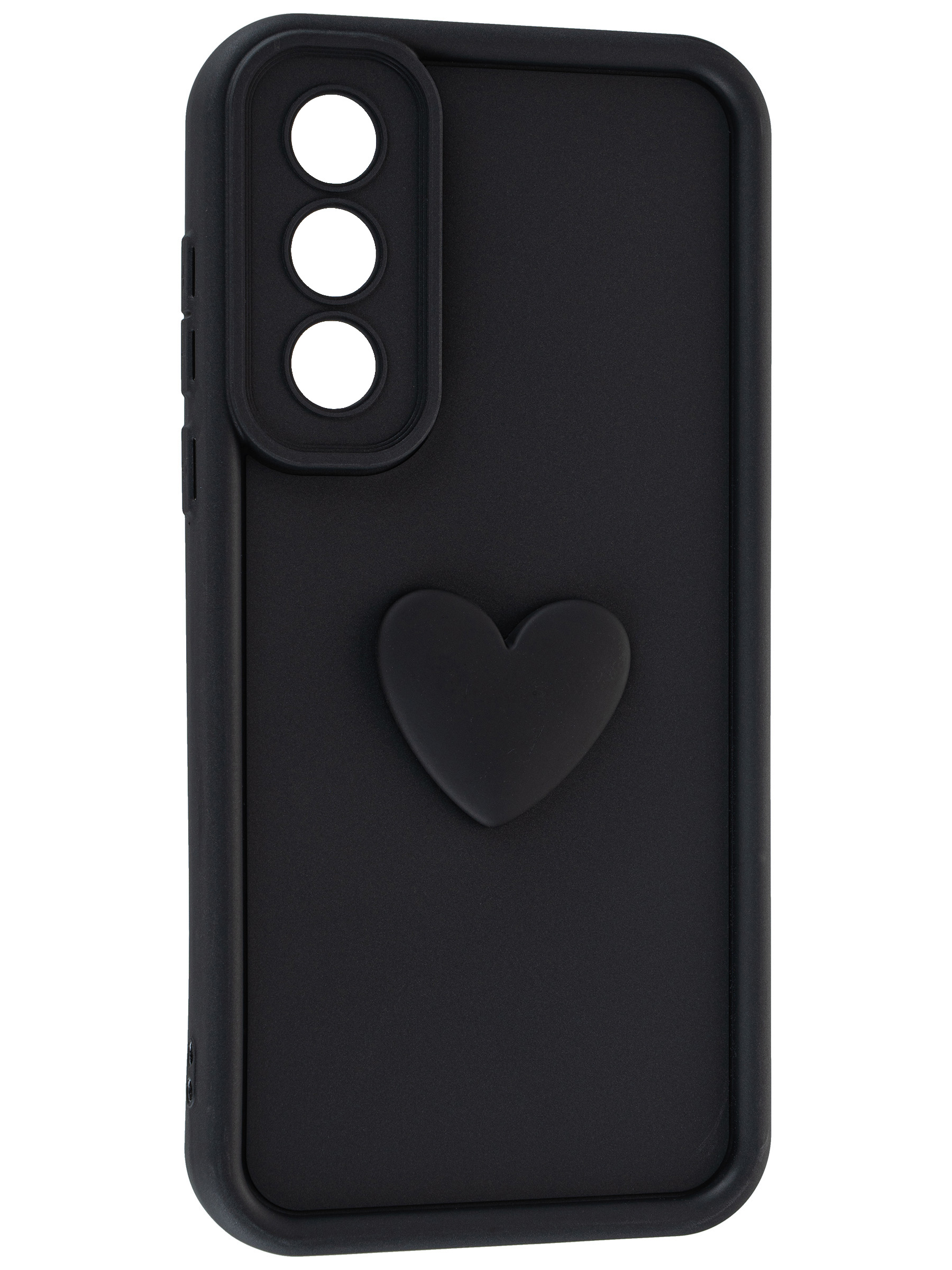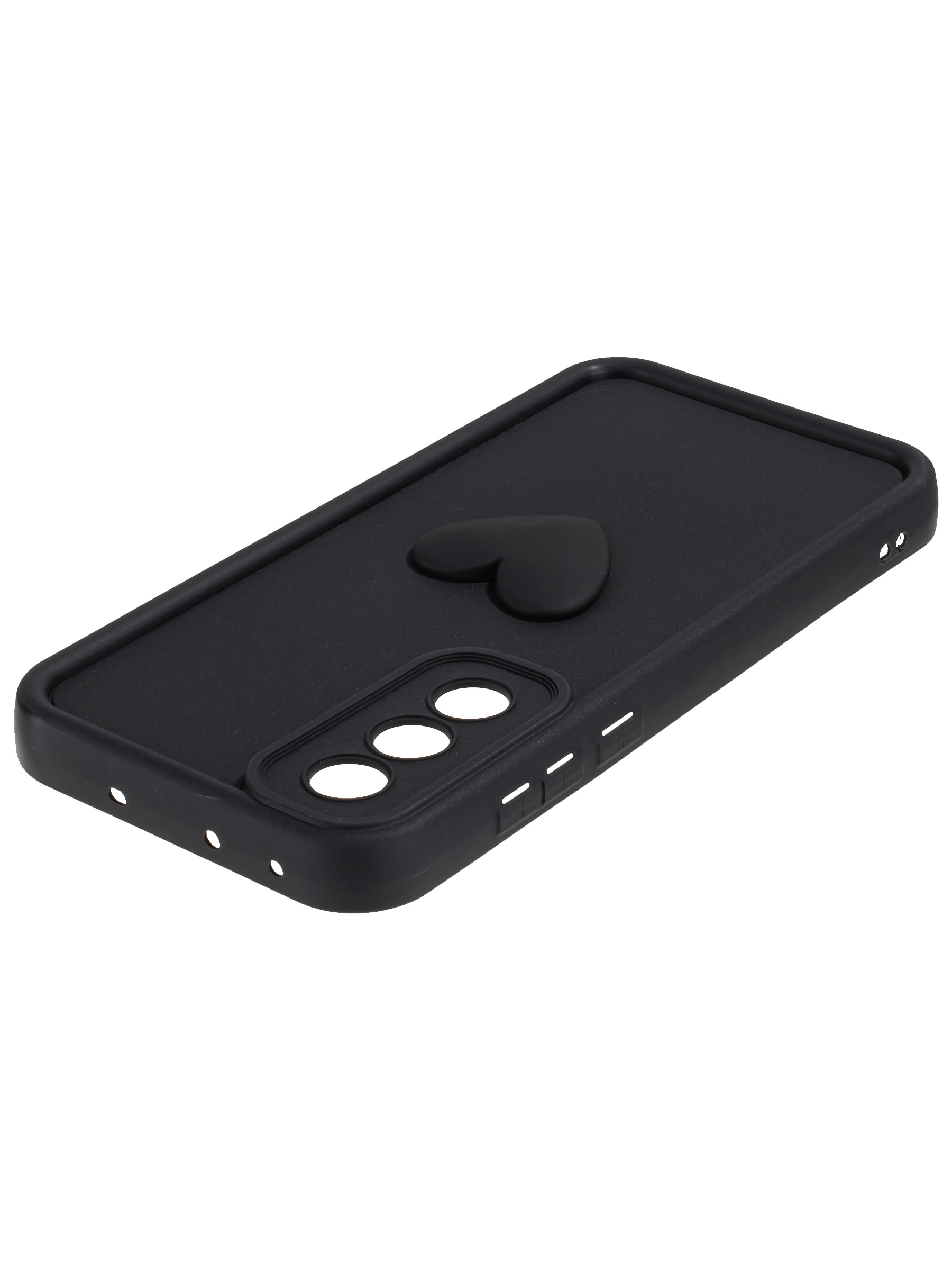 Силиконовый чехол с объемным сердцем от КейсБерри. Модуль камер максимально защищен. Все вырезы идеально подогнаны.