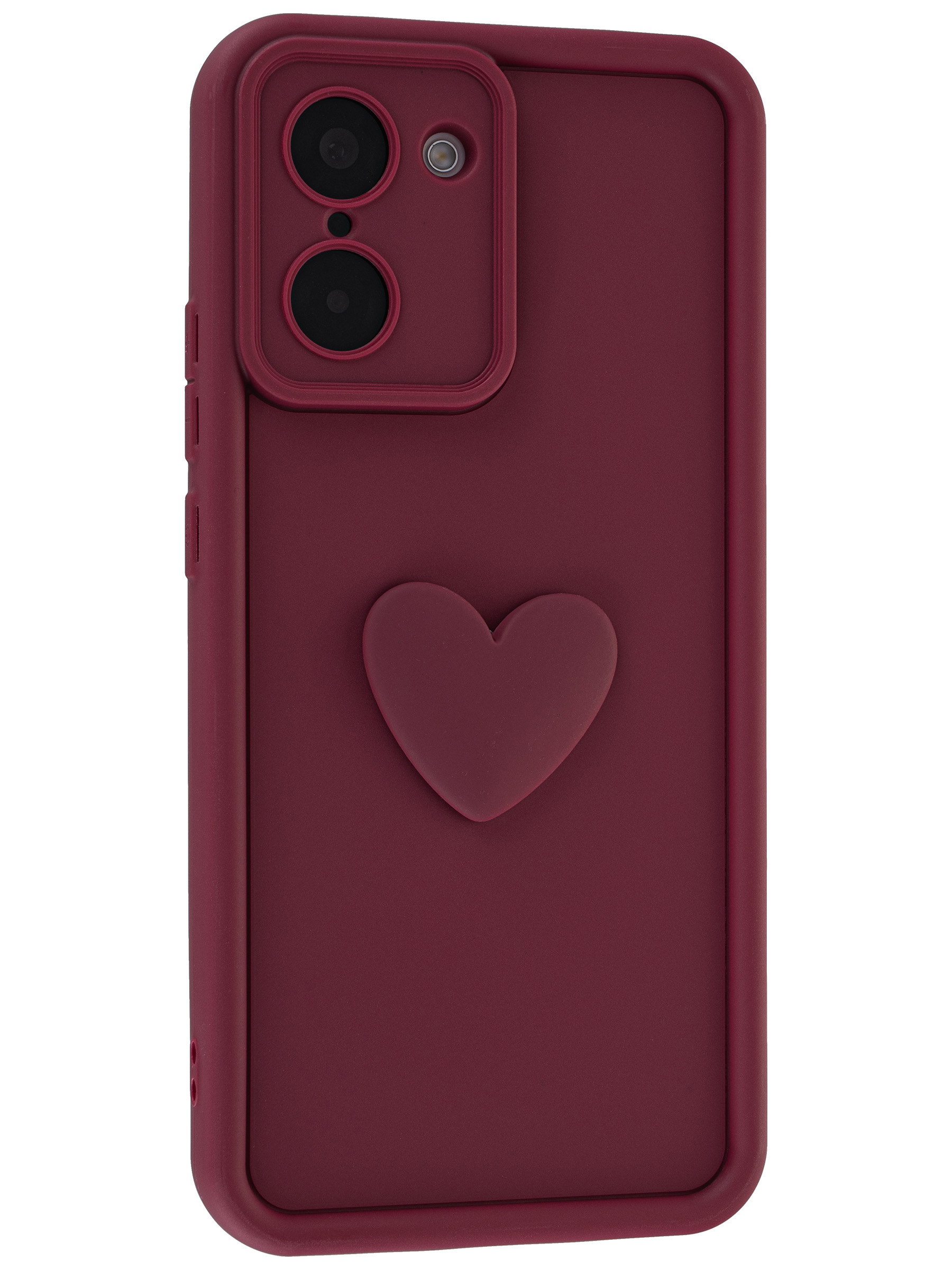 Силиконовый чехол с объемным сердцем от КейсБерри. Модуль камер максимально защищен. Все вырезы идеально подогнаны.