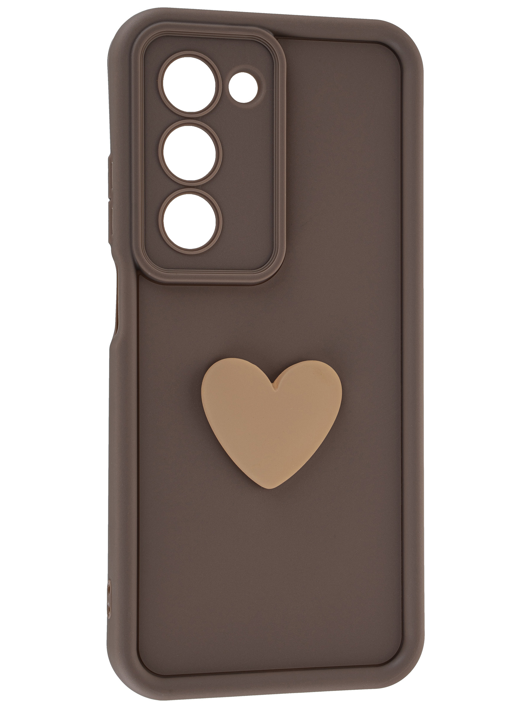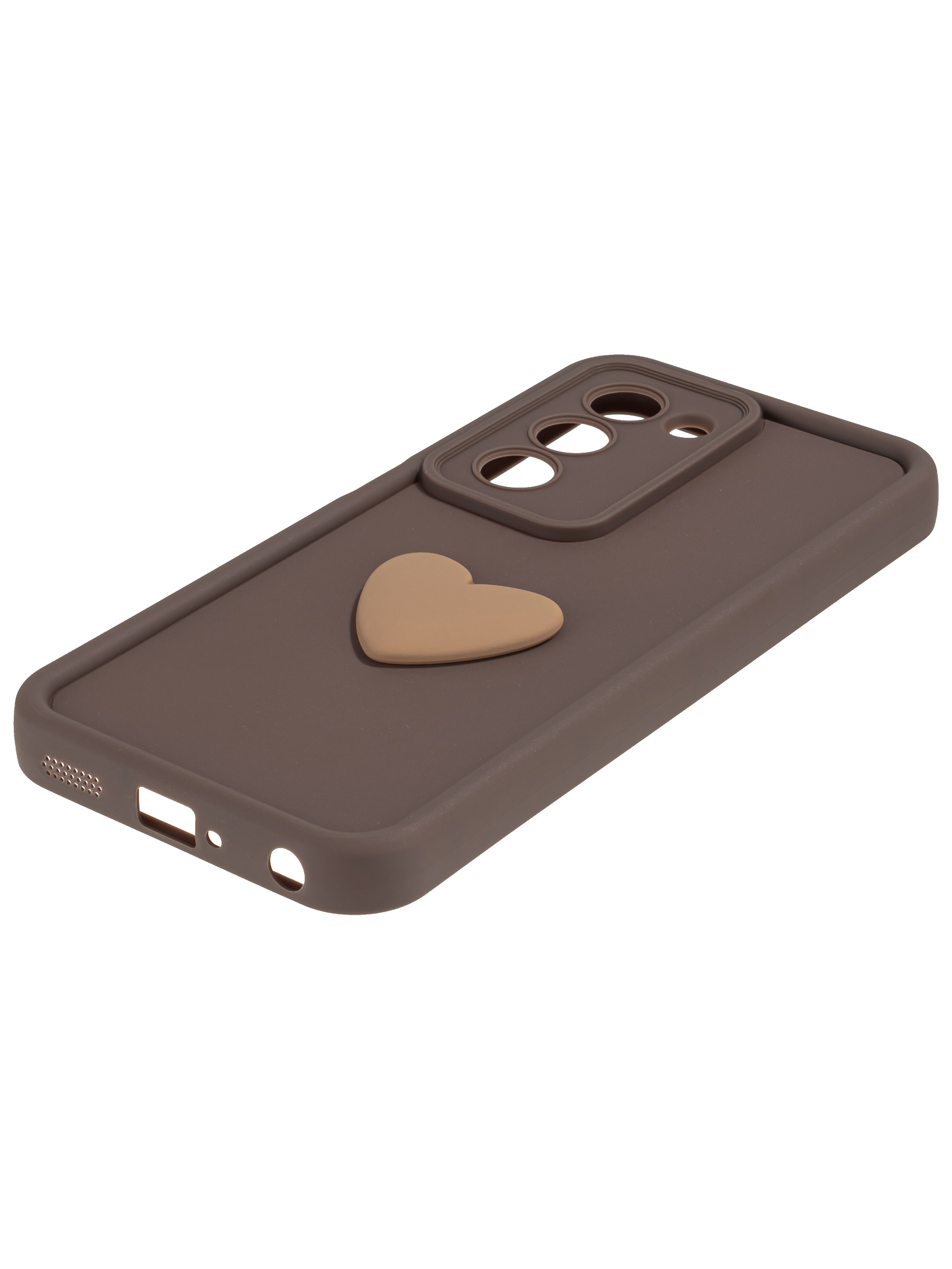 Силиконовый чехол с объемным сердцем от КейсБерри. Модуль камер максимально защищен. Все вырезы идеально подогнаны.
