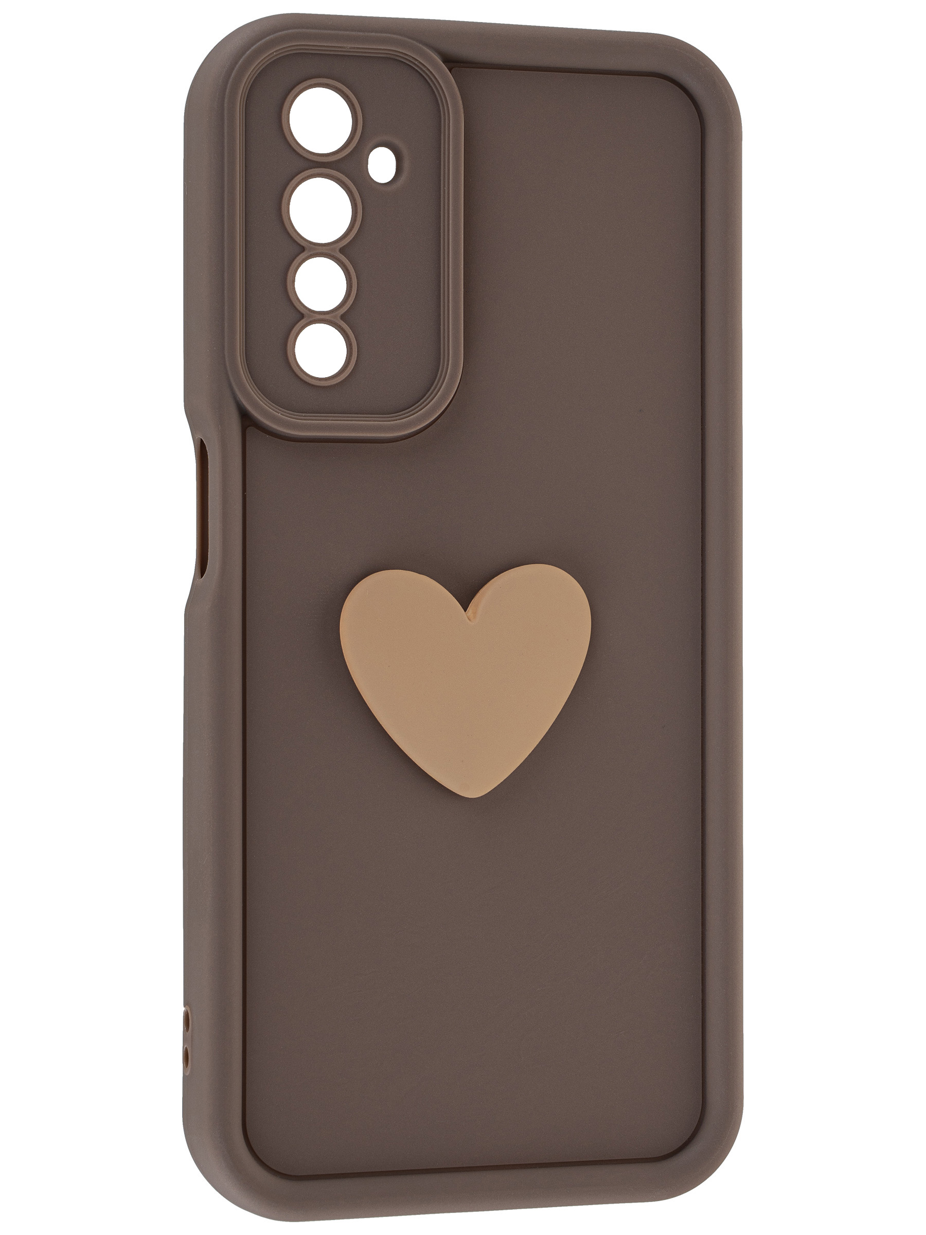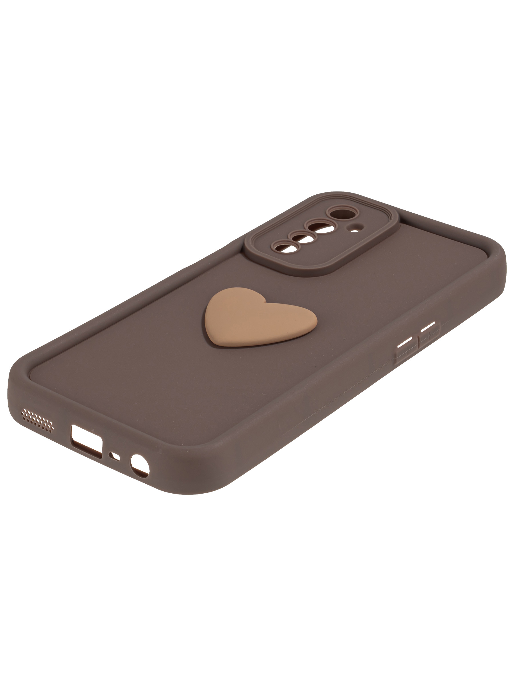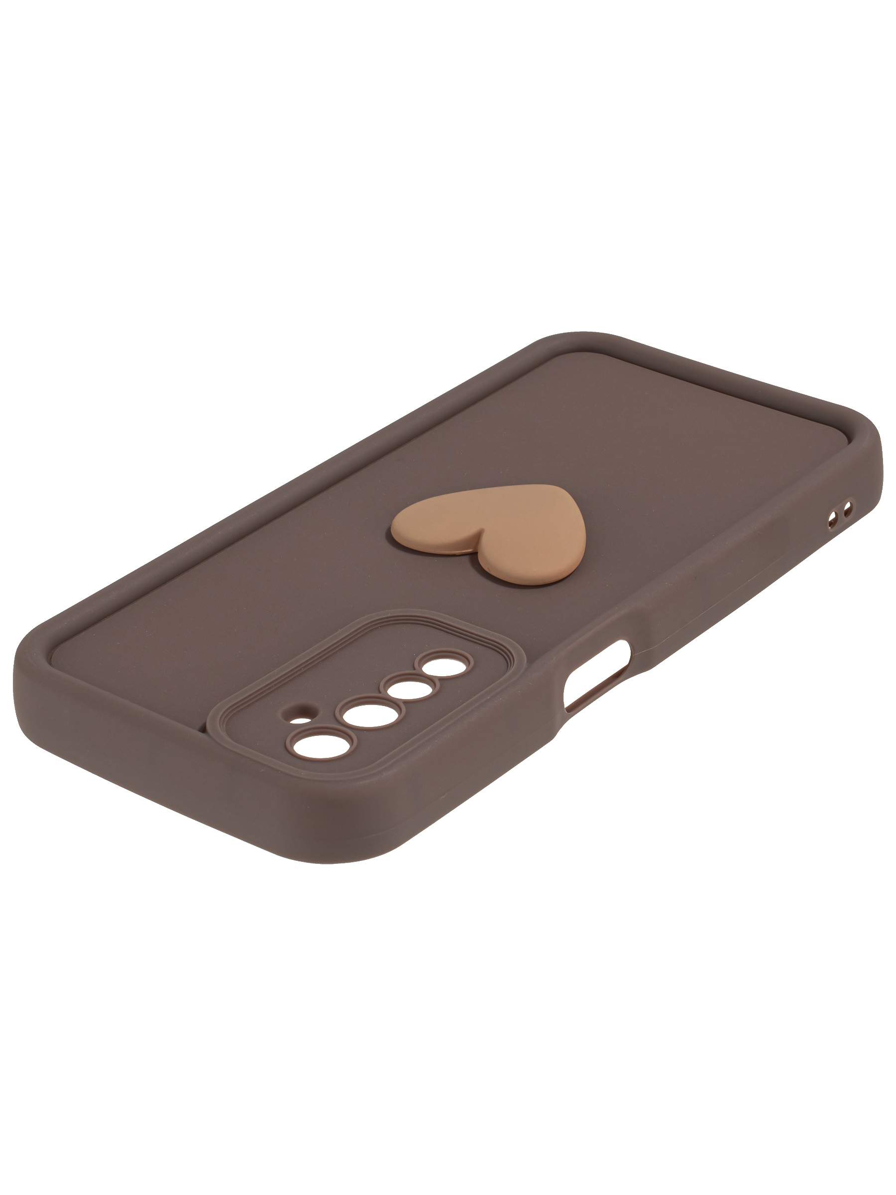 Силиконовый чехол с объемным сердцем от КейсБерри. Модуль камер максимально защищен. Все вырезы идеально подогнаны.
