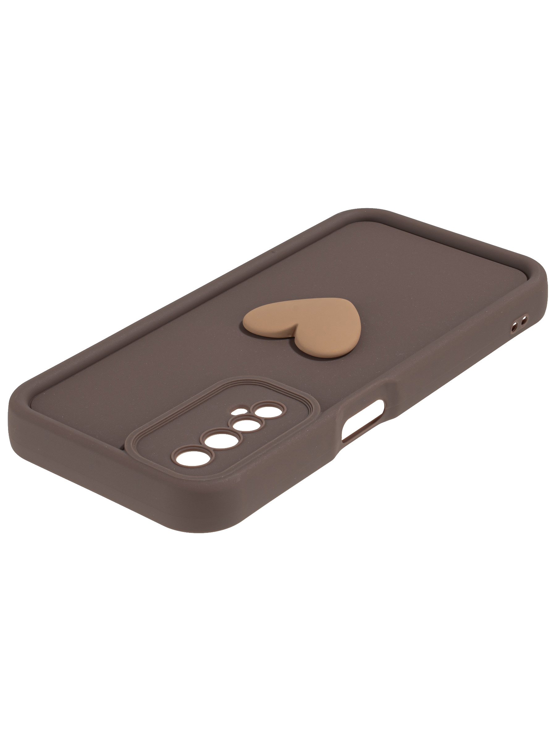 Силиконовый чехол с объемным сердцем от КейсБерри. Модуль камер максимально защищен. Все вырезы идеально подогнаны.