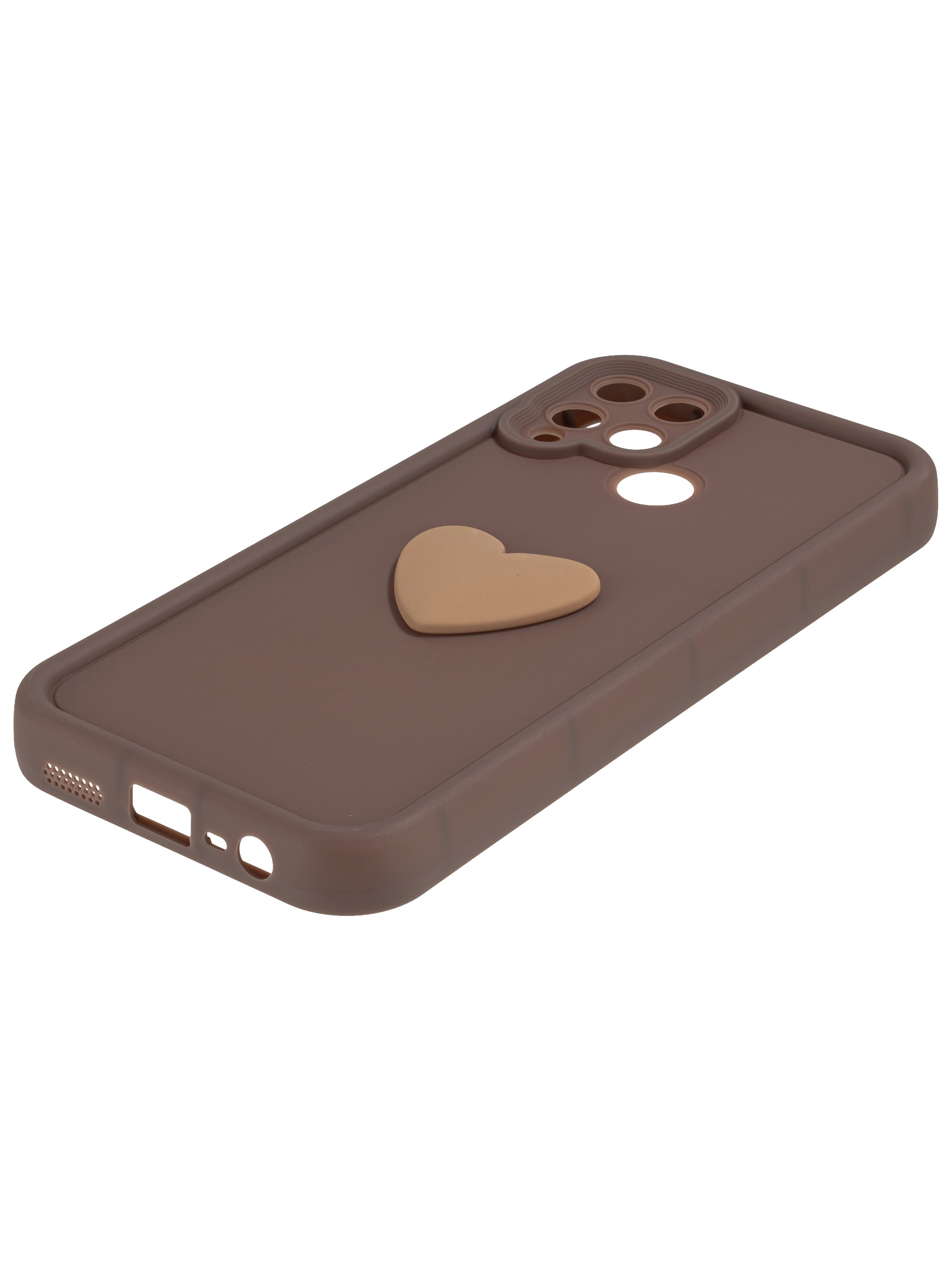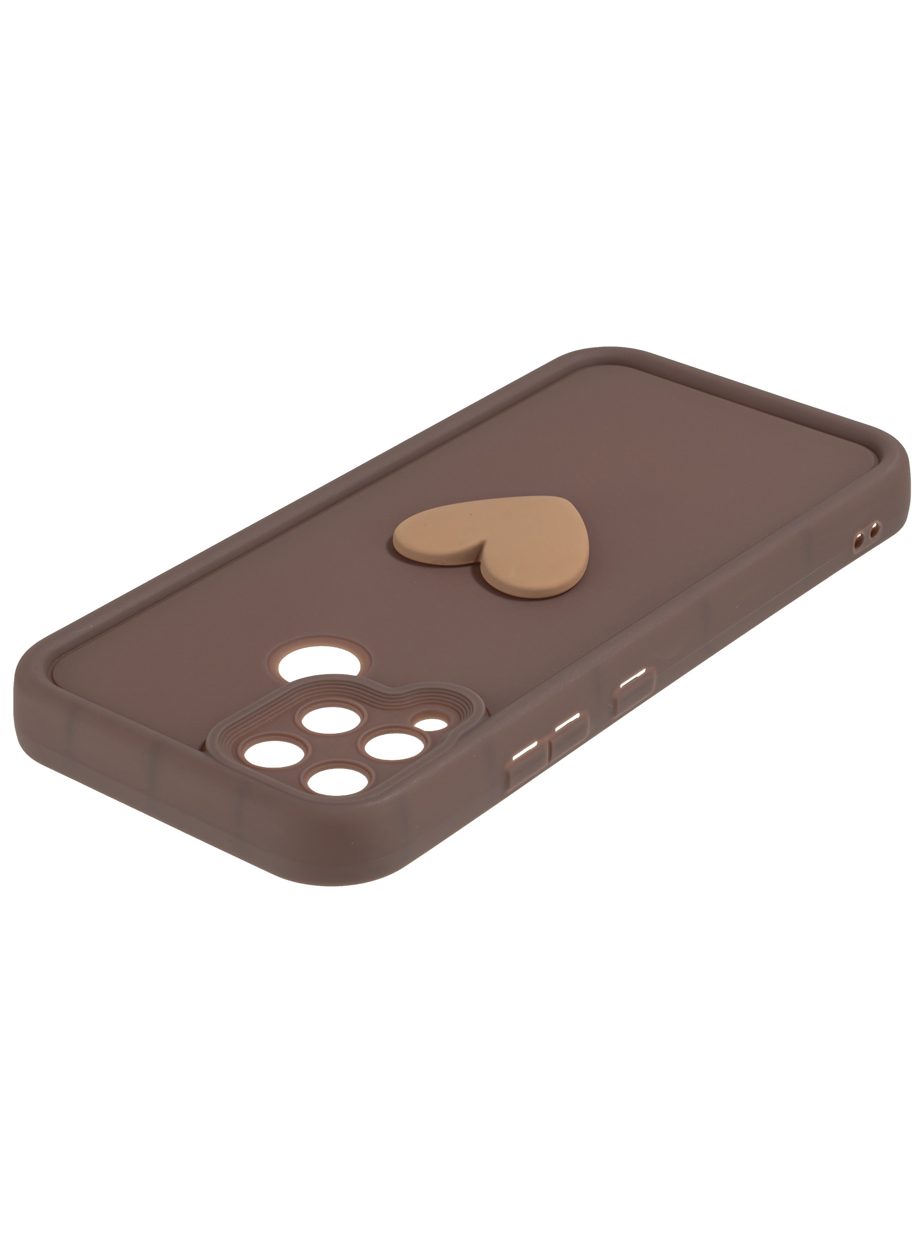 Силиконовый чехол с объемным сердцем от КейсБерри. Модуль камер максимально защищен. Все вырезы идеально подогнаны.