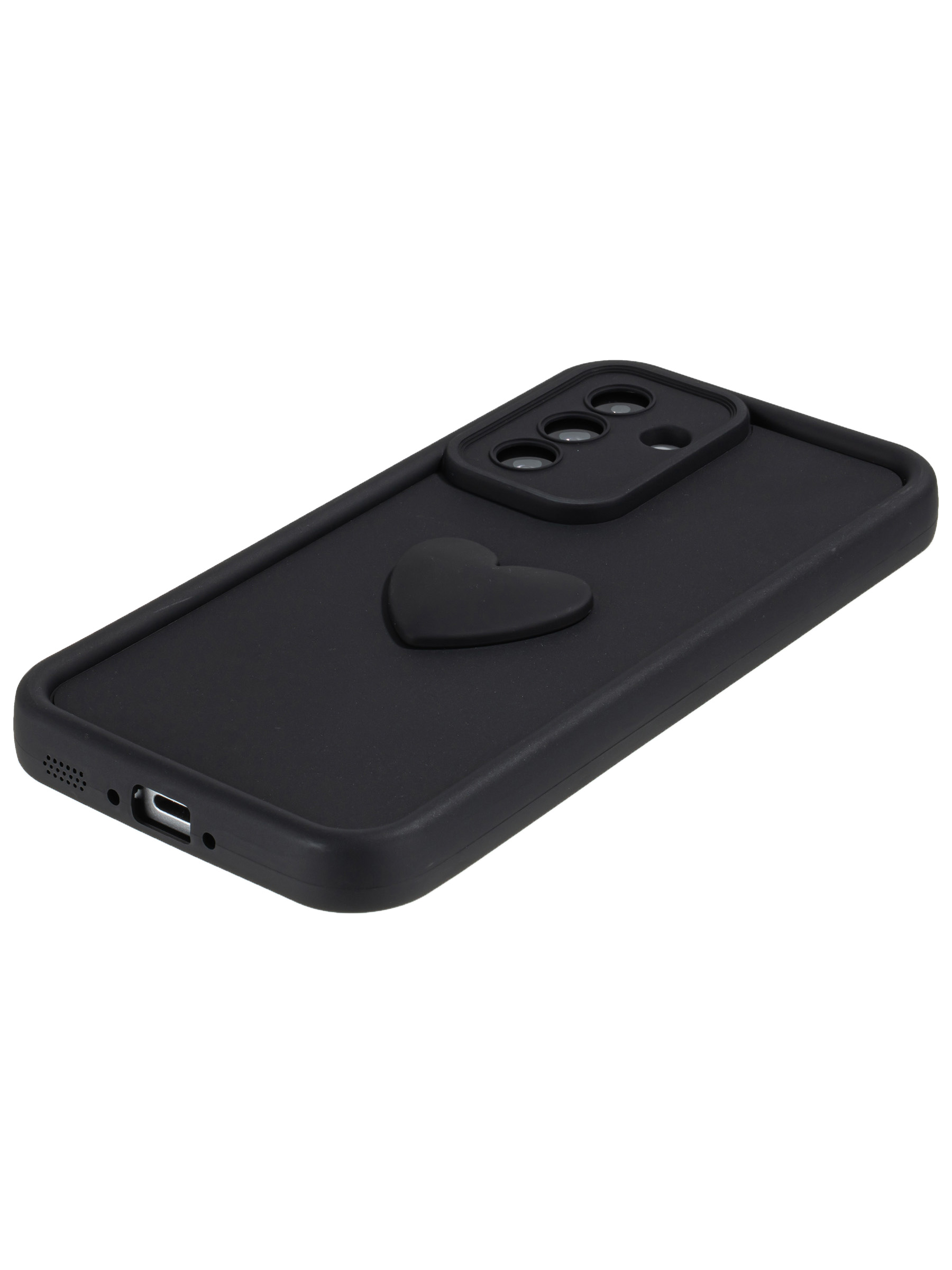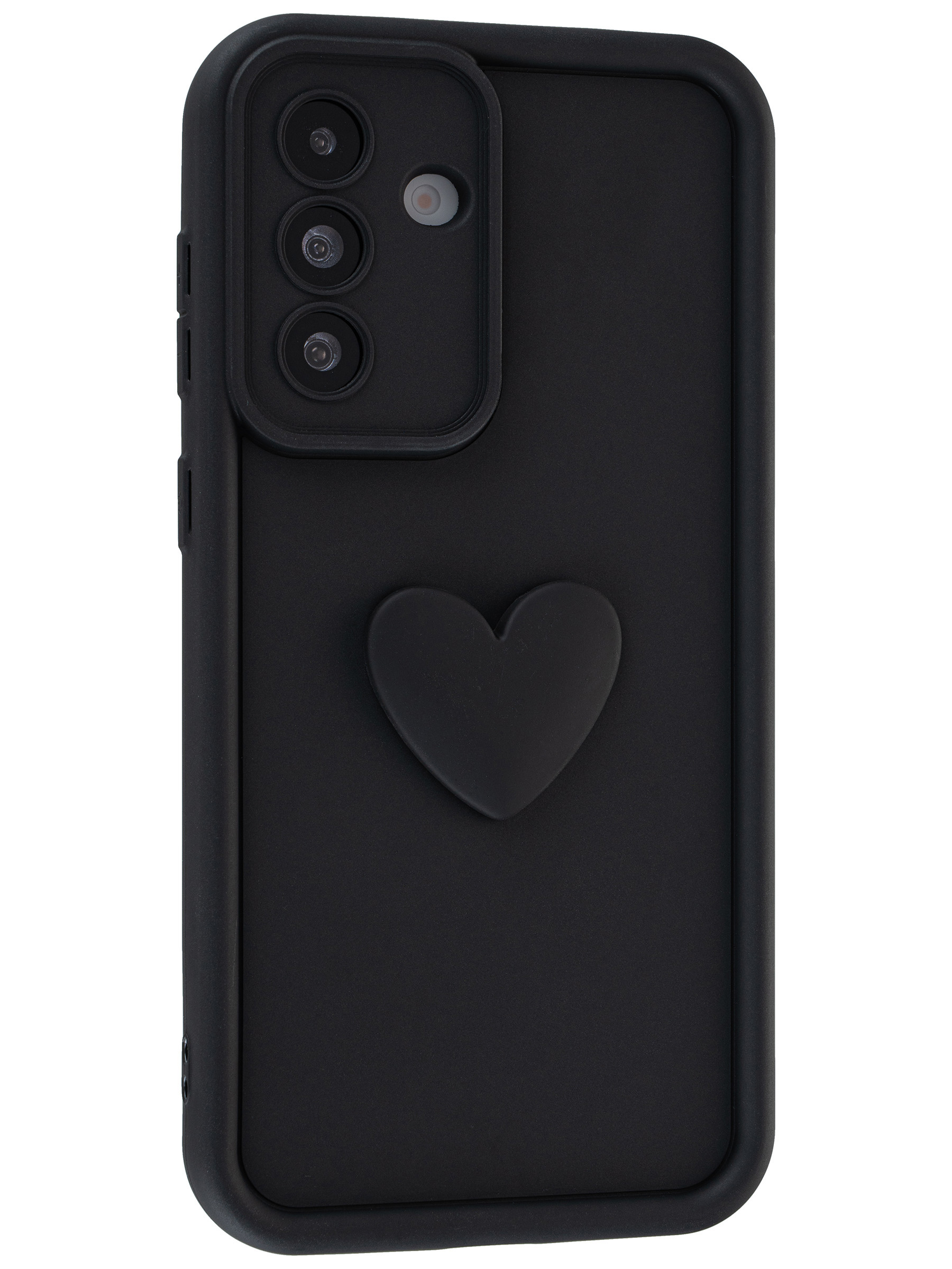 Силиконовый чехол с объемным сердцем от КейсБерри. Модуль камер максимально защищен. Все вырезы идеально подогнаны.